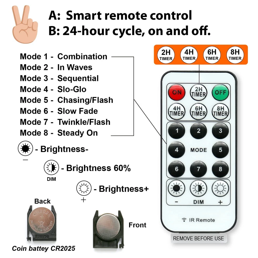 300L White Curtain Light Upgrade Untangled and Unknotted Wire: Compare to traditional curtain light, ours are made of copper wire and wrapped with an upgraded transparent PVC tube, which are not easy to tangle or knot and brighter; It can be easily untied even if the wires rolled into a ball; The string lights is tough and flexible and can be dropped naturally; The tail end of the drop string can be cut as required; Perfect decoration for Christmas tree, wedding, party 8 Lighting Modes and 4 Timing Options: Unlike others, our 17-Keys remote added 4 timing modes (2/4/6/8 hours on, 22/20/18/16 hours off); 8 different flash modes to choose from, and you can adjust the brightness by pressing "dim" ,“+” and "-"; That are all controlled easily with a wireless remote at a range of 10 to 15 meters, aim at the USB receiving direction when you press; Got more choices for your night Window Curtain Fairy Lights: 9.8 x 9.8ft curtain light with 300LEDs and extra 16.5ft long power cord; 9.8ft main strand and 10 drop strings included hooks; It’s USB powered, making it suitable for more places to get powered even in camping or barbecue; Or Powered by power bank, laptop, cellphone adapter, etc; It will not get overheated after prolonged use, totally NO risk to cause any electric shock or fire hazard, it’s friendly to kids adults and pets, very sturdy and supper safe to touch Completely Accessories, Install Easily: Comes with 16 non-trace patented hooks that are used for hanging and fixing the direction of the string light on the wall, windows, canopy beds, bedroom, or sketching graphics and patterns on the roofs, floors, party, wedding, garden, patio and other surfaces to create a novelty lighting decoration; This curtain light are suitable for any place whether it is indoor or outdoor 360°Rotatable Hooks: Upgrade 360 degree rotating hook on each drop string is mainly used for hooking on curtains; It can be hung at any angle, such as on wall, window or other surface; Together with extra 16 novel patented Clips(included); No nails needed and holds strongly, removes cleanly; Both of these two clips make the curtain light easily to be hung for some special places, not only limited to windows, but also can be hung on flat walls, glass, porches, eaves, etc