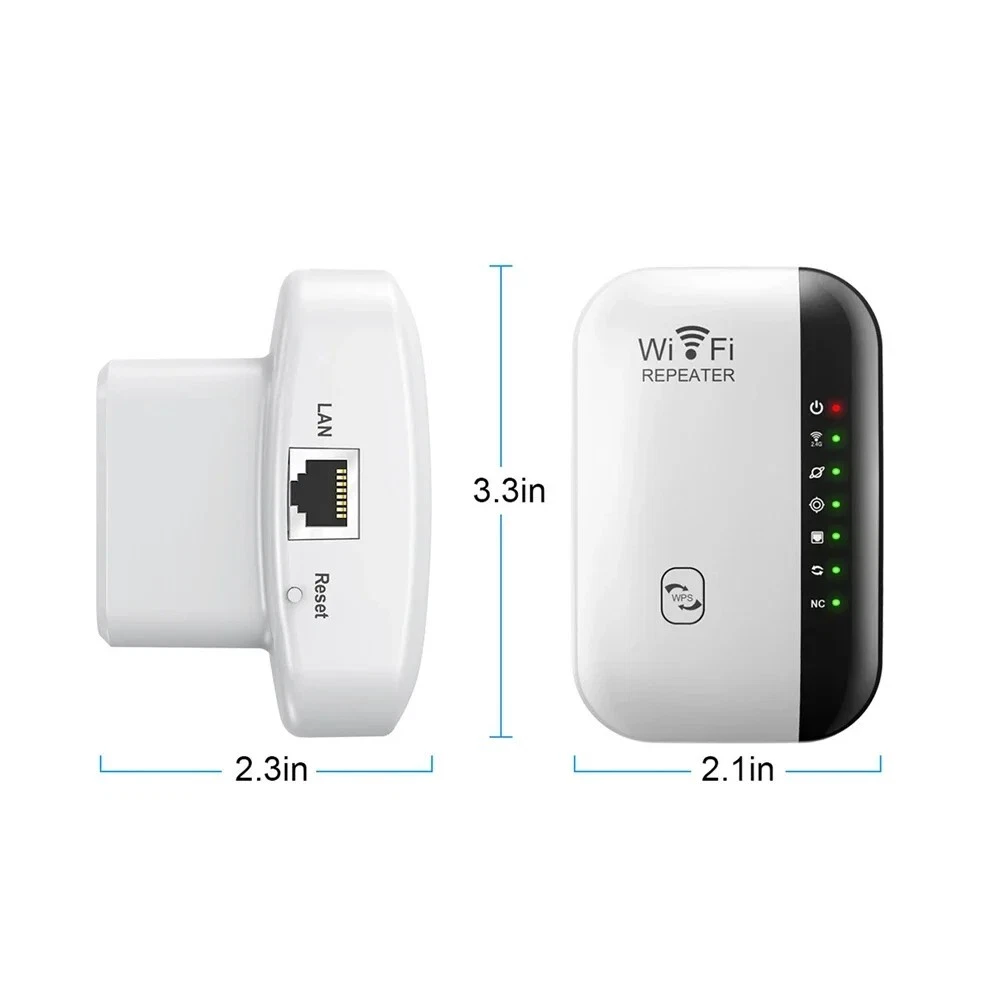 Brand New 300Mbps Wireless WIFI Repeater 2.4G Router Range Extender & Signal Amplifier Free Shipping To USA. Specifications:- Standard IEEE802.11b, IEEE 802.11g, IEEE 802.11n Modulation 802.11b: DSSS / BPSK / QPSK / CCK 802.11g: OFDM / DSSS / BPSK / QPSK / CCK 802.11n: OFDM / DSSS / BPSK / QPSK / CCK Speed 802.11b: 11Mbps 802.11g: 54Mbps 802.11n: 300Mbps Channel 11: (Ch.1-11) - USA Frequency band 2.412~2.462GHz -USA Power 802.11b: 17dBm ± 1.5 dBm 802.11g: 14dBm ± 1.5 dBm 802.11n: 14dBm ± 1.5 dBm Sensitivity 802.11b: -83dBm /802.11g: -70dBm / 802.11n: -68dBm Antenna 2 x 3dBi Integrated Antennas Distance Outdoors 300m, Indoor 100m (According to the actual environment change) Security 64/128-bit WEP, AES, TKIP, WPA, WPA2, 802.1x, WPA-PSK, WPA2-PSK, MAC, WDS Mode AP Mode / Repeater Mode Wireless Security Wireless MAC address Screening Wireless security function switch 64/128/152-bit WEP WPA-PSK/WPA2-PSK, WPA/WPA2 Function IP bandwidth control (Router mode support) DNS Relay (Router mode support) VPN Pass-through (Router mode support) Static Router (Router mode support) DHCP Server (Router mode support) DHCP settings Server list (Router mode support) Static IP address allocation (Router mode support) Specifications: Ports 1 x RJ45 Jack Button Reset WPS LED 1 * LAN, 1 * WLAN, 1 * Power, 1 * WPS Chipset RTL8196E Flash 16Mbps SDRAM 128Mbps Power supply Internal DC5V / 1A Power consumption 2.3W Rated voltage/ frequency /current 100-240 VAC 50/60Hz, 0.1A Max.