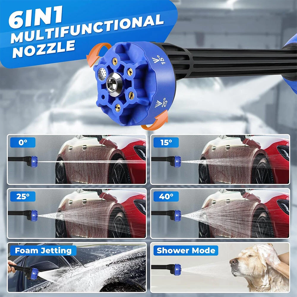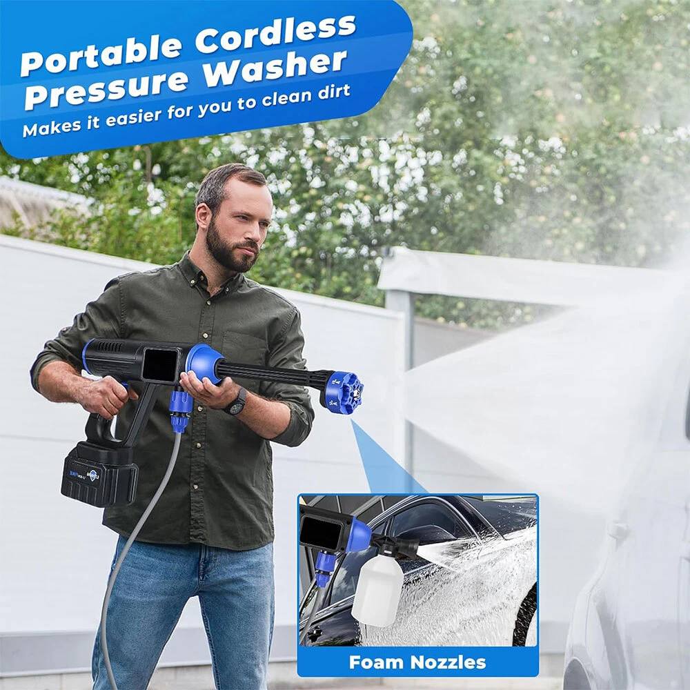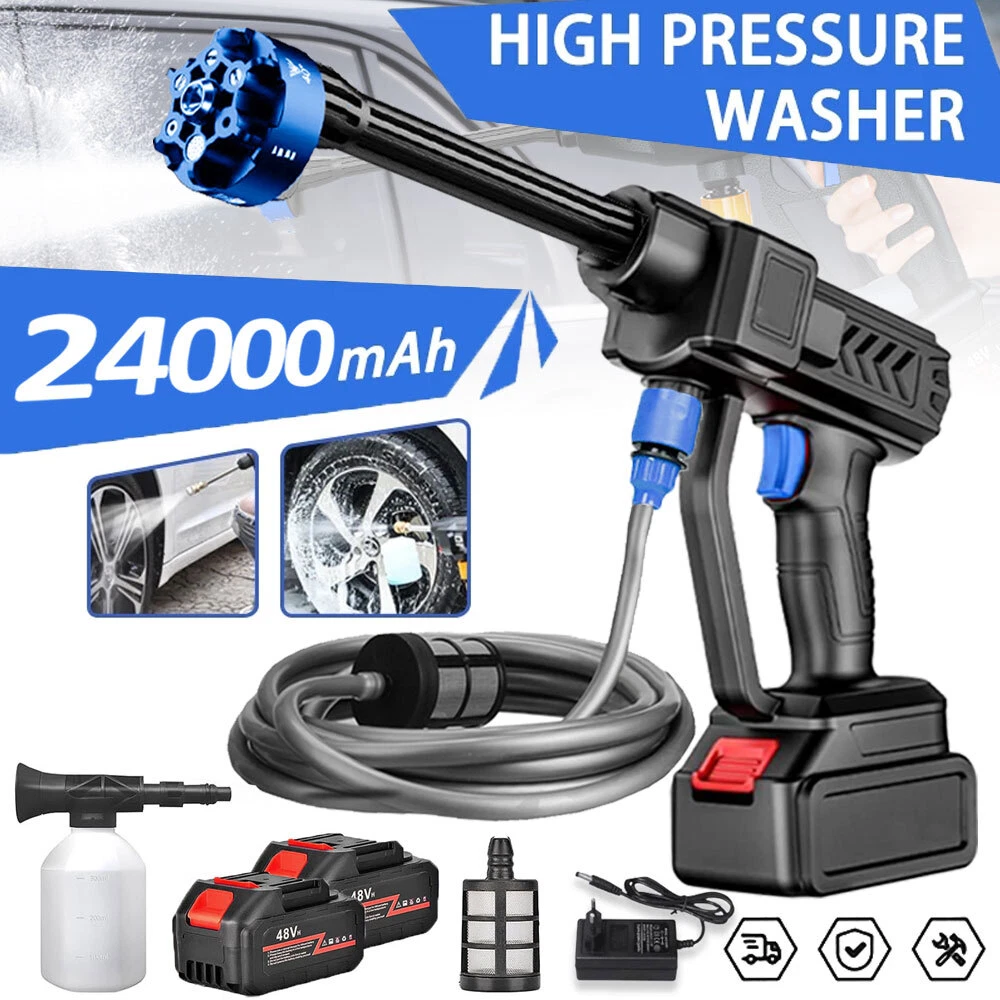 Features: 【Cordless Pressure Washer】 The Cordless pressure washer has a cordless and lightweight design that makes it easy to carry and work anywhere. Equipped with a powerful motor, it has a click speed of 20000rpm, a flow rate of 360L/H. Strong power and convenient cleaning. 【High efficiency and durability】 12000mAh battery provides stable power for the normal operation of the car washing machine, and the battery has a long service life. Fast charger with Long battery life. Batteries are suitable for most power tools of the same model. 【widely Application】 Portable Pressure washer can not only be used to clean all kinds of cars, bicycles, motorcycles, etc., but also can clean balconies, Windows, exterior walls, floors, fences, house walls, furniture and so on. 【Multifunctional Nozzle Cordless Portable Electric High Pressure Water Spray Gun Car Washer Cleaner Tool Descri ption: Material: ABS, Copper Power Supply: 48V, Lithium battery Charging Plug: US Battery Capacity: 2x 12000mAh Power: 300W Maximum Pressure: 50 BAR Maximum Flow Rate: 360 L/H Spraying Range: 8-10 meters Water Hose Length: 5m/16.4ft Water Source: Bucket / Faucet Self-priming Motor: Pure copper induction motor Scope of application: Car washing, watering flowers, watering vegetables, spraying, garden cleaning, etc. Features: 【Cordless Pressure Washer】 The Cordless pressure washer has a cordless and lightweight design that makes it easy to carry and work anywhere. Equipped with a powerful motor, it has a click speed of 20000rpm, a flow rate of 360L/H. Strong power and convenient cleaning. 【High efficiency and durability】 12000mAh battery provides stable power for the normal operation of the car washing machine, and the battery has a long service life. Fast charger with Long battery life. Batteries are suitable for most power tools of the same model. 【widely Application】 Portable Pressure washer can not only be used to clean all kinds of cars, bicycles, motorcycles, etc., but also can clean balconies, Windows, exterior walls, floors, fences, house walls, furniture and so on. 【Multifunctional Nozzles】 6 Water types adjustable, you can change and adjust different water discharge modes simply by rotating the nozzles.and use with foam buckets to meet your various cleaning tasks. Packaging Includes: 1 x Washer Gun 2 x 12000mAh Lithium Battery 1 x Charger (US) 1 x Water Hose (16.4FT) 1 x 6-in-1 Nozzle 1 x Quick Connector 1 x Lance 1 x Filter 1 x Foam Pot 1 x Manual Attention: 1. Due to manual measurement, please allow an error of 1-3 centimeters. Please ensure that you do not mind before bidding. 2. Due to different monitors, the colors may vary. Please understand. 3. Don't point at humans. 4. Do not disassemble, open, or cut the battery pack. 5. Do not short-circuit the battery pack. Do not casually place the battery in a box or drawer to avoid short circuits between the battery and other metal objects. 6. Do not expose the battery to high temperatures or open flames. Avoid storing in direct sunlight. 7. Do not remove the battery from its original packaging before use. 8. Do not use mechanical impact on the battery. Payment Delivery details Returns Contact us About us Payment Delivery details Returns Contact us About us Type Cold Water Pressure Washer Brand Unbranded Power Source Battery Maximum Pressure 435 psi Features Cordless, Integrated Carry Handle, Lightweight, On-Board Accessory Storage, Quick Connect, Soap Tank, Water Inlet Filter, 6-in-1 Multifunction Nozzle, 5 Meters Hose Product Line High Pressure Water Spray Voltage 110-240V, 50-60Hz Model Cordless High Pressure Washer Power 300 W Assembly Required No Manufacturer Warranty 1 Year Soap Tank Capacity 300 ml Items Included 1xWashing Machine, 2x Battery, 1xQuick Connector, 1x Charger, 5 Meter Water Inlet Hose, 1x Filter, 1x Soap Bottle, 1x Storage Box, 1x User Manual Color Black with Blue Material PP Item Height 8.86 in Item Length 16.3 in Item Width 2.95 in Year Manufactured 2022