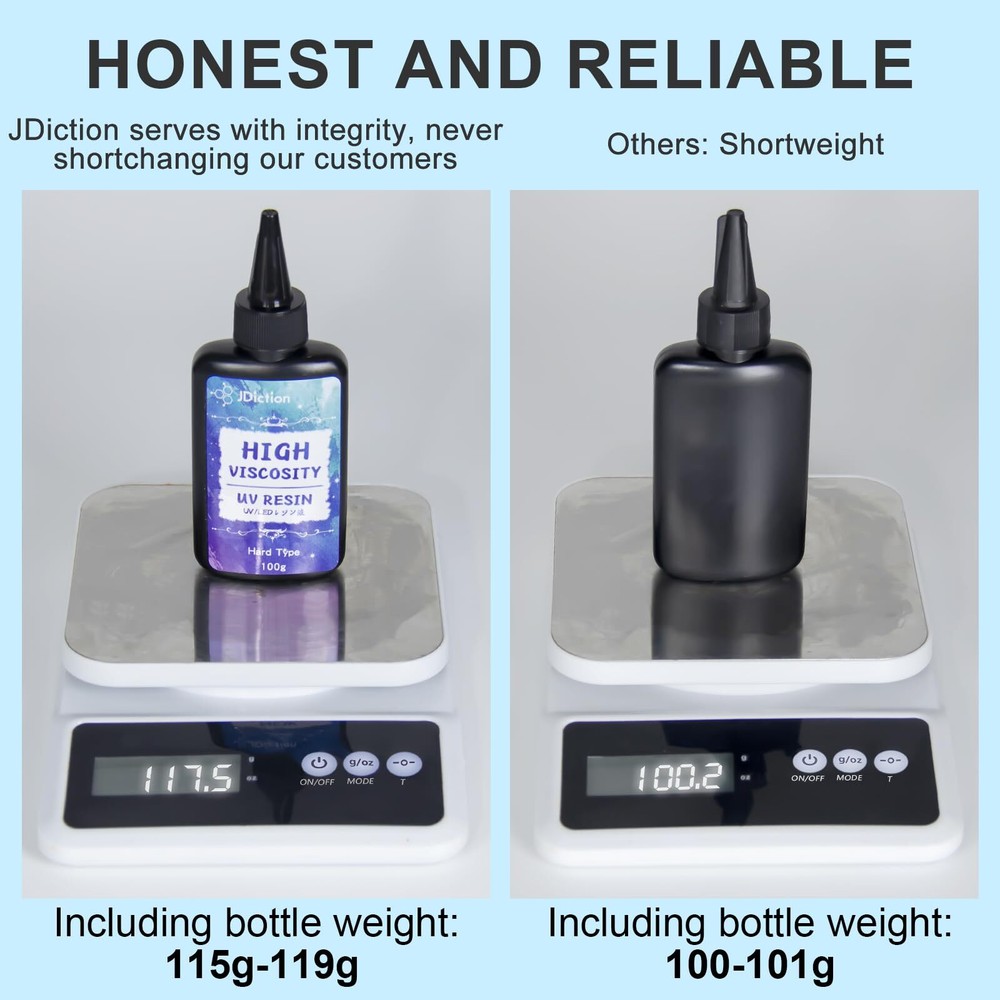 UV Resin, Upgrade 300g High Viscosity Hard UV Resin with Crystal Clear Resins Kit for Doming, Sealing, Coating, and Casting đ„ăHIGH VISCOSITYăThrough the continuous feedback and suggestions of our customers, we have developed and produced different versionsââHigh Viscosity UV Resin; On the basis of the original UV resin, we have greatly improved the viscosity of UV resin(viscosity: 3700-3800 cps), the flow of UV resin slower in nature; great for variety of DIY crafts. đ„ăCRYSTAL CLEAR & LOWEST ODOR AND SAFEăUV Resin cooperates with the largest supplier in Southeast Asia. We only produce the purest resin, you can get the most crystal clear and gloss crafts. At the same time, we adopt the safest way to develop and produce to create a healthier and lowest odor resin, no pollution to the environment, allowing you to complete the craft work more comfortably. đ„ăGREAT FINISH & EXCELLENT GLOSSăThrough research and development and continuous progress in technology, we are more focused on applying every small detail of uv resin. The newly upgraded 300g uv resin is very bright, the glue flows slowly, and has a strong anti-yellowing ability, great for doming, sealing and crafter doing tiny DIY crafts. đ„ăBUBBLE-FREE & RESIST YELLOWINGăAfter thousands of formulation adjustments, the uv resin is bubble-free, superfit doming, coating, and casting resin, which can show DIY creation bright and take your breath away; Adding more potent uv inhibitors to the newly upgraded formula, it is more resistant to yellowing than other UV resin, which can keep your crafts long-lasting and gorgeous. đ„ăServe With HeartăOur team is committed to fast response and multi-channel accessibility for customer care. We want your 100% satisfaction by providing premium resin art materials that guarantee pleasing, and long-lasting results, meanwhile, offering daily creative ideas for crafting. We are standing by to assist you with any issues. By crafter, for crafter. Introducing the UV Resin, a high viscosity resin with a viscosity of 3700-3800 cps, perfect for various DIY crafts. This crystal clear resin is produced with the purest ingredients, ensuring a healthier and lowest odor resin that is safe for the environment. The upgraded formula boasts excellent gloss, strong anti-yellowing ability, and is bubble-free, making it ideal for doming, sealing, and casting. With added potent UV inhibitors, this resin is more resistant to yellowing than other UV resin, ensuring long-lasting and gorgeous crafts. The team is dedicated to providing premium resin art materials and daily creative ideas for crafting, with a commitment to fast response and multi-channel accessibility for customer care. The product comes in a 10.58 ounce can and is available in a clear color with extra-strong bonding capabilities. Please note that the color of the product may vary from the image provided. Shipping We offer FREE shipping on all orders! We ship within Three business days of payment, usually sooner. We use a selection of shipping services such as UPS, FedEx, USPS etc. We only ship to the lower 48 states, no APO/FPO addresses or PO Boxes allowed. Local pickups and combined shipping options are not provided at this time. Return You can return a product for up to 30 days from the date you purchased it. Any product you return must be in the same condition you received it and in the original packaging. Please keep the receipt. Payment We accept payment by any of the following methods: PayPal Please pay as soon as possible after winning an auction, as that will allow us to post your item to you sooner! Feedback Customer satisfaction is very important to us. If you have any problem with your order, please contact us and we will do our best to make you satisfied. Contact Us If you have any queries, please contact us via ebay. We usually respond within 24 hours on weekdays. Please visit our eBay store to check out other items for sale! Thank you for shopping at our store.