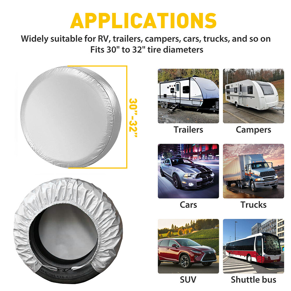At AUXITO, you will find a large selection of high quality automotive accessories. Not only do we sell quality, affordable parts, but we also sell confidence. All purchase in our store will have 60-Day Money-Back Guarantee, please see our Policies. 30"-32" Waterproof Wheel Tire Covers Fit for Trucks Trailers Campers SUV cars etc. Specification: Product Packing: Oxford bag Quantity:Tire cover *4 Product color:Silver Product material:190T Oxford fabric Product size: 31.5inch(80cm) Suitabel size: 30-32inch tires (outside diameter) Suitable model: General model(mainly depends on tire size) Truck, trailer, camper, RV, bus, SUV, car, etc 30"-32" Waterproof Wheel Tire Covers Sun Protector For Car RV Trailer SUV Silver At AUXITO, you will find a large selection of high quality automotive accessories. Not only do we sell quality, affordable parts, but we also sell confidence. All purchase in our store will have 60-Day Money-Back Guarantee, please see our Policies. 30"-32" Waterproof Wheel Tire Covers Fit for Trucks Trailers Campers SUV cars etc. Specification: Product Packing: Oxford bag Quantity:Tire cover *4 Product color:Silver Product material:190T Oxford fabric Product size: 31.5inch(80cm) Suitabel size: 30-32inch tires (outside diameter) Suitable model: General model(mainly depends on tire size) Truck, trailer, camper, RV, bus, SUV, car, etc Function: protect tires from dust, rust, corrosion, sunshade etc. Features: *Protection: Protect the tires from sun damage, ultraviolet,dirt,rust,corrosion when your vehicle is parked. *Superior material: The tire cover is made of Oxford fabric, which keeps your tires free of scratches in order to make your tires life more durable. *Hook design: Hook design keeps the tire cover stay on the wheel more solid especially in wild weather. *Production size: The size of cover is 80cm(31.5inch), fits tire size 30"-32". Please check the size before purchasing. Packaging Included: 4* Tire Covers. 1* Storage Bag. ABOUT US 30"-32" Waterproof Wheel Tire Covers Sun Protector For Car RV Trailer SUV Silver At AUXITO, you will find a large selection of high quality automotive accessories. Not only do we sell quality, affordable parts, but we also sell confidence. All purchase in our store will have 60-Day Money-Back Guarantee, please see our Policies. 30"-32" Waterproof Wheel Tire Covers Fit for Trucks Trailers Campers SUV cars etc. Specification: Product Packing: Oxford bag Quantity:Tire cover *4 Product color:Silver Product material:190T Oxford fabric Product size: 31.5inch(80cm) Suitabel size: 30-32inch tires (outside diameter) Suitable model: General model(mainly depends on tire size) Truck, trailer, camper, RV, bus, SUV, car, etc Function: protect tires from dust, rust, corrosion, sunshade etc. Features: *Protection: Protect the tires from sun damage, ultraviolet,dirt,rust,corrosion when your vehicle is parked. *Superior material: The tire cover is made of Oxford fabric, which keeps your tires free of scratches in order to make your tires life more durable. *Hook design: Hook design keeps the tire cover stay on the wheel more solid especially in wild weather. *Production size: The size of cover is 80cm(31.5inch), fits tire size 30"-32". Please check the size before purchasing. Packaging Included: 4* Tire Covers. 1* Storage Bag. FAQ Shipping Returns Contact Us Payment Why swith to LED? LEDs not only give your vehicle a clean, modern look but, with proper use, will outlast any halogen bulb and HID bulb! Low energy draw, high lumen output, and instant on/off LED technology out shines stock bulbs in every way. Which bulbs are used in my vehicle? Check Sylvania automotive lamp replacemnt guide , you can select the year, make, and model of your vehicle, then select the application you want to replace or upgrade from stock. What does CAN Bus mean? CAN Bus means Controller Area Network Bus. This system monitors your vehicle and reports operating conditions. CAN Bus systems are commonly found in European vehicles such as BMW, Audi, Mercedes, Volkswagen, Porsche, and in many American vehicles. While most late model American vehicles have CAN Bus systems, it is always good to check with your vehicle dealer to see which system your vehicle has before purchasing electrical products. When do you need Warning Canceller? Some vehicles with cmplex internal computers(such as Audi,BMW,Jaguar,Mercedes,etc.) might report on-dash errors or flickering on the headlights. The warning canceller fixes the dashboard warning and flickering effect. Bulb Out Dashboard Error: On some vehicles, the dashboard will report as if you have a headlight bulb missing or burnt. It does not affect the headlights functioning, but the light on-dash will be on. The warning canceller fixes the issue. Flickering Issue: This happens when your vehicle does not recognize the new headlights installed. When turning the headlights on, the vehicle's computer does not understand the signal back from the headlights hence thinking they are still off. This triggers the headlight flickering effect. The warning canceller solves this issue. LED Advantages: Very low and efficient energy consumption than halogen bulbs & HID Bulbs Compared with HID bulbs, LED bulbs Light up instantly, no warm up period Low voltage protection, high precision constant current driver chip Longer lifespan than HID and halogen bulbs Light can be controlled easily in color and intensity Easy to install a LED headlight conversion kit (1) We will ship your item(s) within 24 hours. (2) We ship this item to US only via USPS first class mail. It usually takes 3-6 working days to deliver. How Long Will It Take to Receive My Refund? If you have emailed us for a refund ,once we have approved it ,after 60 days your money will be refunded. The estimated time for the refund to appear in your account is based on the payment method you use. Paypal is the only supported in NIGHTEYE Store. Please notify us within 30 days after you've received your purchased item. Al