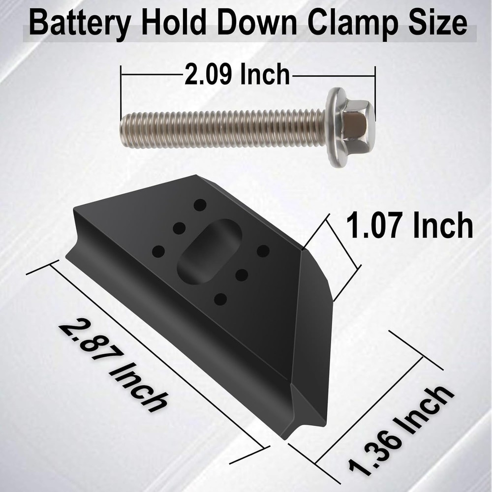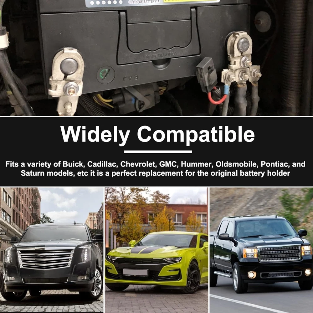 304 Stainless Steel Battery Hold Down Kit for GMC/Buick/Chevy Models Practical Functions: Battery hold down effectively secures the battery to prevent it from loosening or falling off during bumpy roads or sudden braking situations. It also reduces friction between the battery and the body to ensure stability and safety during driving and extends the time of the battery Quality Material: Battery hold down clamp is made of PP material, wear-resistant, high temperature resistant, not easy to deform or damage, can be used for a long time. Equipped with bolts made of 304 stainless steel, corrosion-resistant and rust-resistant, can be used in all kinds of weather OEM Number: The OEM number for the battery tray hold down is 14005061, this number is a unique identifier used to identify the type of vehicle part, before purchasing, please be sure to check if your model number is the same as the OEM number we provided to avoid unnecessary trouble Widely Compatible: Battery tray hold down with stainless steel bolt kit is fits for Buick, Cadillac, Chevrolet, GMC, Hummer, Oldsmobile, Pontiac, and Saturn models, etc., it is a perfect replacement for the original battery holder Packaging and Dimensions: You will receive a battery hold down bracket that measures 2.87 x 1.36 x 1.07 inches, accompanied by an bolt kit in which the bolts are 2.09 inches long. This kit comes with all the necessary parts, so there is no need to buy them separately and they are very easy to use