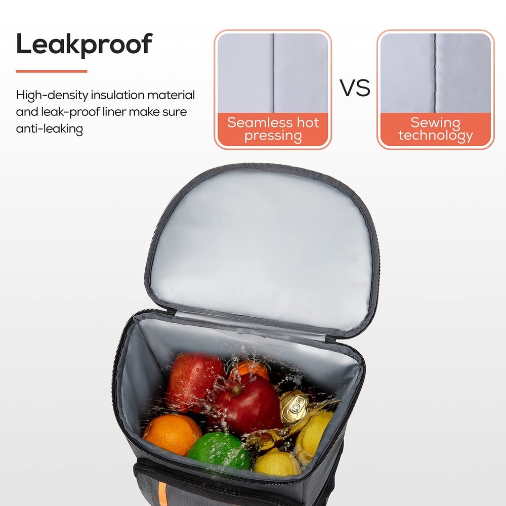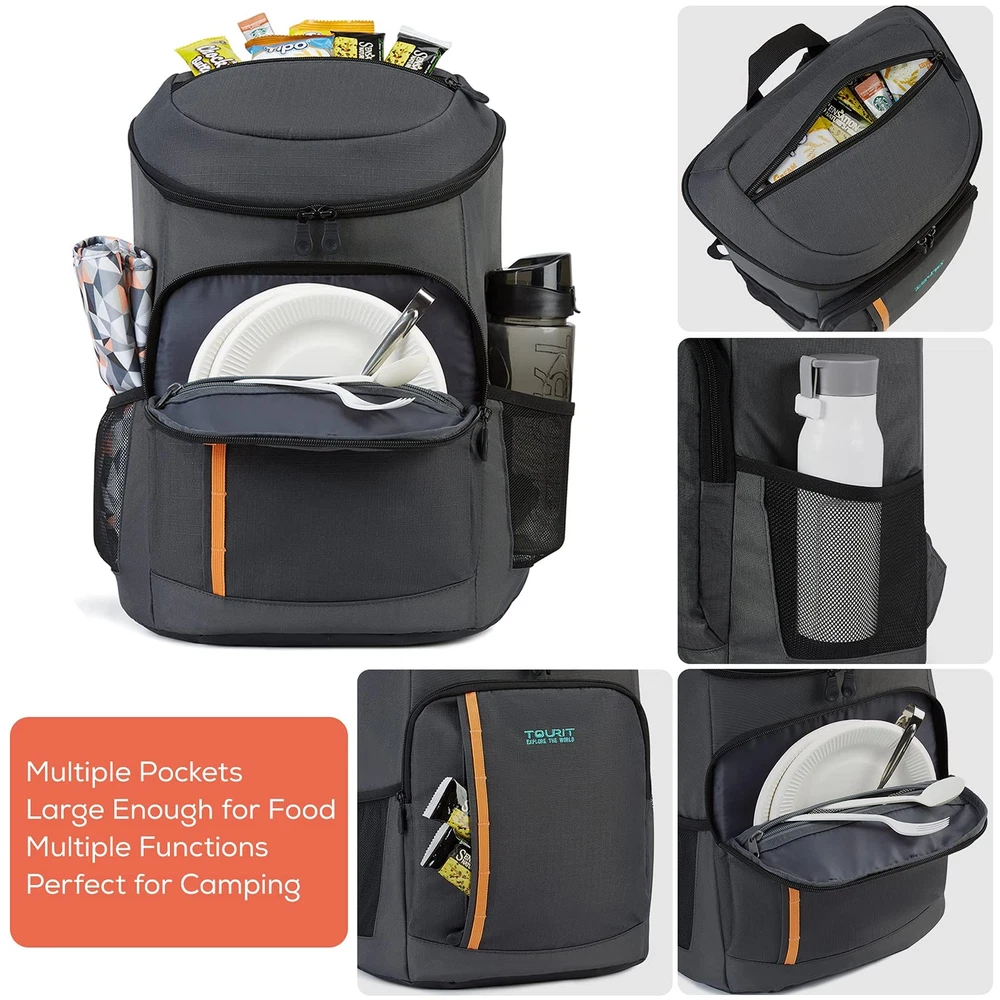 30 Cans Insulated Cooler Backpack for Hiking Whether you have strong interest in road/ beach trip, picnics or daily hiking, the backpack cooler is your best partner for all types of outdoor activities. The stylish design of our insulated backpack make it also can be used as a lunch backpack or daily pack. 【Product Features】 ■Keep your food cool and safety This cooler bag for hiking choose high-density material to keep your snacks and drinks cool for 16 hours temperature below 15℃(with Freeze Packs). ■Ventilate Exterior Material Our insulated backpacks use ventilate material on the back to avoid your clothes getting wet by the condensation. ■Durable and easy to clean This camping coolers is comfy and versatile which is made of high-density tear resistant fabric with padded, adjustable straps. ■Leak resistant The inner insulation thicken foam and leak-proof liner work together to make sure anti-leaking. 【Multi Compartments】 ■The main storage compartment is large enough to provide roomy capacity for your beers, juice, sandwiches or other food. ■Two front zipper pocket can be used for your chip bags, travel wallet or other small accessories which can be easily access. ■Two bottle holders on the side that worked nice for your water or umbrella. ■There is also one mesh pocket on the strap for your Iphone 6s Plus. ■The strap on the front is perfect for your picnic pad. ■ 1 beer opener on the strap for your easily use. With this picnic backpack cooler, you can spend the idyllic day with your family, enjoying the drinking at the beach or on the boat Leakproof Cooler Backpack: High-density Insulation material and leak-proof liner inside the insulated backpacks work together to ensure anti-leaking and keep food hot / cold for 16 hours with ice packs Large Capacity Coolers: 13.0" x 7.5" x 17" / 33cm x 19cm x 43cm (L x W x H), Weight: 1.1 pounds / 500g, can hold up to 30 cans(330ml), own enough space for all your necessities Multiple Pockets: 1 main roomy storage compartment, 2 side mesh pockets, 2 large front zipper pockets to keep utensils, 1 zipper pocket on the lid, 1 mesh pocket, and 1 beer opener on the strap Light yet Durable: Made of waterproof, durable fabric, the best lightweight backpack with cooler for work, picnics, road / beach trips, hiking, camping, cycling, a perfect gift for men and women Multiple Functions: The stylish design of our insulated cooler backpack make it also can be used as a lunch backpack or daily pack. Perfect for lunches, picnics, work, or travel