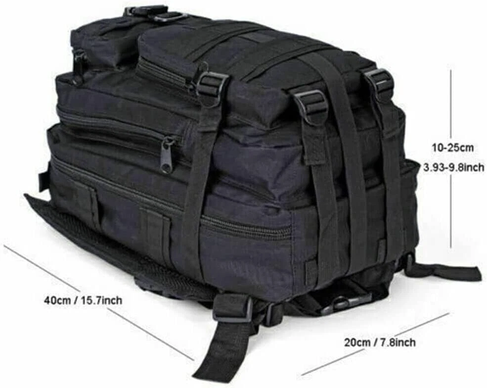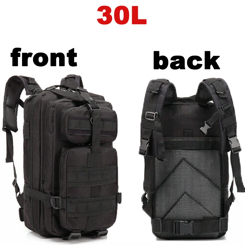 Features: . VERSATILE MOLLE SYSTEM . AMPLE STORAGE SPACE . TOUGH & COMFORTABLE . SPACIOUS DESIGN . ALL-PURPOSE BACKPACK Specification: Fabric: High density oxford waterproof fabric Lining: Nylon Color: Black, Army Green, CP, ACU,Khaki Size: 450x230x250mm/17.72x9.06x9.84in Weight: about 900g Volume: about 30L Uses: Leisure, sports, travel, exploration and other outdoor activities Package List: 1 * 30L Outdoor Backpack Note: . Due to the different monitor and light effect, the actual color of the item might be slightly different from the color showed on the pictures. Thank you! . Please allow 1-3cm measuring deviation due to manual measurement. 30L Military Tactical Backpack Rucksack Travel Bag for Camping Hiking Outdoor D escriptions: 【 THE SPACE YOU NEED】 This Military Tactical backpack size appro:15.7inch x 7.8inch x 9.4inch dimensions and appropriately sized 30L capacity, this pack has room for all of your essential gear. Large multi-layer interior storage compartments can accommodate a lot of outdoor equipment, and also meet your daily travel needs. Suitable for fitness, outdoor travel, hiking and other outdoor activities. 【 DURABLE & WATERPROOF】 Military grade backpack is made from Oxford material, tactical assault backpack is reinforced and double stitched at all stress points. Resistant and tough and our Special coating makes our training backpack both water resistant and scratch proof. 【 MOLLE MODULAR DESIGN】 Molle backpack webbing system on front and sides, designed to be used in combination with other equipment, you can attaching extra pouches or gears as tactical backpack; such as kettle pouch, walkie-talkie pouch, first-aid pouch, torch pouch, sundries pouch and also the sleeping bag and mat. 【 MULTIPLE COMPARTMENTS】 With multiple compartments and pockets, this military tactical backpack offers plenty of storage space for all your outdoor essentials. Specification : Fabric: High density oxford waterproof fabric Lining: Nylon Color: Black, Army Green, CP, ACU,Khaki Size: 450x230x250mm/17.72x9.06x9.84in Weight: about 900g Volume: about 30L Uses: Leisure, sports, travel, exploration and other outdoor activities Package List: 1 * 30L Outdoor Backpack Note: . Due to the different monitor and light effect, the actual color of the item might be slightly different from the color showed on the pictures. Thank you! . Please allow 1-3cm measuring deviation due to manual measurement. Payment Shipping Return Contact us About us Payment 1.Paypal, Credit Card, G Pay etc, many payment way is accepted. 2.Please be sure your shipping address is correct before make a payment. Shipping 1.We will ship out the item within 1-3 business days after comfirming the payment, appreciate your patience. 2.If the items are broken on the way( we will check the orders clearly before we sent them ),please contact us in 3 days you received it. We will send you a new one or refund your payment. Return 1.We stand behind every buyer.Items can be returned for exchange or refund within 30 days. 2.Please contact us when you have any confusion of our item, we will solve the trouble for you as soon as possible. Contact us 1.This is professional Seller.We will reply your message within 24 hours. 2.Please contact us whenever you have any question about the item. We will deal with it as soon as possible. 3. If you are unhappy with the item or our service,please Contact Us before leave feedback,just give me a chance,thank you! About us 1. Unless specified otherwise, all our products are IN STOCK and are shipped from Local warehouse - Not Overseas! 2. We provide a 30 day Satisfaction Guarantee or your money back (provided items are in the same new and resaleable condition.) 3. We have a PayPal Verified Business Account, please buy with Confidence! 4. Every item will be tesrted before send.We know our products well and if we don't have the answers we will do our best to find them for you! 5. Our friendly team look forward to serving you! Your satisfaction is our No.1 Priority We will do our best to satisfacy you.
