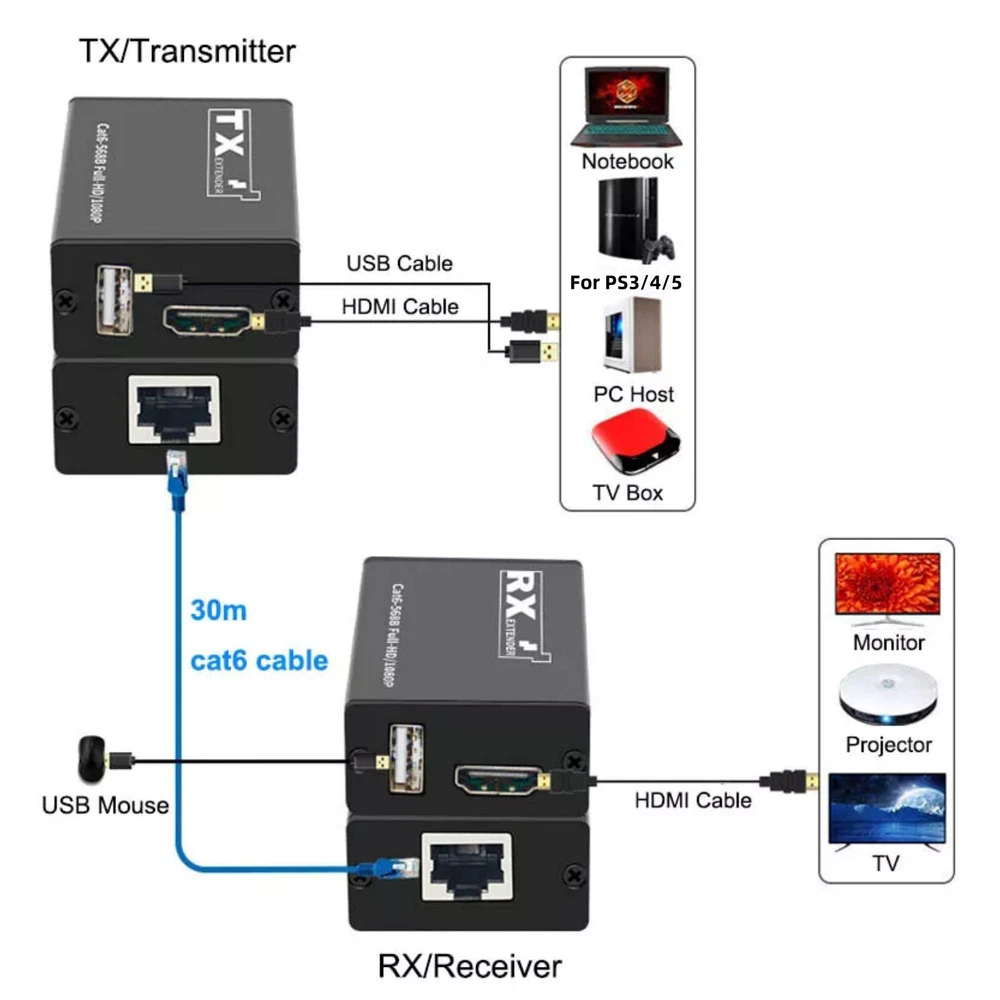 Product Description Features: Ultra-Long Transmission Distance and High-Definition Quality: This HDMI extender can transmit high-definition signals up to 30 meters using a Cat6 cable while maintaining a high resolution of 1080P. This breaks the transmission length limitation of traditional HDMI cables, making the transmission of high-definition signals more flexible and convenient. KVM Function Enhances User Experience: The KVM function equipped with this product not only enhances the practicality of the device but also saves costs for customers. Users can connect to the KVM port via a USB cable to achieve remote control, which is particularly useful in monitoring and other application scenarios. Designed Specifically for Monitoring Systems: This HDMI extender is specifically designed for monitoring systems, particularly suitable for DVR, NVR hard disk recorders, and other equipment. This ensures its professionalism and applicability in the field of security, providing users with a more stable and reliable solution. No External Power Supply Required, Easy Installation: The product does not require an external power supply, greatly simplifying the installation process. Users can easily achieve the extension and transmission of high-definition signals by following the connection instructions, reducing installation difficulty and cost. High-Quality Material and Stable Performance: Constructed with an aluminum shell, the product ensures durability and stability. Additionally, it requires the use of CAT6 (8-core standard Category 6 copper network cable) for connection, ensuring stable signal transmission. Actual testing has shown that even when connecting to a Dahua hard disk video recorder at a distance of 25 meters using copper network cable, excellent performance can be achieved, avoiding flickering issues that may arise with cheaper cables. Specifications: Material: Aluminum Shell Transmission Distance: Up to 30m Signal type: HDMI Maximum supported resolution: 1080P Cable Requirement: CAT6 (8-core Standard Copper Network Cable) Power Supply: No Need Size: 60*40*20mm / 2.36*1.57*0.78in Color: Black Package Included: 1 x Transmitter 1 x Receiver 1 x USB Cable Shipping Returns Contact Us Payment We ship most of our orders within 24 hours, and may up to 48 hours for. If you want faster shipping way. Please contact us before making payment. Sometimes due to problems with our transportation company system, your shipping information may be delayed to update. We recommend that you try again after 3-4 days. If you still haven't checked the shipping information, you can contact us by ebay message. Always believe we can figure things out with communication, if it comes to return, the pacakge must be intact and the same as you receive. If you have any questions, please feel free to email our service specialists 24 Hours a Day, 7 Days a Week. We will reply you ASAP. Return/refund is accepted within 30 days after the buyer receives the item. NO exchange will be accepted after 30 days from the date when the item is received. Please contact us first before returning your product!!! If you have any questions, our Customer Service staffs welcome you to email us. We strive to answer all questions and resolve any problems as quickly as possible. You can contact us 7*24, we will reply at the first time, and we will surely solve your problems. Note: 1.We try our best to reply to your emails as soon as possible, however, due to high volume of daily incoming emails and time zone difference, we may not be able to reply your emails immediately. Please allow 1 business days for us to response. If you do not receive any reply from us, please check your email ensuring your mailbox has not reached full size. 2.Due to some ISP SPAM filter settings, you may not be able to receive our replies; if you have problems receiving our emails, you may need to use a different email account to contact us. 3.Please give us the opportunity to resolve any problem. We understand the concerns and frustrations you might have, and will try our best to resolve the issues. Please email us before leaving any negative feedback or open any dispute on PayPal. 4.We care about our valued customers, and will always try to help you. So if you have any problems, please e-mail us immediately. We accept all verified payment from eBay. Shipping We ship most of our orders within 24 hours, and may up to 48 hours for. If you want faster shipping way. Please contact us before making payment. Sometimes due to problems with our transportation company system, your shipping information may be delayed to update. We recommend that you try again after 3-4 days. If you still haven't checked the shipping information, you can contact us by ebay message. Returns Always believe we can figure things out with communication, if it comes to return, the pacakge must be intact and the same as you receive. If you have any questions, please feel free to email our service specialists 24 Hours a Day, 7 Days a Week. We will reply you ASAP. Return/refund is accepted within 30 days after the buyer receives the item. NO exchange will be accepted after 30 days from the date when the item is received. Please contact us first before returning your product!!! Contact Us If you have any questions, our Customer Service staffs welcome you to email us. We strive to answer all questions and resolve any problems as quickly as possible. You can contact us 7*24, we will reply at the first time, and we will surely solve your problems. Note: 1.We try our best to reply to your emails as soon as possible, however, due to high volume of daily incoming emails and time zone difference, we may not be able to reply your emails immediately. Please allow 1 business days for us to response. If you do not receive any reply from us, please check your email ensuring your mailbox has not reached full size. 2.Due to some ISP SPAM filter settings, you may not be able to receive our replies; if you have problem