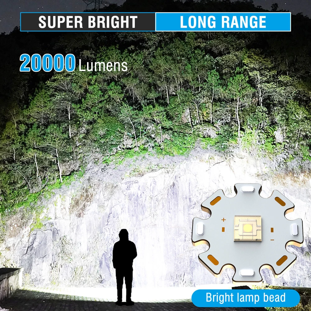 About this item 【Super Bright Flashlight】:The super bright handheld flashlight comes with 7 light modes, and COB light is designed on the side. Built-in 10 LEDs white light, 4 LEDs red light and 4 LEDs blue light, the front light can change 3 light modes and the COB side light can change 4 light modes. and very suitable for home, camping, hiking, outdoor or emergency situations. Etc 【Flashlight to Adjust Light Distance】: The head of the flashlight is zoomable and used to adjust the lighting distance. When the flashlight head is not extended, the lighting area is large and the lighting distance is approximately 3300 feet. When the flashlight head is extended, the lighting area becomes smaller, but the lighting distance is approximately 3900 feet. Can be used to view the status of areas further away. 【Power Display & 5-12 Hours Long Lasting Illumination】: The flashlight has a display on the side to show you how much power of the flashlight during using, the package includes a charging cable for you and the charging port is also designed with a waterproof rubber cover. The runtime of the flashlight is up to 12 hours in low work mode and 5-7 hours in a high work mode. 【Easy to Carry】: Led flashlight is equipped with lanyard and flashlight pouches, which can be hung on the side of the backpack or put into the backpack for easy carrying.flashlights also come with removable pocket clip ,Easily attach to your pocket , hat or belt. 【Waterproof for Heavy Rain Weather】: The Handheld flashlight is waterproof,this waterproof flashlight non-slip, shockproof, waterproof, rainproof, dustproof, can be used in camping, hiking and others Rain, snow or other outdoor emergency situations.