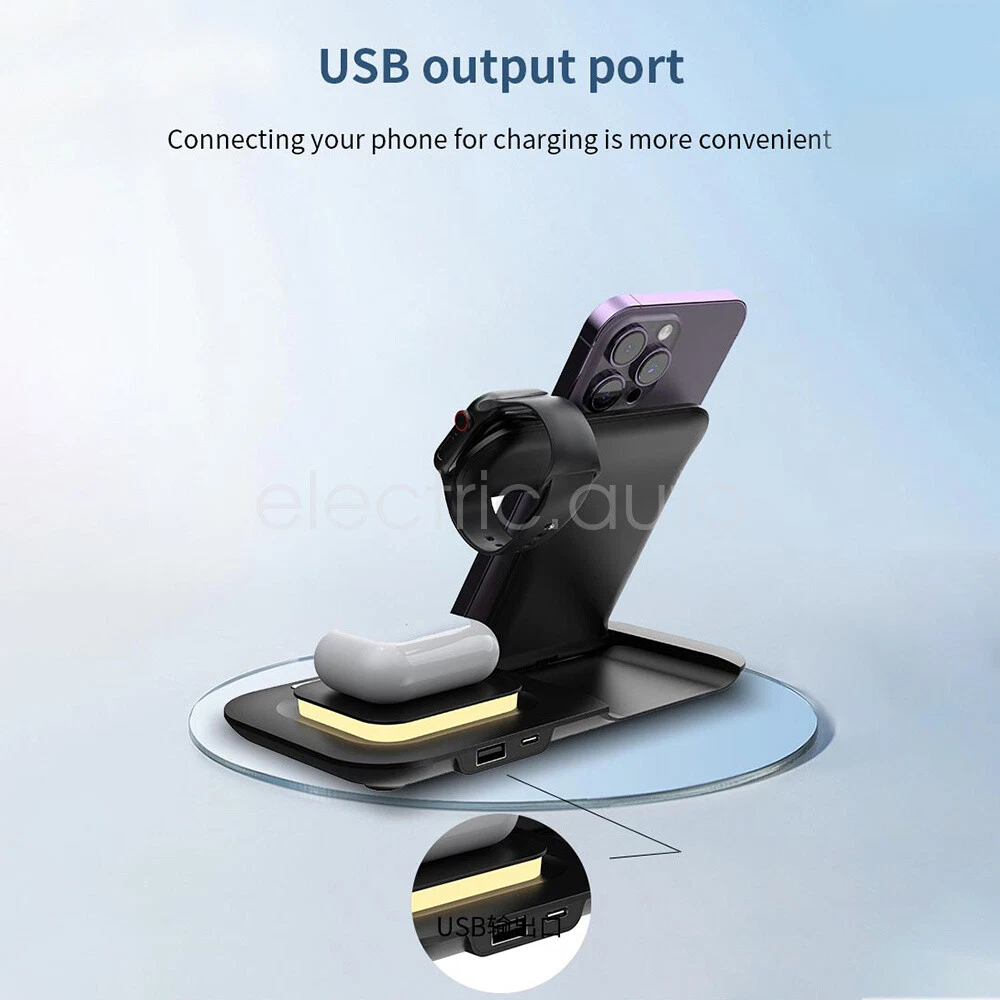 Product View Detail Features: [5-in-1 CHARGING STATION] The wireless charger conveniently charges your iPhone, Apple Watch, AirPods, and other devices with wireless charging capabilities at the same time. The charging station makes it easy to charge your entire desktop and nightstand, so say goodbye to tangled cords. Compatible with iPhone 16, 15, 14, 13, 12, 11Pro/Max/Mini/Plus, X, XR, XS/Max, SE, 8/Plus, iWatch 8/7/6/5/4/3/2/SE, AirPods 2/3/pro/pro 2. [Rapid Wireless Charger] Simply place your wireless device on the charging station, make contact and start charging steadily and efficiently. After many extreme tests and fan feedback, we use high power charging chips and world-class electronics to ensure the fast charging quality of the charging station. [SAFE WIRELESS CHARGER STAND] Apple wireless charging station with over-current protection, over-voltage protection, over-temperature protection and foreign object detection. The reasonable internal circuit design of the Apple wireless charging station prevents overcharging from damaging the device battery and ensures safe and fast charging of the device. [Foldable Travel Wireless Charger] The Apple Wireless Charging Station for multiple devices features a compact and foldable design that provides fast charging for your iPhone at home, in the office and on the go. The Apple wireless charger can be used as a wireless charger stand with angle adjustment. iPhone wireless charger can be used as a wireless charging pad to keep your phone charged by simply laying it flat. [Fits Cases and Sleep Friendly Indicators] The iPhone wireless charger supports most cases up to 2 inches/5 millimeters thick, eliminating the need to remove the case when charging with the wireless charging station (excluding cases with magnetic or metal attachments). Place your device on the wireless phone charger to start charging, and the LED night light can be turned off manually. So you don't have to worry about the light affecting your sleep. Attention: 1.For a fast charging experience, please use a 9V-2A or 12V-2A power adapter (adapter not included). 2.The watch charger is only for Apple Watch, it can't charge Samsung Watch or other brand watches. Parameters: *Product Name: 5-in-1 Wireless Charger *Input power: 9V-2A/12V-2A *Mobile phone output: 5W/7.5W/10W/15W/30W *Watch output: 5W (max) *Headphone output: 3W (max) *Charging efficiency: ≥75% *Product material: ABS *Product color: black Package Includes: 1*5-in-1 wireless charger 1*Type-C cable Attention: 1.Not included not include the power adapter! 2.Item is limited to charger only, not including headphones, watches! 3. Due to manual measurement, please allow a difference of 1cm error! 4.Depending on the light color or monitor hue may vary! Shipping Policy Payment Method Returns Policy Shipping Policy We only accept your Ebay Address ,Please Make sure it's 100% right. The items you ordered will be shipped out in 1 business day by Hong Kong Air Mail when your payment is clear. The arrival time is 5-20 business days to United States usually. We maintain high standards of excellence and strive for 100% customer satisfaction! Feedback is very important to us. We request that you contact us immediately BEFORE you give us neutralor negative feedback, so that we can satisfactorily address your concerns. Payment Method Returns Policy Copyright © 2017 DataCaciques 30W Wireless Charger Fast Charging Dock Stand iPhone Apple Watch Airpods Samsung Home Payment Shipping About us Contact us Store Categories Store Categories Consumer Electronics PC&Tablet Accessories Mobile Phone Accessories Sound&Vision Headphones Watches Camera Led Lights Others Auto Car Accessories Lights Others Motorcycle Motor Accessories Lights Others Headlamp&Torch Others Other Product View Detail Features: [5-in-1 CHARGING STATION] The wireless charger conveniently charges your iPhone, Apple Watch, AirPods, and other devices with wireless charging capabilities at the same time. The charging station makes it easy to charge your entire desktop and nightstand, so say goodbye to tangled cords. Compatible with iPhone 16, 15, 14, 13, 12, 11Pro/Max/Mini/Plus, X, XR, XS/Max, SE, 8/Plus, iWatch 8/7/6/5/4/3/2/SE, AirPods 2/3/pro/pro 2. [Rapid Wireless Charger] Simply place your wireless device on the charging station, make contact and start charging steadily and efficiently. After many extreme tests and fan feedback, we use high power charging chips and world-class electronics to ensure the fast charging quality of the charging station. [SAFE WIRELESS CHARGER STAND] Apple wireless charging station with over-current protection, over-voltage protection, over-temperature protection and foreign object detection. The reasonable internal circuit design of the Apple wireless charging station prevents overcharging from damaging the device battery and ensures safe and fast charging of the device. [Foldable Travel Wireless Charger] The Apple Wireless Charging Station for multiple devices features a compact and foldable design that provides fast charging for your iPhone at home, in the office and on the go. The Apple wireless charger can be used as a wireless charger stand with angle adjustment. iPhone wireless charger can be used as a wireless charging pad to keep your phone charged by simply laying it flat. [Fits Cases and Sleep Friendly Indicators] The iPhone wireless charger supports most cases up to 2 inches/5 millimeters thick, eliminating the need to remove the case when charging with the wireless charging station (excluding cases with magnetic or metal attachments). Place your device on the wireless phone charger to start charging, and the LED night light can be turned off manually. So you don't have to worry about the light affecting your sleep. Attention: 1.For a fast charging experience, please use a 9V-2A or 12V-2A power adapter (adapter not included). 2.The watch charger is only for Apple Watch, it can't charge Samsung Watch or other brand watches. Parameters: 