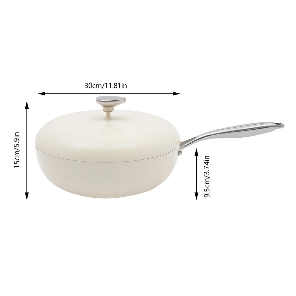Specification Material: Aluminum, Stainless Steel, Silicone Color: Milky White Process: Medical Stone Coating Style: Modern Assembly Required: No Mounting Type: Tabletop Capacity: 4.8L/162.33oz Mouth Diameter: 30cm/11.81in Depth: 9.5cm/3.74in Lid Height: 15cm/5.9in Applicable Number of People: 4-6 Package Size: 54*37*14cm/21.26*14.57*5.51in Gross Weight: 2.6kg/5.73lbs Net Weight: 2.4kg/5.29lbs Package Included 1* Frying Pot with Lid 1* Spatula 30cm Medical Stone Nonstick Frying Pot Skillet with Lid, Healthy Chef Pot 4.8L Description Traditional iron or stainless steel frying pots can cause your food to stick to the pots, but our non-stick pot is a good solution to this problem. It is an efficient cooking tool that combines natural medical stone coating with modern non-stick technology, combining natural beauty and practicality, aiming to bring you a healthy and relaxing cooking experience, whether it's sauteing, stir-frying, or stewing. Key Features Made to Last: Our product consists of a high-quality aluminum pot with a stainless steel handle, treated with a medical stone coating that is sturdy and heat-resistant , non-stick and stain-resistant , ensuring long-term beauty and practicality. Excellent Performance: This product uses a high-fold heat circulation layer, a heat-conducting alloy layer, a sturdy wear-resistant base layer, and pebble-suspended microparticles to make it heat up quickly, and it also achieves a double non-stick effect inside and out. Efficient Cooking: Without the steam outlet on the lid of this product, this product makes a stronger seal between the lid and the pot, forming a good seal and internal circulation mechanism for steam, which can cook food evenly and quickly while also maintaining the temperature of the food and preserving its flavor. Large Capacity: The 3.74-inch deepening pot and large capacity of 162.33oz can cook enough food for 4-6 people at one time, thus satisfying you and your family's eating needs. Safe & Healthy to Use: This product is PFOA-free to reduce the hazards of grease and smoke, making it convenient for you to prepare safe and healthy food while maintaining its non-stick properties. Exquisite Appearance: The smooth milky white surface and smooth lines with silver handles and a pebble-shaped cover bead make it elegant and classy, adding a bright landscape to your kitchen as well. Effortless Cleaning: Its smooth surface and non-stick coating make it less likely to accumulate grease, making it easy for you to clean and maintain. Ideal Gift: With good performance and a modern appearance, it can be used as an ideal housewarming gift for parents, friends, and lovers so that they can also enjoy more delicious and healthy food. Good Customer Service: We aim to provide quality products and services. If you have problems, please feel free to contact us. We will reply and solve the problem for you as soon as possible. Details Anti-scald Handle: The stainless steel handle has good insulation and heat resistance to improve your safety. Threaded Bottom: This design makes it more wear-resistant and non-slip , enhancing its practicality. Application This product is suitable for gas cooktops, induction cooktops, electric ceramic ovens, etc. This pot can be used for sauteing, stir-frying, braising, and boiling. Specification Material: Aluminum, Stainless Steel, Silicone Color: Milky White Process: Medical Stone Coating Style: Modern Assembly Required: No Mounting Type: Tabletop Capacity: 4.8L/162.33oz Mouth Diameter: 30cm/11.81in Depth: 9.5cm/3.74in Lid Height: 15cm/5.9in Applicable Number of People: 4-6 Package Size: 54*37*14cm/21.26*14.57*5.51in Gross Weight: 2.6kg/5.73lbs Net Weight: 2.4kg/5.29lbs Package Included 1* Frying Pot with Lid 1* Spatula Notes Please do not allow the oil temperature to rise above 392℉. Please do not use hard materials such as steel wire balls to clean the cookware. The pot is dry in the first stage, it is recommended not to cook noodles or starchy food, and the operation will be better in the later stage. It is recommended that you control the fire when you use it, use medium fire for stir-frying vegetables, and use low fire for frying meat and sautéing things. products support the use of a new induction cooker, the old induction cooker may not be recognized, the general stir-fry heat acceptance range of 1200w ~ 1800w. Due to the bottom of the pot's heat capacity, it is recommended that no more than 2000w. The gas cooking stove is recommended to be used with low to medium heat. Please note that the gas stove itself has a floating fire extinguished situation, it is recommended to do dishes in a timely manner after cleaning the pot and pot surface, to avoid leaving stains in the second fire extinguished caused by adsorption to strengthen the stains caused by the difficult to clean the phenomenon. (Normal circumstances can be avoided) Please put a little oil when using it to avoid empty and dry burning. Payment Delivery details Terms of sales About us Contact us Payment We accept ebay payment 。 Fees such as import duties, taxes are not included in the item price or shipping costs. These charges are the buyer's responsibility. Delivery details Shipping: 2-9 working days to: USA Terms of sales We maintain high standards of excellence and strive for hundred percent customer satisfaction. Feedback is very important to us. We hope that you contact us immediately before you give neutral or negative feedback, so that we can address your concerns. It is impossible to address issues if we do not know about them! About us Your satis faction is our ultimate goal. We work hard to earn your trust and future business. Our certified technicians have tested each item before shipping. The unit comes with 1 year limited warranty on all manufacturing defects. a) If you receive a defective item, you may return it or ask for a discount. Please contact us within 14 days after you receive the package. b) What you returned must be intact and in