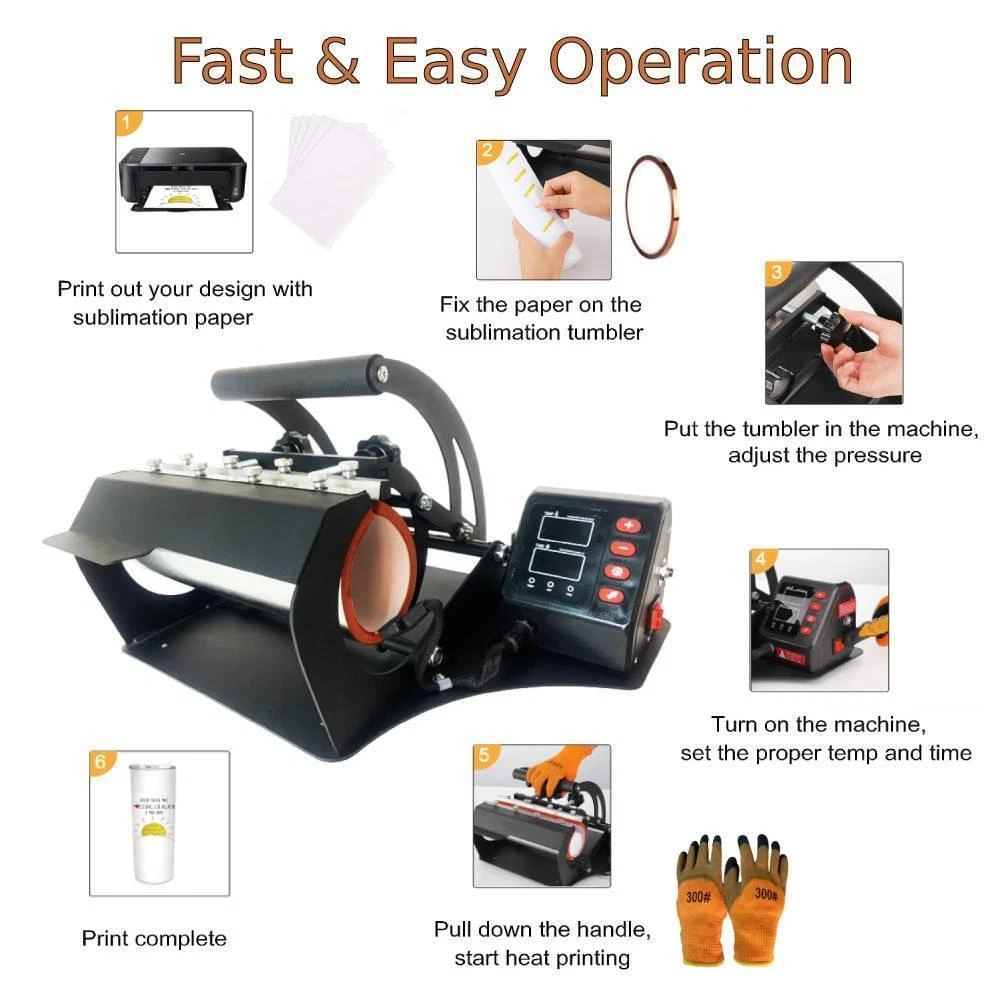 listing template VISIT OUR STORE SIGH UP FOR EMAIL 30oz Mug Heat Press Tumbler Heat Press Machine Sublimation Printing 11-30oz Cup Feature: 1. 【Easy to Operate】:Adjusting the pressure of the machine for the the size of the mug by using the knobs and handles beforing using the machine. Then put the mug with pattern into the machine, setting timer and temperature. The machine has alarm and will sound when its temperature and time are ready. 2. 【High Compatibility】:This heat press machine accommodates 11~30 OZ straight ceramic/metal mugs, cups and water bottles. The size of the heater is 10.6”in length and 3.4”in diameter.It can print one large 30oz tumbler or two small mugs in one time (11-15oz). 3. 【Powerful Heat Printing】:This heat press sublimation machine supports 0-482℉(0-250℃)and 0-999s precise settings.Temperature is adjustable and can be clearly monitored on the display. The transfer is permanently embedded into the items. 4. 【Great Equipment for DIY】:Tumbler heat press machine is a great equipment to make your own DIY and gifts for friends and family.Also can customize unique gifts for various club activities, competitions, and social meetings, comes with great commemorative significance and advertising effect. 5. 【Package Included】:heat press machine x1,sublimation paper x5, A pair of heat resistant gloves, heat resistant tape x1 Specification: 1. Heater size: 10.6 inches in length;3.4 inches in diameter 2. Temperature range: 0-250℃(482℉) 3. Time range: 0-999 seconds 4. Input power: 110V 5. Compatibility: 11~30 OZ straight tumblers;ceramic/metal mugs, cups and water bottles 6. Tumblers diameter range: 2.64-3.4 inches Package list: 1x Tumbler heat press machine 5x sublimation paper A pair of heat resistant gloves 1x heat resistant tape (Excluding Cups) !!! Warnings: Ordinary ink and paper are not applicable to heat press transfer. Use sublimation ink and sublimation paper for printing. The tumbler will be very HOT during and after the transfer. Don't touch the mug bare handed! Use protective equipment. Or let the tumblers cools down for a while before taking it out. The machine will produce smell during initial uses. Please use the machine in good ventilation room or outside. The smell will gradually disappear after multiple uses. The machine is NOT suitable for children to use or for food processing. Shipping Policy 1. Ship worldwide from New Jersey by reliable shipping companies -- USPS, UPS, FEDEX, DHL, etc., and only to VERIFIED PAYPAL ADDRESS. Transport Delivery ETA. Package handling only takes 1 business day at our warehouse, so please make sure entering correct payment and shipping information before checking out. Once your payment is completed, we are not going to accept any more changes to your order. 2. International Buyers – Please Note: a. Import duties, taxes and charges are not included in the item price or shipping charges. These charges are the buyer's responsibility. b. Please check with your country's customs office to determine what these additional costs will be prior to bidding/buying. 3. Please check your shipping address carefully before checkout, it can't be changed if order completed. 4. Orders placed on weekend will be shipped within 2 days.Notification of shipment with tracking number will be sent to buyers. 5. Standard shipping: 2-7 business days Expedited Shipping: 2-3 business days One-day Shipping: 1 business day International shipping: Varies 6.Ship within 1 business day once payment completed. Notification of shipment with tracking No. will be sent to buyer. 7.We offer discounts for combine shipping. Please contact us first if you need combine shipping, and an invoice with discount will be sent to you. 8.Please allow 5 business days for delivery to US destinations on any eBay orders and 14 business days for delivery to any International destinations. We highly recommend our buyer choose priority/expess mail for international delivery which is much more stable. Return Policies 1. Refunds given only if item DOA and cannot be replaced via PAYPAL . If so, Please contact us with 5 days since you receive the item and and return to us within 30 days from the delivery date for exchange or refund. 2. If you need return, please contact our customer service representative, let us know the detailed problem and send us some pictures for confirmation. Payment Payment should be sent within 8(EIGHT) days of auction closing. Feedback If you are dissatisfied for any reason, please do not be quick to leave negative/neutral feedback. We work hard to make sure EVERY CUSTOMER 100% SATISFIED and resolve any problem for you. Work Time Work Time: Monday to Saturday About Us | Newsletter| Feedback| Contact Us Copyright © 2022 LikeDeal. All rights reserved. 无标题文档 30oz Mug Heat Press Tumbler Heat Press Machine Sublimation Printing 11-30oz Cup Feature: 1. 【Easy to Operate】:Adjusting the pressure of the machine for the the size of the mug by using the knobs and handles beforing using the machine. Then put the mug with pattern into the machine, setting timer and temperature. The machine has alarm and will sound when its temperature and time are ready. 2. 【High Compatibility】:This heat press machine accommodates 11~30 OZ straight ceramic/metal mugs, cups and water bottles. The size of the heater is 10.6”in length and 3.4”in diameter.It can print one large 30oz tumbler or two small mugs in one time (11-15oz). 3. 【Powerful Heat Printing】:This heat press sublimation machine supports 0-482℉(0-250℃)and 0-999s precise settings.Temperature is adjustable and can be clearly monitored on the display. The transfer is permanently embedded into the items. 4. 【Great Equipment for DIY】:Tumbler heat press machine is a great equipment to make your own DIY and gifts for friends and family.Also can customize unique gifts for various club activities, competitions, and social meetings, comes with great commemorative significance and