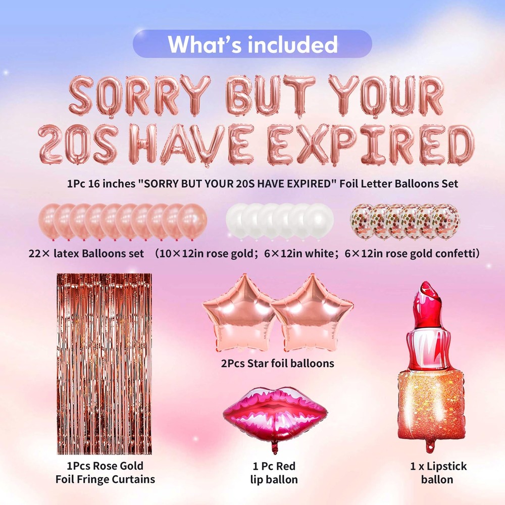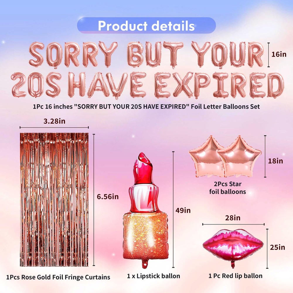 30th Birthday Decorations For Her 30 Balloon Numbers Thirty Birthday Decorations For Women 30 Year Old Birthday Sorry But Your 20s Have Expired Balloons Banner 30 Birthday Party Decorations For Woman Make her 30th birthday unforgettable with our "Sorry But Your 20s Have Expired" 30th Birthday Party Decorations! This creative design is tailored for women who want to celebrate their transition into the fabulous thirties with style and charm. Our decorations are perfect for any 30th birthday celebration, from a glamorous soirée to an intimate get-together. The set includes 1 "SORRY BUT YOUR 20S HAVE EXPIRED" foil letter balloon set, 1 red lip balloon, 1 lipstick balloon, 1 pink bottle balloon, 2 star foil balloons, 1 rose gold foil fringe curtain, and a set of 22 latex balloons. These 30 bday decorations can be used and reused, thanks to their high-quality materials, making them a lasting memory of her special day. Looking for a great gift idea? Surprise your friend or loved one with this complete decoration set, ensuring she has a memorable and fantastic 30th birthday celebration. Whether it's the rose gold foil fringe curtains, the sassy red lip balloons, or the elegant "SORRY BUT YOUR 20S HAVE EXPIRED" foil letter balloons, this set has everything you need to make her thirty birthday party truly special. Don't miss out on this opportunity to add a touch of glamour and fun to the milestone event. What is included in the package? 1Pc 16 inches "SORRY BUT YOUR 20S HAVE EXPIRED" Foil Letter Balloons Set; 1Pc 25 inches Red Lip Balloon; 1Pc 45 inches Lipstick Balloon; 1Pc 40 inches Pink Bottle Balloon; 2Pcs18 inches Star Foil Balloons; 1pc 3.28ft x 6.56ft Rose Gold Foil Fringe Curtains; 22pcs 12 inches Latex Balloons set. 30th Birthday Decorations for Women: Celebrate her milestone with these eye-catching decorations - "SORRY BUT YOUR 20S HAVE EXPIRED" foil letter balloons, red lip balloon, and more! Widely Application: Perfect for any 30th birthday celebration, whether it's a grand party or intimate gathering, these thirty birthday decorations add a touch of glamour and fun. Reusable and High Quality: Crafted to last, our 30 year old birthday decorations are made from premium materials, ensuring they can be enjoyed at future celebrations or shared with loved ones. Great Gifts Idea: Surprise your friend or loved one with this complete 30th bday decoration set, making it an unforgettable gift for her special day. What Can You Get: In this rose gold 30th birthday decorations set, you'll receive 1 "SORRY BUT YOUR 20S HAVE EXPIRED" foil letter balloon set, 1 red lip balloon, 1 lipstick balloon, 1 pink bottle balloon, 2 star foil balloons, 1 rose gold foil fringe curtain, and a set of 22 latex balloons. Shipping from the USA All of our products are shipped from the USA, ensuring quick delivery to your destination. Payment We offer the following payment methods: PayPal, credit card, bank transfer, and eBay's secure payment system. Free Shipping & Free Returns Shipping within the USA is FREE. Additionally, any return is absolutely free for you. Risk-Free Purchase You have the option to return an item within 30 days without any justification. We cover the return shipping costs! Fast Shipping We ship immediately upon receipt of payment. Generally, the package is delivered within 2-3 days in the USA. If it takes longer, we will contact you. Quality and Costs Made in Europe, USA, China No customs fees or additional charges Total satisfaction guarantee Invoice with declared VAT available upon request in .pdf format Feedback Your feedback is very important to us. After you pay for your purchase, you will automatically receive positive feedback from us.