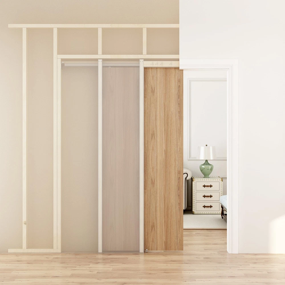 Superior High Quality: The pocket door frame kit includes strong complete galvanized steel track, durable steel reinforced wood studs, two-way soft-close mechanism and super smooth hanger, giving you high quality assurance. Durable and Sturdy: The pocket door kit passed 100000 cycles test. You can use the pocket door kit more than 10 years. It is a cost-effective choice! Excellent Structure and Design: Precision extruded aluminum box track of the pocket door kit ensures door will not jump from track. Clever design allows you to replace parts directly after the pocket door kit is installed without removing the drywall. One side of the studs is wood, and you can nail into the wood side if you need to. Dimension: The pocket door frame kit is suitable for door width 24"-30", door height 80" and door thickness 1"-1.75". The track and studs can be cut. Soft-close mechanism designed for doors weighing up to 88 lbs. Package Includes: 4 square uprights, 1 aluminum track with wood slot, 1 double sided soft closes, 2 hangers with mounting plates, 2 column bases, 2 door guides, 2 soft close triggers, necessary srews and detailed instructions. Quality Service: We are reliable and qualified manufacturer. Professional engineer team is dedicated to the pocket door kit. Professional customer service team help you solve all problems in time. We are always devoted to customer satisfaction!
