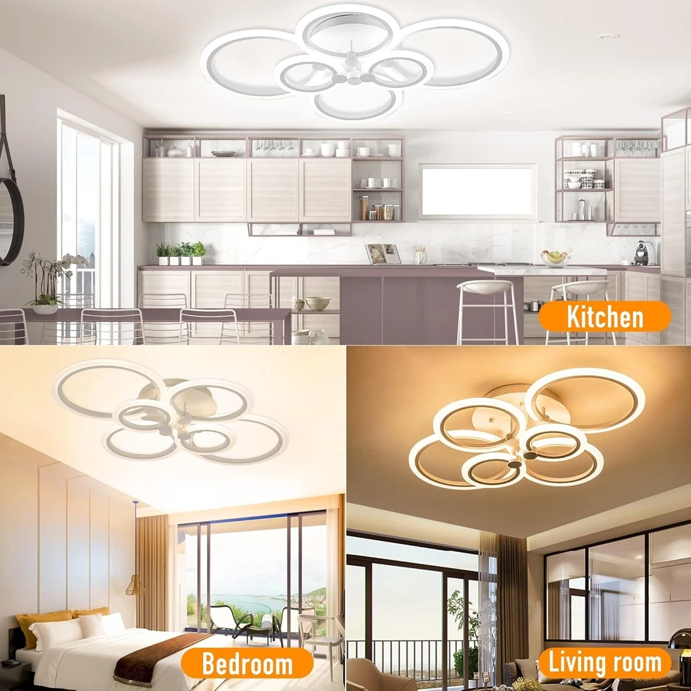 Flush Mount 31" Modern Ceiling Light with Color Change - 6 Rings LED Fixture ‹ › ‹ › ‹ › ‹ › ‹ › ‹ › ‹ › ‹ › Flush Mount 31" Modern Ceiling Light Transform your space with this stunning 6 Rings LED Fixture that embodies both elegance and innovation. A harmonization of modern design and smart functionality, this ceiling light is ideal for creating a captivating atmosphere in any room of your home. Features: Modern Design: Six adjustable rings resembling blooming flowers, allowing for endless configurations to enliven your spaces. Dimmable with Remote: Effortlessly adjust the color temperature from 3000K to 6500K, from warm white to cool white, with brightness levels adjustable from 10% to 100%. (Remote control range < 10m) Smart Technology: Features a timer function to automatically turn off after 30 minutes and remembers your previous settings. Ideal for playrooms, offices, dining areas, and more. Energy Saving: Built-in LED with a lifespan exceeding 30,000 hours, designed to save energy while providing high brightness, reducing electricity costs. Glare Reduction: Acrylic shade prevents glare, safeguarding your and your child's eyes. Benefits: Transformational modern design enhances the aesthetics of any room. Flexible lighting options to create the perfect ambiance for any occasion. Energy efficiency helps save on utility bills while providing top-tier performance. Effortless installation with included manual and accessories. Responsive customer service available 24/7 to assist with any queries. Why Choose Our Flush Mount Ceiling Light? Elevate your home decor with this exquisite Flush Mount 31" Modern Ceiling Light. Its mesmerizing design and versatile functionality allow you to tailor your lighting experience to match your mood and needs. Whether it’s a cozy family gathering or a vibrant dinner party, this luminary adapts effortlessly to your surroundings. Don't compromise on beauty and efficiency— choose this modern ceiling light fixture and bring life to your interiors. Place your order now and embrace the art of personalized lighting! Shipping Free & Fast Shipping - We offer free shipping to most of the USA with a normal delivery time of 3-7 days. However, due to the current situation, additional delivery time (up to 3 weeks) may be required for some items. Alternative Carriers - We may use alternative carriers (e.g. USPS, FedEx, UPS, etc.) to ensure your package arrives safely and on time. Due to the use of multiple carriers, we are unable to provide a tracking number automatically. Handling Time - Orders are processed and shipped within 1-2 business days of receiving cleared payment. Shipping Restrictions - Shipping to Alaska, Hawaii, Puerto Rico, Guam, and other US territories may incur shipping charges or delivery restrictions. Please contact us before ordering, or your order can be refunded/cancelled. State Restrictions - There may be restrictions based on your state of purchase. For example, certain items may not be shipped to California due to state regulations. Contact for Tracking Updates - If you require tracking updates or have any concerns about the delivery of your order, please feel free to contact us, and we will be happy to assist you. Return 30-Day Hassle-Free Returns - We want you to be completely satisfied with your purchase. If you are not, you can return the item within 30 days of receiving it for a full refund or exchange. Easy Return Process - To start a return, simply contact us and we will provide you with a prepaid return shipping label and detailed instructions. Restocking Fee - There are no restocking fees for returns. However, the buyer is responsible for return shipping costs if the return is not due to a seller's error. Refund Processing Time - Refunds will be processed within 5 business days of receiving the returned item in its original condition. Payment We accept all major credit cards, PayPal, and Apple Pay for your convenience. Your payment information is secure and encrypted to ensure a safe and seamless transaction. Please complete your payment within 3 days of purchase to avoid any delays in shipping. Feedback Your feedback is extremely important to us. We strive to provide the best products and customer service possible. If you are satisfied with your purchase, please take a moment to leave us a positive review. If you have any concerns or issues with your order, please contact us before leaving negative feedback. We are committed to resolving any problems and ensuring your satisfaction. Contact Us If you have any questions or concerns, please feel free to reach out to our customer support team. You can contact us through the eBay messaging system. We are available Monday to Friday, 9:00 am to 5:00 pm EST, and we will do our best to respond to your inquiry within 24 hours. Buy it now and enjoy a pleasant shopping experience! UPC: Not Set Lumens: 4800 lumens Item Height: Not Set Item Length: Not Set Item Weight: 6 pounds Item Width: Not Set Power Consumption: 60 watts Unit Quantity: 1 Material: Acrylic,Metal Room: Bedroom,Dining Room,Home Office/Study,Kitchen,Living Room Light Color: Multicolor,Warm White,Cool White,Neutral Light Features: Dimmable,Remote Control Department: Unisex Baby & Toddler,Kids,Teens,Adults Control Style: Remote Occasion: Casual Light Direction: Downwards Labels & Certifications: Not Set Brand: Unbranded Type: Chandelier Sensor Type: None Style: Modern Lighting Technology: LED Color: White Finish: Powder Coated Number of Settings: 1 Shade Shape: Rings Power Source: AC Installation Area: Indoor Energy Star: Not Set LED String/Strip Type: None MPN: Not Set EC Range: Not Set Manufacturer: Not Set Item Diameter: 31 in Voltage: 110 V Year Manufactured: Not Set Number of Lights: 6 Amperage: Not specified Country/Region of Manufacture: Not Set Output Voltage: Not specified IP Rating: Not specified Era: 21st Century (2000-now) Manufacturer Warranty: Not Set Color Temperature: 6500 K LED Chip