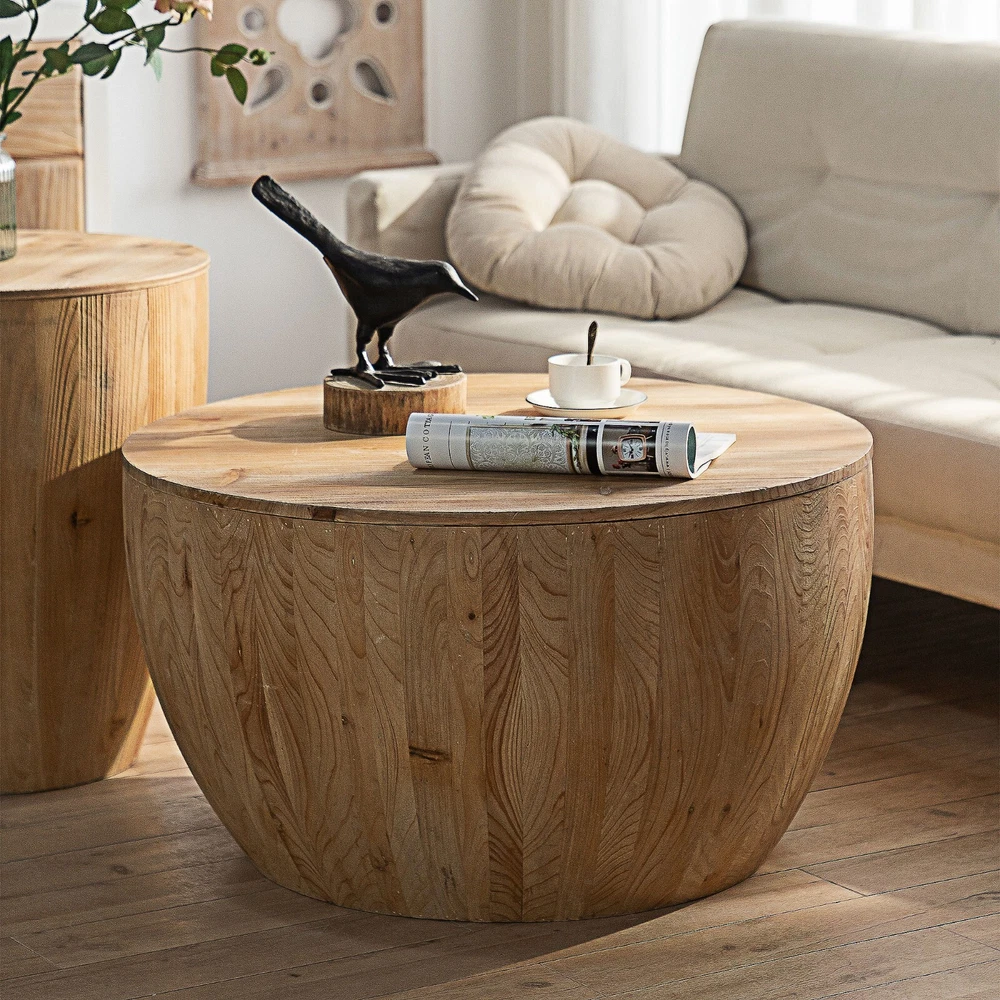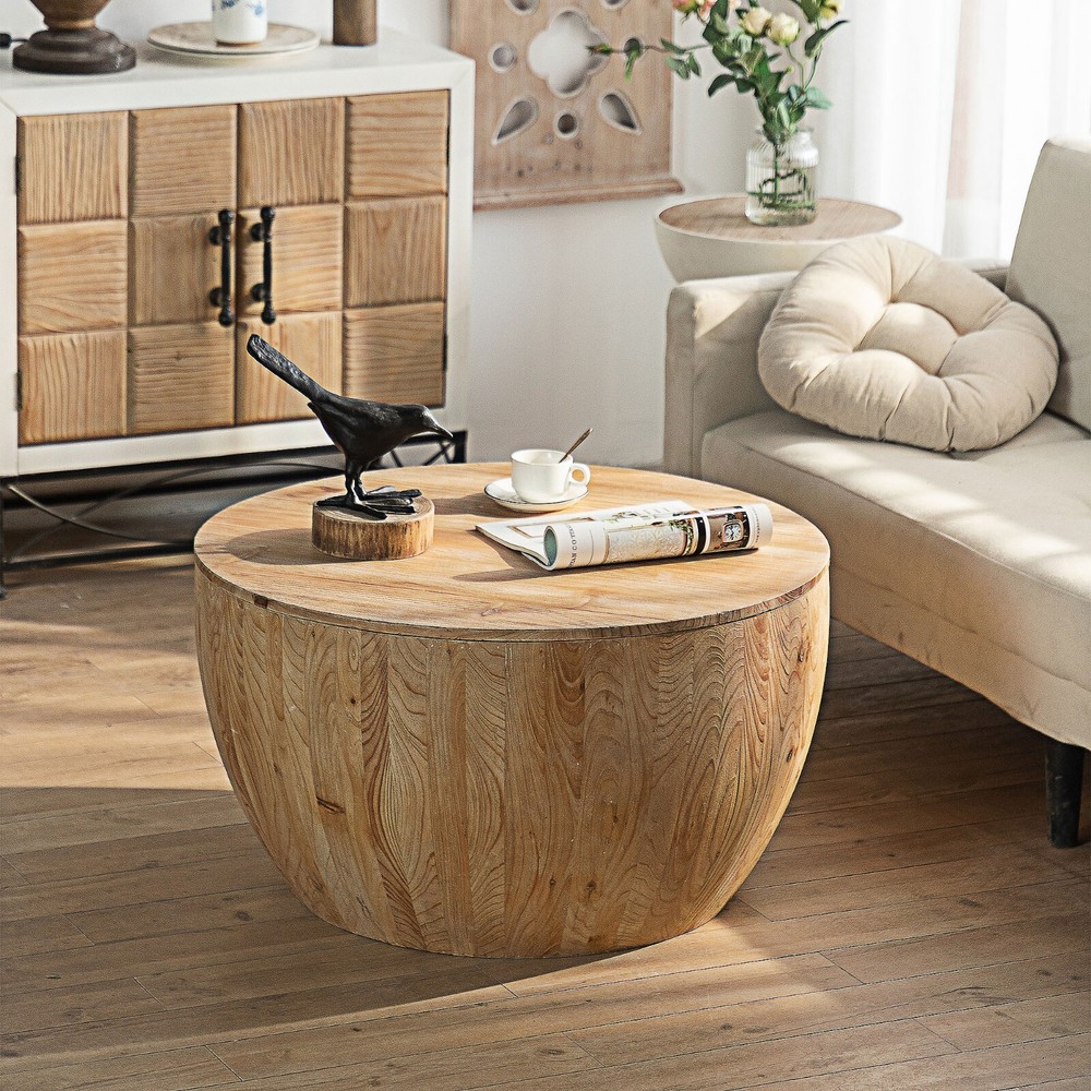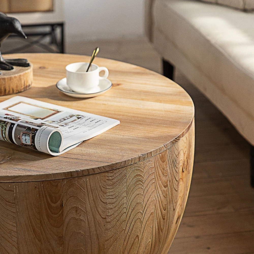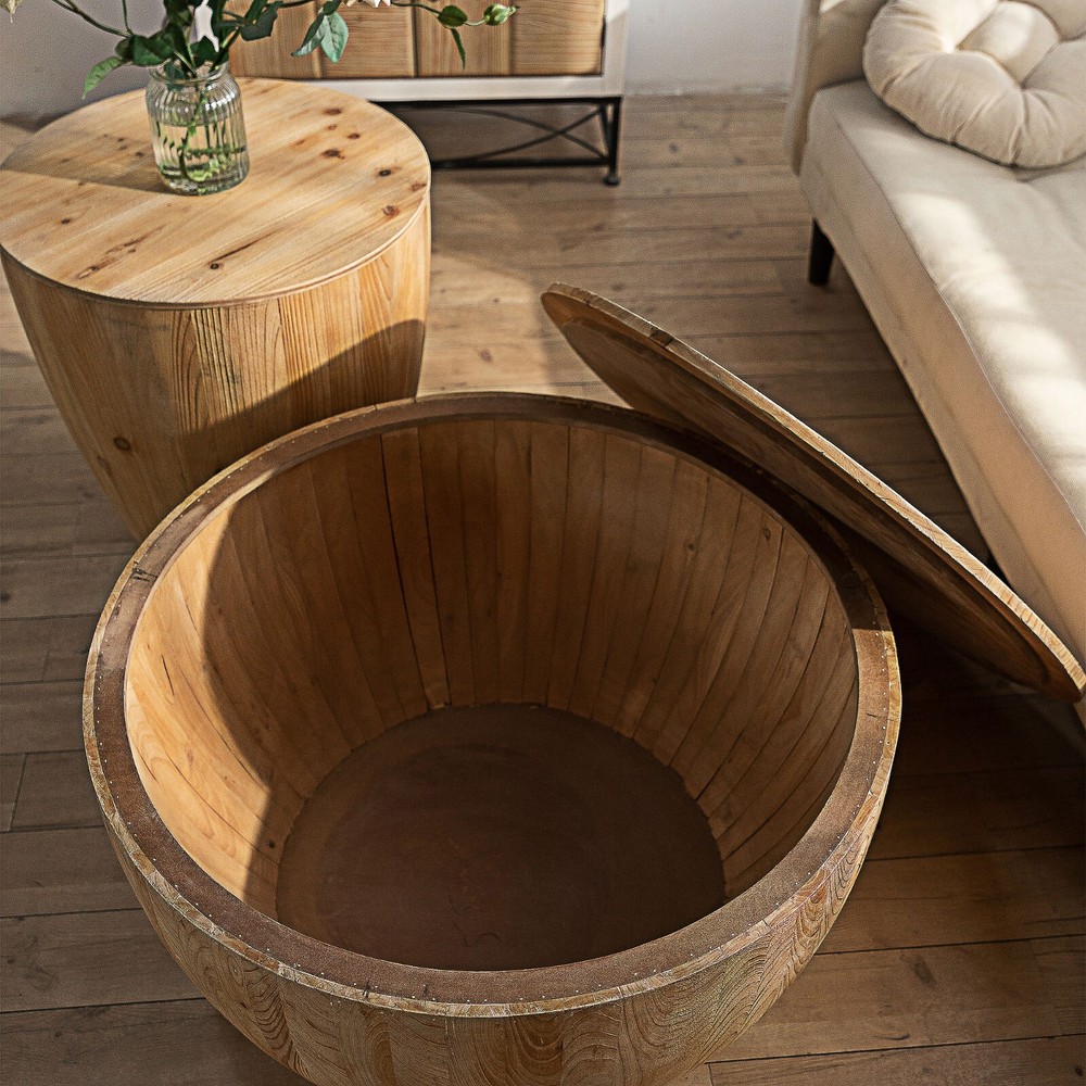 Description: This retro barrel shaped coffee table with storage function is not only fashionable and retro, but also practical. The coffee table is designed in a minimalist style, with a stable structure and a unique personality, adding a fashionable and beautiful atmosphere to your living room. The coffee table has a storage function, making it convenient to store small items and keeping your living room clean and tidy. Features: 【High Quality Material】This vintage barrel shaped coffee table has a top and side made of high-quality fir wood, while the bottom of the barrel is made of high-quality MDF. Combined with meticulous craftsmanship, providing a solid foundation for the coffee table and making your experience of using a coffee table even better. The combination of retro craftsmanship and wooden texture can meet your aesthetic requirements, making it sturdy and durable, with stable support and no shaking. 【Storage Function】The barrel shaped coffee table is hollow and can be opened to provide sufficient storage space for your daily use. The interior of the barrel shaped coffee table can store your small items, snacks, books, and other daily necessities, keeping your living room clean and tidy. In addition, a large desktop is an ideal place to place your favorite plants, pictures, and decorations. 【Reasonable Load-bearing Capacity】In order to meet a variety of requirements in your daily life, the load-bearing capacity setting of this coffee table is reasonable and practical.The coffee table does not require assembly and has a load-bearing capacity of 220 lbs. 【Easy To Clean】The coffee table has been treated with antique oil on its surface, and daily cleaning can be easily wiped with water or cloth. Notification: 1. Due to lighting or monitor display, the color of the real product may be slightly different from the image.The wood is natural, so the surface will retain the color of different shades such as cyan, yellow,etc, and during the production process, it may cause a lttle dark spots and color differences. 2. Manual measurement has been used, and there may be some reasonable errors. 3.It is normal that there are nail holes, wood knots and wood marks on the coffee table in the retro style.
