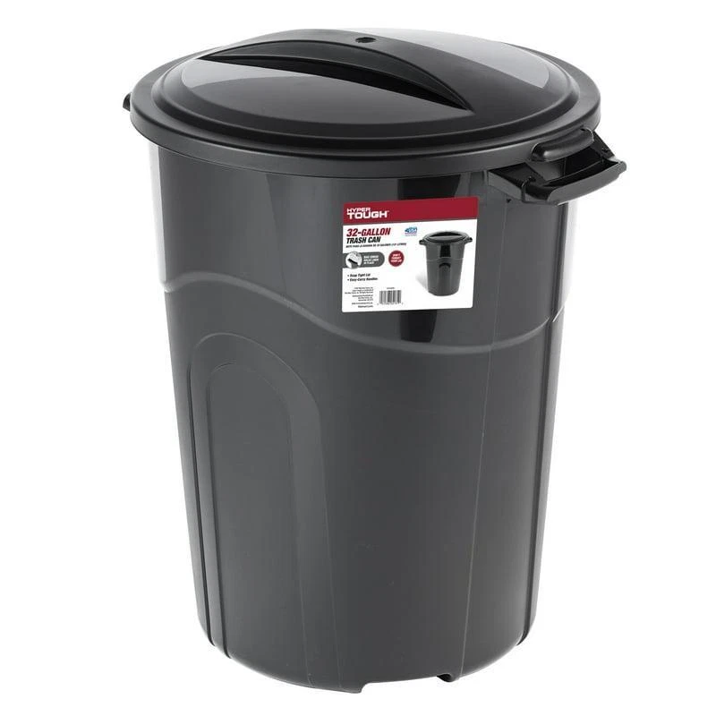 You may also like Plastic Round Step Trash Can 1.5 Gallon Touchless Bathroom Wastebasket New 22.42 USD 23.6 USD Free shipping 5% off 10 Gallon Rectangular Trash Can Slim Profile Easy Clean Wastebasket Indoor Use 18.01 USD 18.96 USD Free shipping 5% off Faux Marble Wastebasket Indoor Trash Can Durable Resin Office Bathroom Decor New 26.36 USD 27.75 USD Free shipping 5% off 13 Gallon Drawstring Kitchen Trash Bags 40 Count Puncture Resistant Home New 12.22 USD 12.86 USD Free shipping 5% off Strong Drawstring Trash Bags 30 Gallon Puncture Resistant 40 Count Multipurpose 23.43 USD 24.66 USD Free shipping 5% off Bronze Metal Wastebasket Durable Easy Clean Open Design Ideal Bathroom New 19.8 USD 20.84 USD Free shipping 5% off 30-Gallon Large Multi-Purpose Unscented Trash Bags Flap Tie Garage Kitchen 10.15 USD 10.68 USD Free shipping 5% off Compact Mini Trash Can Set of 2 Stainless Steel Waste Basket Office Kitchen New 28.92 USD 30.44 USD Free shipping 5% off 13.3 Gallon Black Plastic Touch Top Trash Can Kitchen Bin Durable Slim Profile 35.79 USD 37.67 USD Free shipping 5% off 13.2 Gal Step Trash Can Stainless Look Silver Flair Noise-Free Touchless New 44.1 USD 46.42 USD Free shipping 5% off 33 Gallon Pop-Up Trash Bin W/ Zippered Lid Collapsible Outdoor Garbage Can New 23.6 USD 24.84 USD Free shipping 5% off Bathroom Trash Can 2 Tone Black & White 7.2"x 7.2"x 9.8" Contemporary Design New 24.0 USD 25.26 USD Free shipping 5% off The Hyper Tough 32 Gallon Heavy Duty Plastic Garbage Can with included lid is heavy duty and perfect for your everyday waste needs. Recommended bag usage size is 33 gallon. This trash can is designed with sturdy pass through handles at the top and an additional hand groove on the bottom of the container. These features make moving this heavy duty injection molded trash can easier than ever. Attach the included lid with the predrilled holes. . The sturdy lid has a click lock, securing it tightly to the container. This waste basket is perfect for the deck, patio, garage, or office. Hyper Tough 32 Gallon Heavy Duty Plastic Waste Can, Included Lid, Black Load capacity 64 lbs Perfect for use Indoor and Outdoor Product Dimensions - 26. 500 in. L X 22. 000 in. W X 30. 750 in. H Handle groove on bottom Click lock lid Tether hold for lid Brand: Hyper Tough Garbage Can & Wastebasket Type: Open Top Trash Cans Volume Capacity: 32 gal Material: Plastic Color: Black Shape: Round Pattern: Solid Print Number of Compartments: 1 Items Included: Trash can and lid Assembled Product Weight: 8 lbs Recommended Location: Indoor and Outdoor Recommended Use: Household Manufacturer Part Number: ti0044 Model: TI0070 Assembled Product Dimensions (L x W x H): 26. 50 x 22. 00 x 30. 75 Inches You may also like Electronic Digital Safe W/ Keypad & Manual Override Keys Money Jewelry Passport 51.44 USD Free shipping 3-Speed Oscillating Tower FanMulti-function Remote Control 36" Tall Portable New 55.8 USD Free shipping 18" Pedestal Fan W/Cyclone Grill Adjustable Height Durable Portable 3 Speed Gray 51.85 USD Free shipping 22" Electric Hedge Trimmer Dual-Action Blade 4.0 Amp Motor Lightweight Compact 64.7 USD Free shipping 4-Shelf Bookcase W/ 4 Doors Storage in Cherry Finish Versatile & Stylish Home US 61.21 USD Free shipping 5 Tier Storage Shlef Rack Bookcase Bookshelf Display Study Living Room Hallway 53.66 USD Free shipping Square Folding Dining Table Waterproof Impact Stain Resistant Plastic White New 77.89 USD Free shipping 700 W 0.7 Cu Ft Countertop Microwave Oven One-Touch Buttons Safety Lock Black US 96.32 USD Free shipping Wooden Stove Top Cover Noodle Board Bamboo Cutting Board Extra Counter Space New 82.39 USD Free shipping Extra Wide 5-Drawer Storage Clothes Organizer Tower Unit Closet Bedrooms Black 69.85 USD Free shipping 30-inch Folding Storage Ottoman w/ Removable Bin Durable Comfortable Brown NEW 45.89 USD Free shipping Chaise Lounge Beach Lake Backyard Pool Patio Folding Water-Resistant Lightweigh 85.57 USD Free shipping