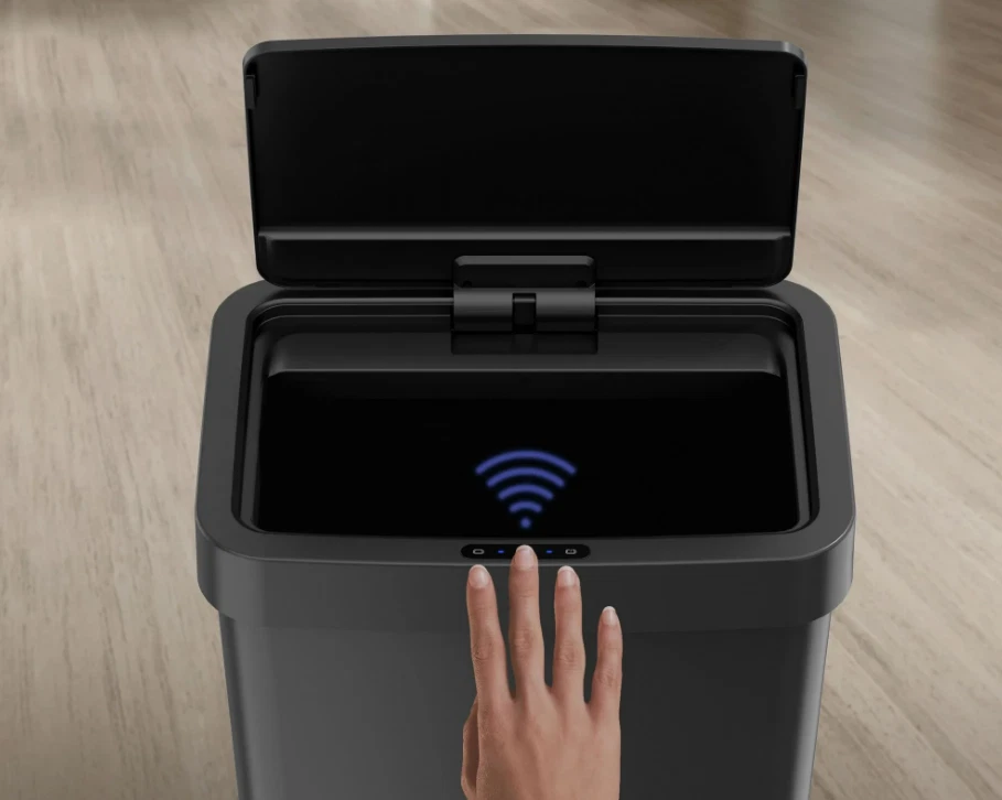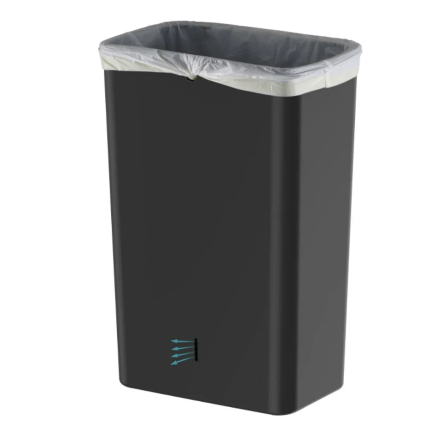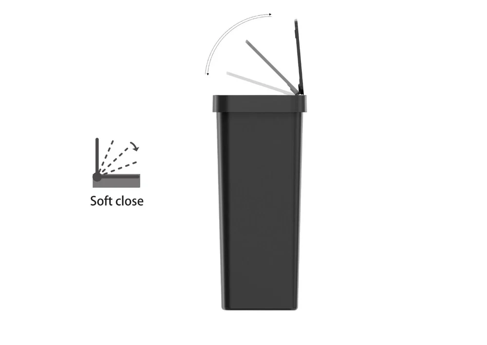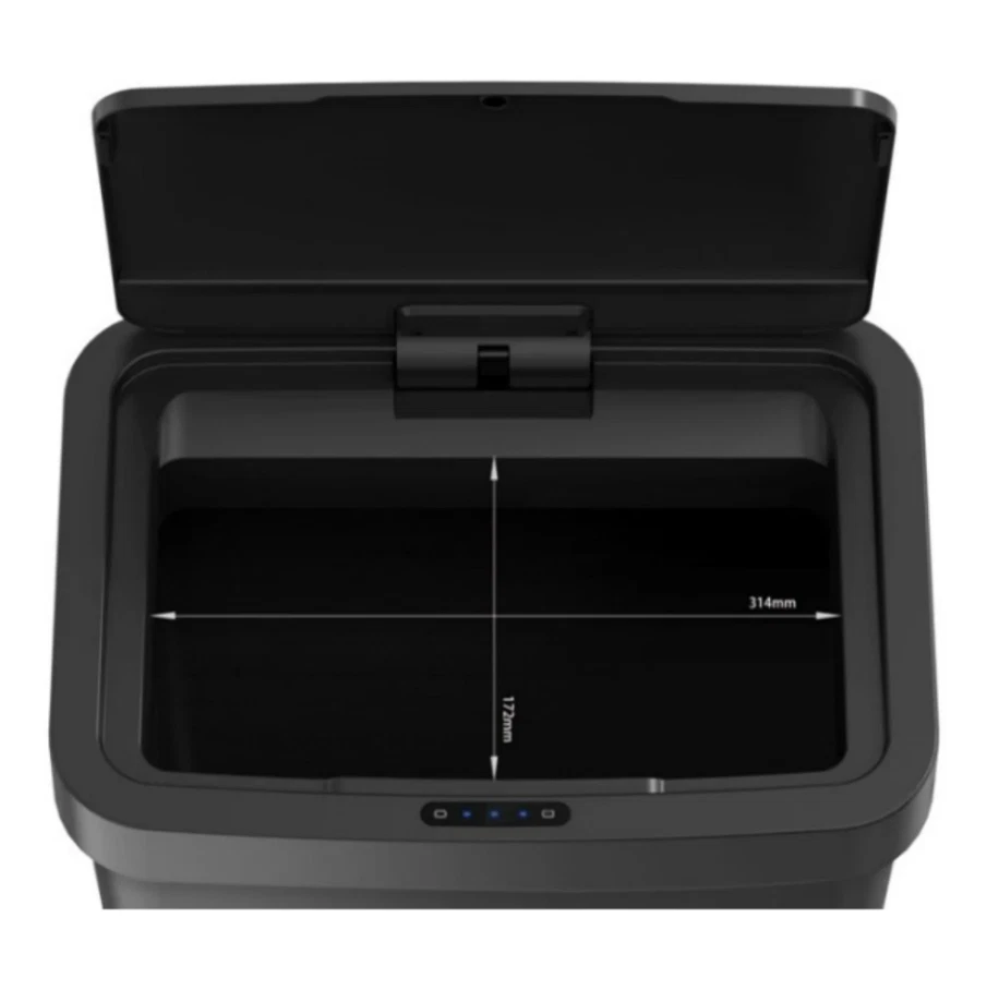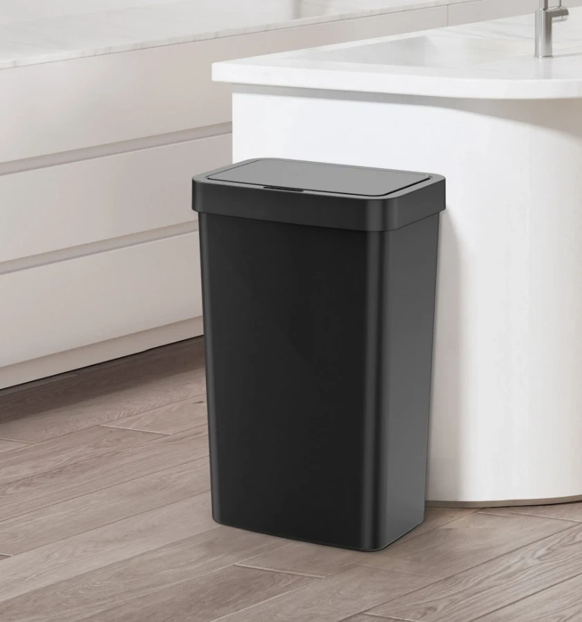 The 13.2 Gallon Plastic Motion Sensor Kitchen Trash Can is perfect for large families or busy environments. The touchless operation allows for improved cleanliness and hygiene, this trash can operates with hands-free motion sensing technology. Simply wave your hand above the sensor at the front of the lid to open it automatically. The creative lighting system counts down to the soft close of the lid for a quiet user experience. Perfectly sized to accommodate any standard 13-gallon trash can liner, this durable plastic resin garbage can also features soft touch buttons for manual operation. The rectangular design and all black finish makes this the ideal garbage can for use in the kitchen, office, laundry room or any other area of the house where you need the convenience of a touchless trash disposal. Motion Sensor Technology: Touch-less motion sensor trash disposal Hands-Free Operation: Uses 4 AA alkaline batteries (not included) Built-In Bag Fixer: Helps secure the trash bag in place Air Vent On Back: Allows easier removal of full trash bags Soft Open & Close: No flying open or slamming shut Manual Option: Soft touch buttons allow user to operate the product manually when desired No Special Orders: Uses standard 13G kitchen trash bags Why You'll Love It: Hands-free convenience at a fantastic price