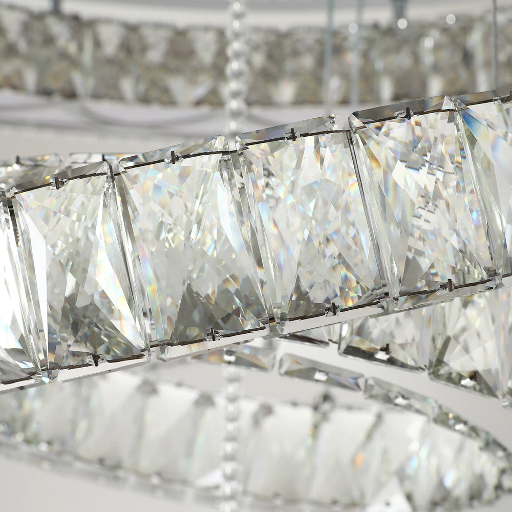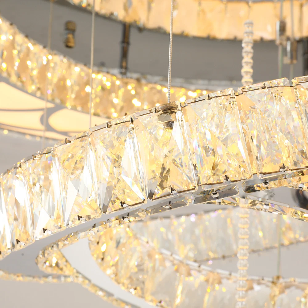 Luxury Crystal Chandelier Silver Staircase Lamp Lobby Villa Lighting Pendant LED