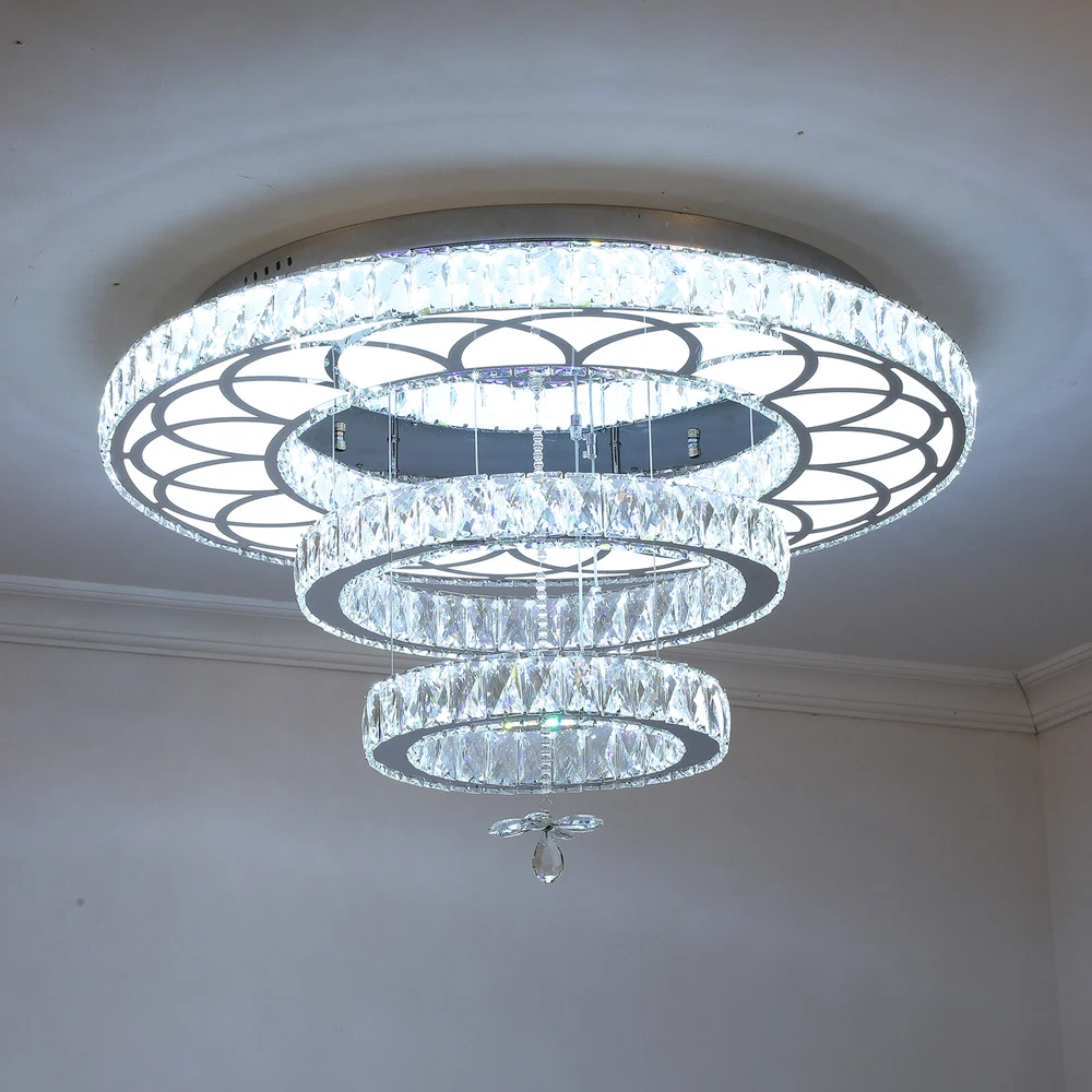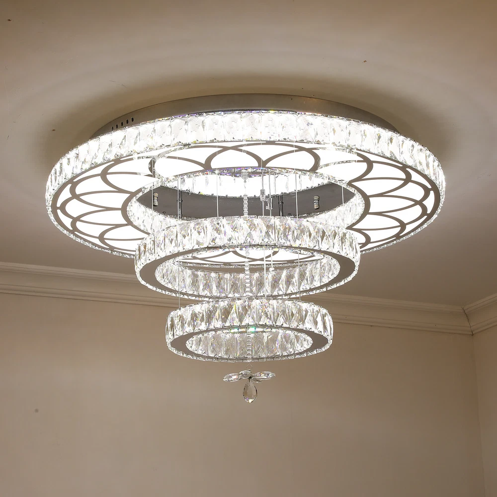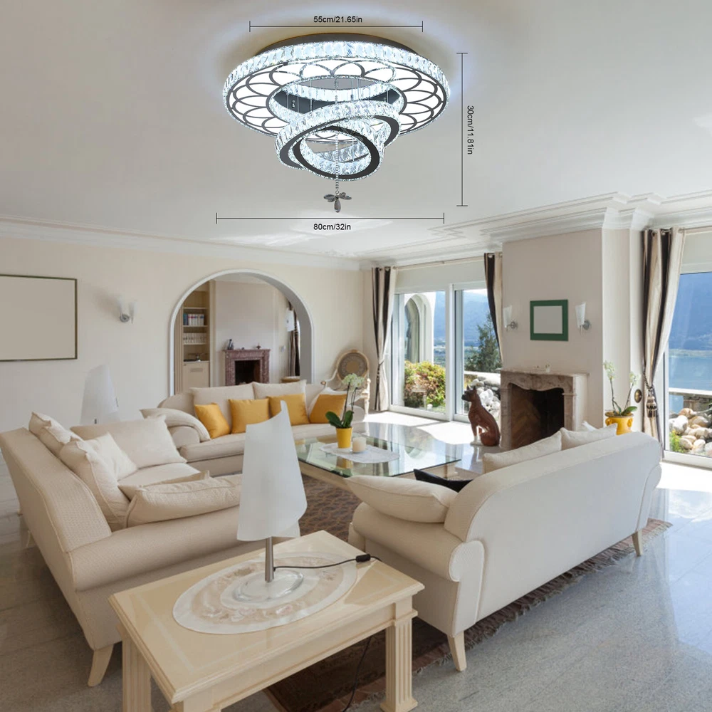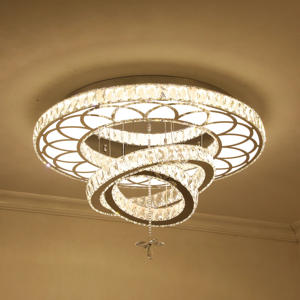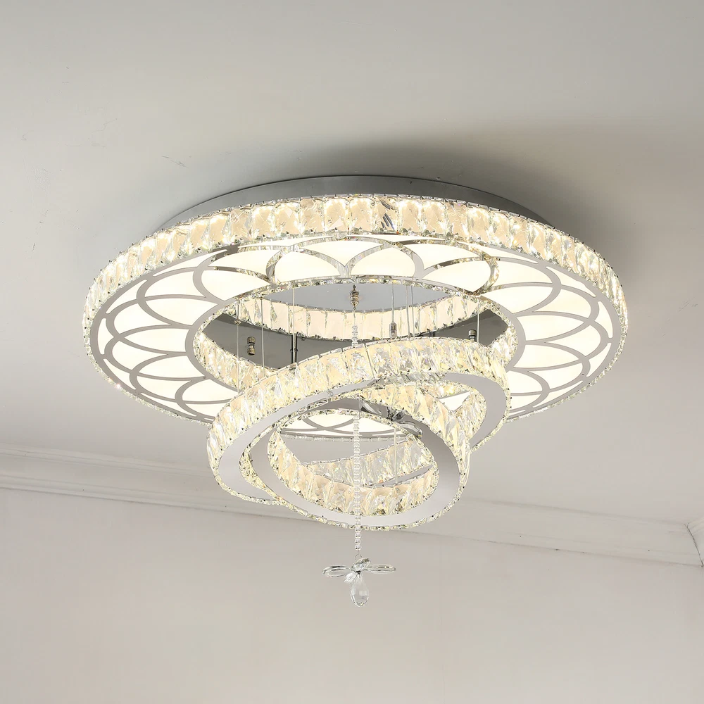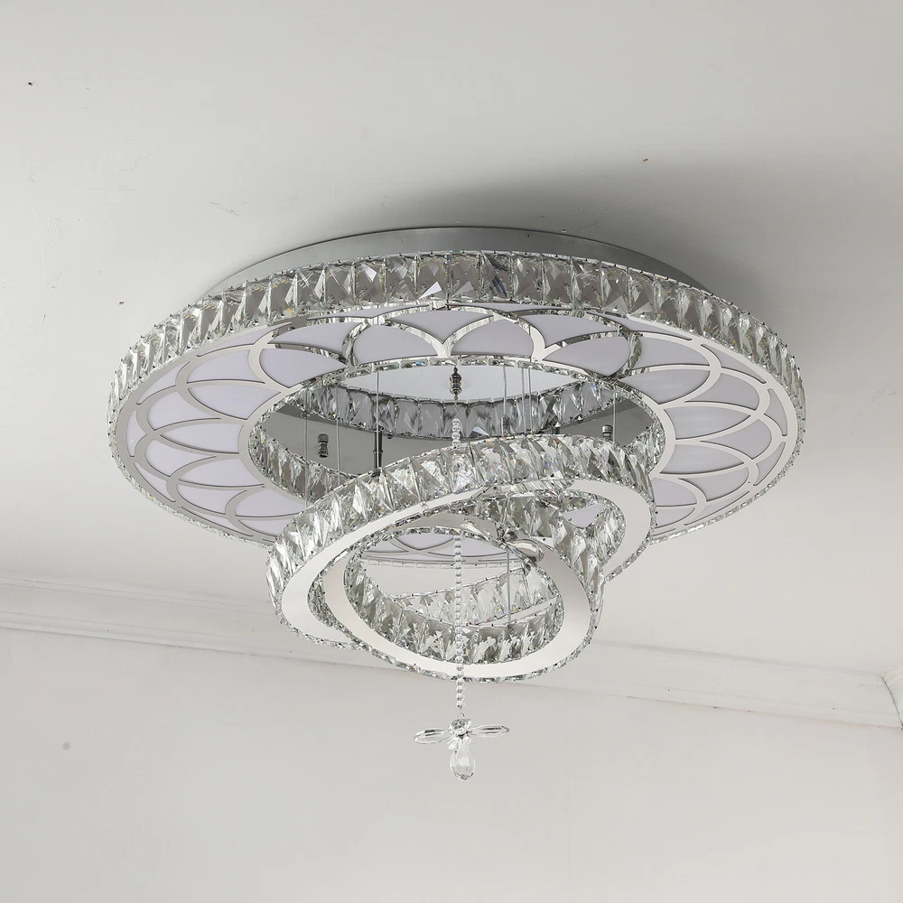 19.68" LED Ceiling Light Crystal Chandelier Modern Flush Mount Light Fixture