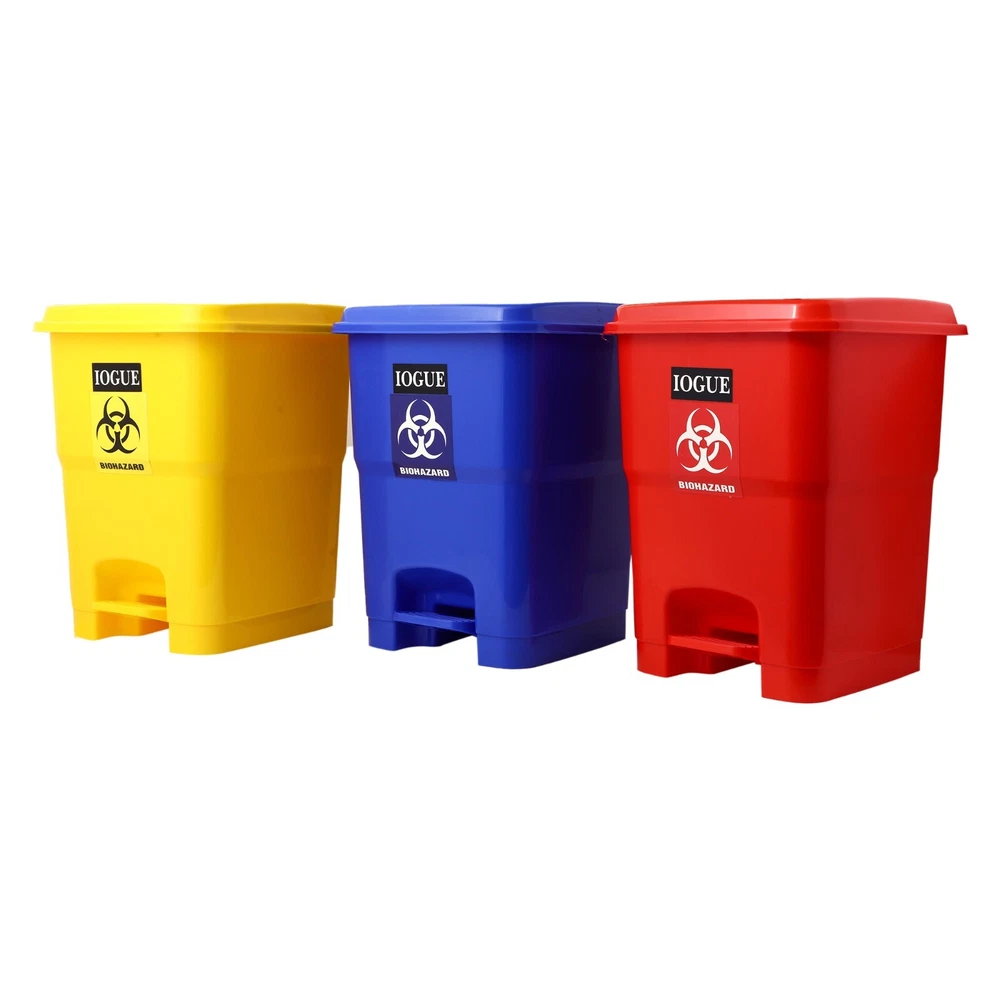 The "32 Litre Bio-medical dustbin pack of 3 Red, Yellow, Blue" by iogue is a set of three medium-sized rectangular plastic dustbins with a multicolor design. Each dustbin has a capacity of 7 gallons and features a removable lid, biodegradability, and handles for easy transport. Suitable for various waste types like general, plastic, paper, food waste, and suitable for indoor and outdoor use, these traditional-style dustbins are ideal for spaces like entryways, kitchens, bathrooms, and more. Made in India, these dustbins are practical, versatile, and designed to efficiently manage waste disposal in different environments.