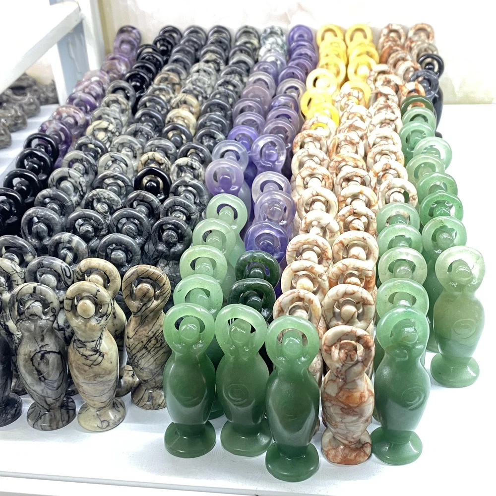 3.2" Natural Aventurine Goddess Totem Skull Quartz Crystal Carved Figurines 1pc
