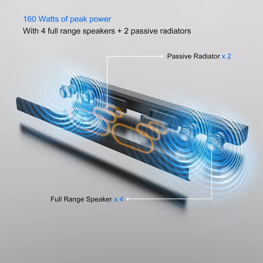 Product details Boost your sound with 160 watts of peak audio from our compact 4-speaker soundbar, the onn. 2.0 Soundbar! Stream your favorite audio from devices with Bluetooth wireless technology, or connect via HDMI cable and setup simply with Roku TV Ready. Blast onn. with our onn. 2.0 Soundbar. We're onn. to something here. We took the hassle out of buying electronics and built a brand that's fresh and simple. With delightful pops of color, finding the right product has never been easier. Say goodbye to stressful decision-making and fear of the electronics aisle. Our mission is simple... to deliver great products and make it easy. Choose onn. and get back to using your brainpower for the important things in life.. like pondering the question, "What should I binge watch this weekend?" 2.0 Soundbar, 32" 4 internal speakers 40 W RMS output / 160 W peak output (RMS x 4) Bluetooth wireless technology streams audio from all your devices Roku TV Ready Connections: 1 HDMI, 1 Optical, 1 AUX (line-in), and 1 USB What’s in the box? 1 Soundbar 32 in (81.3 cm), 1 Power cable 4.6 ft (1.4 m), 1 Remote control (batteries included), 1 HDMI cable 6 ft (1.8 m), 1 3.5 mm AUX cable 6 ft (1.8m), 1 Wall mounting kit, 1 Wall mounting template, and 1 Quick Start Guide On Jan 9, 2025 at 19:22:05 PST, seller added the following information: