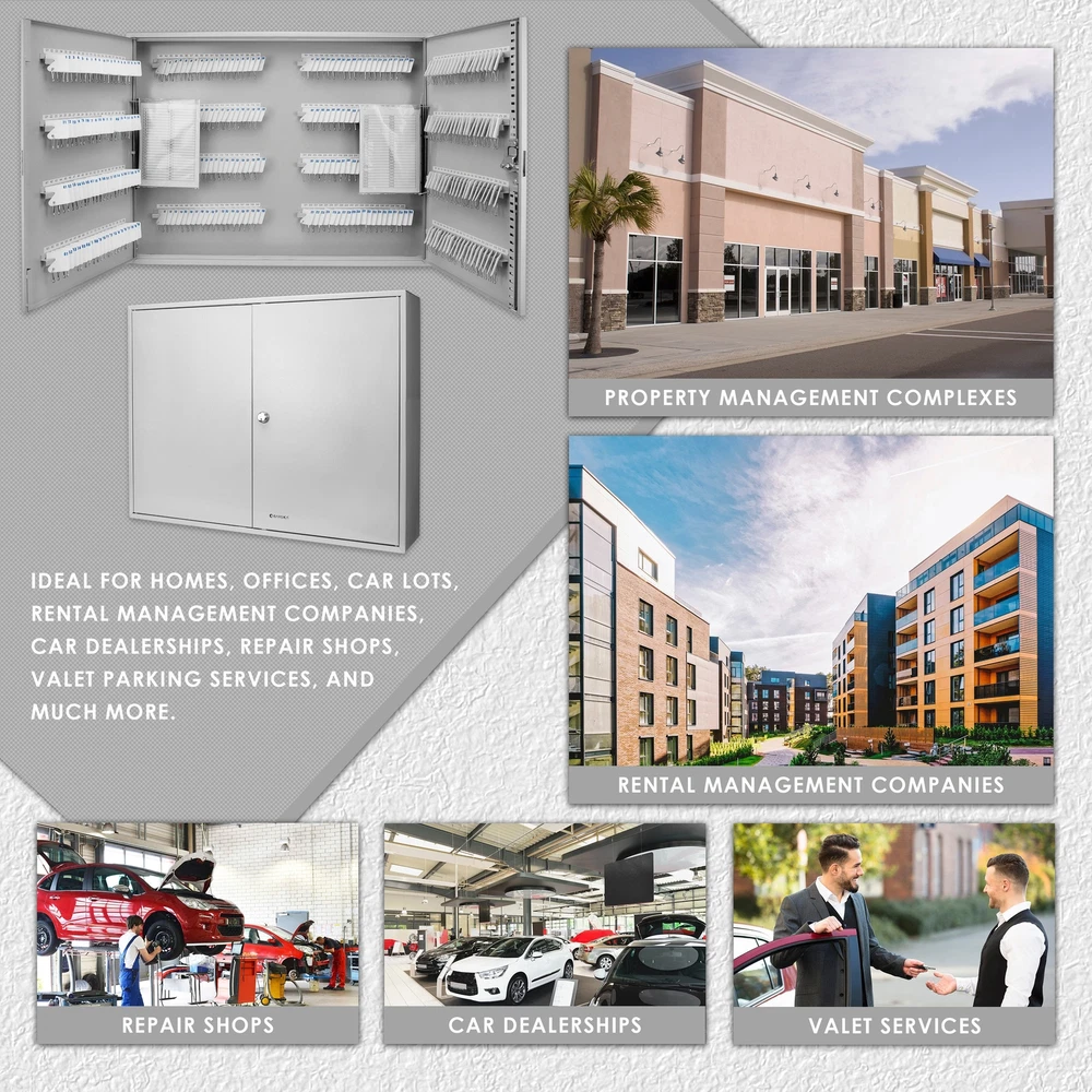 Specifications Place of Origin #originPlace# Main Color Gray Main Material Steel Dangerous Goods #dangerFlag# Dimensions & Weights Assembled Length (in.) 3.25 Assembled Width (in.) 28.75 Assembled Height (in.) 22.00 Weight (lbs) 21.00 Product Features ?✨KEY CABINET - Secure wall mount lock box with lock boxes for flexible key storage. Keep keys organized and easily accessible. ?️?KEY LOCK - Organize and secure up to 320 keys with ease using our key cabinet equipped with a reliable key lock for added protection. ?️?WHITE KEY TAGS - Numbered white key tags enable quick identification, no more fumbling for the right key. Stay organized! ??KEY MANAGEMENT - Efficiently manage and secure keys for various settings like homes, offices, and businesses with the convenience and reliability of a key cabinet. ?️?WALL MOUNT - Comes with mounting hardware for easy installation. Keep keys safe and accessible, hassle-free. Description