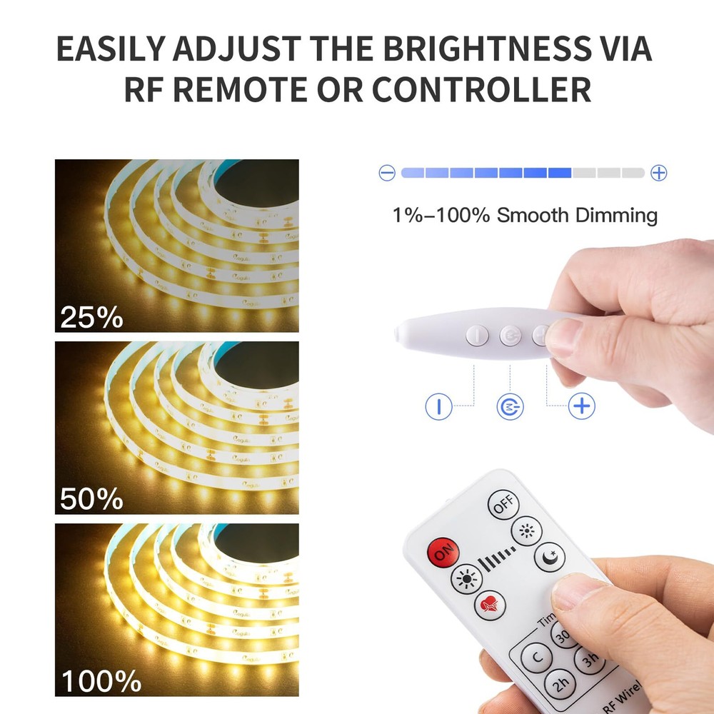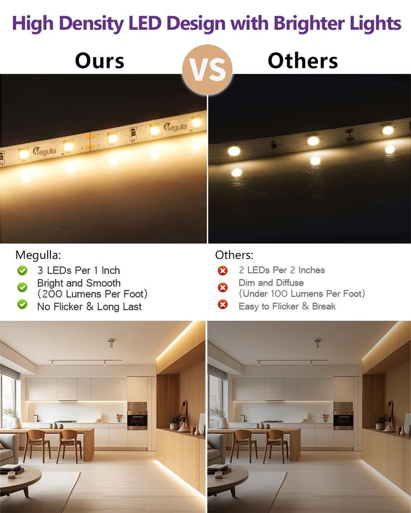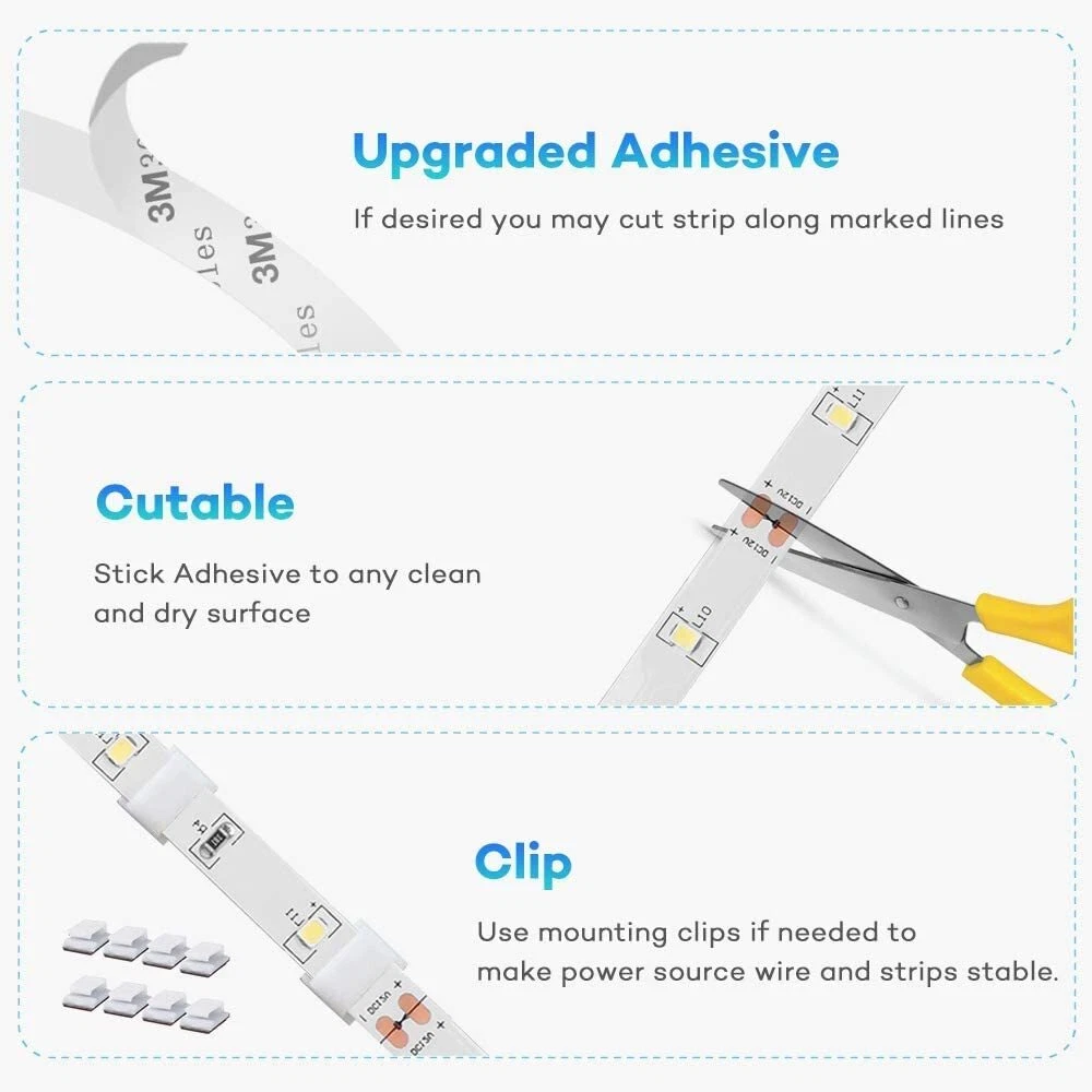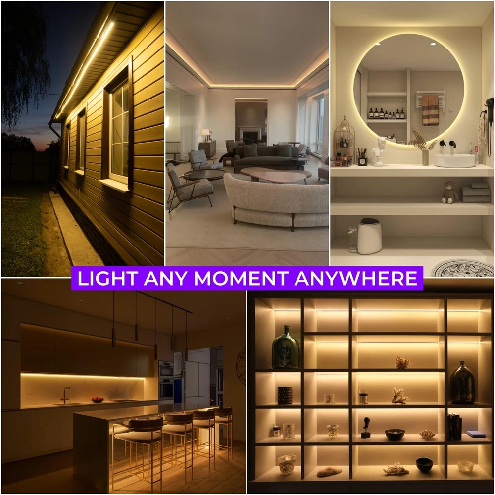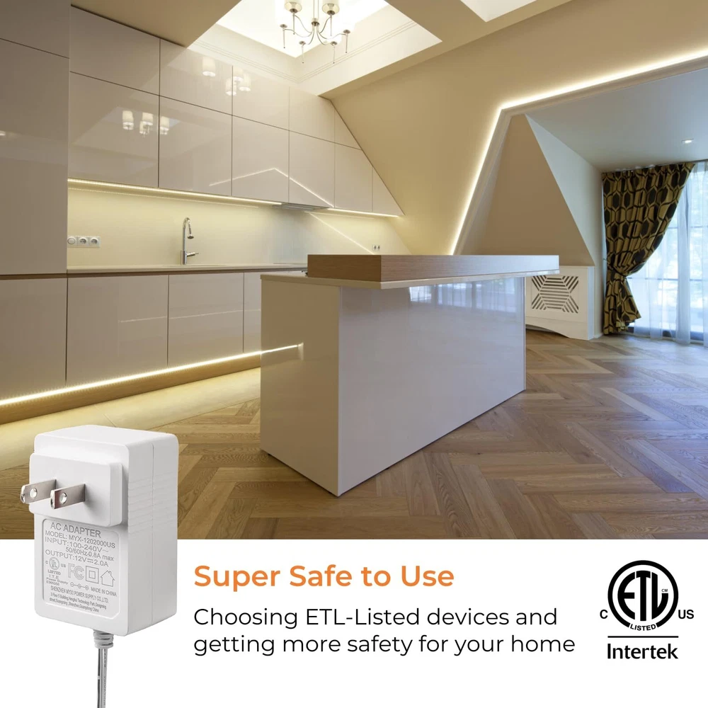 HIGH QUALITY LED STRIP LIGHTS - Designed with double sided PCB 2835 LED lights, more durable and reliable for use with many applications. More than 50000Hours (5 Years) lifespan, these discreet strips feature closely packed LEDs for a smooth, even light without any spotting. UPGRADED LED TAPE ADHESIVE - Compared with other non-high quality LED strip lights, we use high-quality blue strong adhesive backing with heat resistance, strong viscosity and integration. Please contact customer service emails for any LED light strip with adhesive problems. We will accommodate a solution that best fits your projects and needs. SIMPLE AND EASY TO USE - Working for 24V voltage, Rated Power 24W. Please note that the total wattage of the LED strip should not exceed the maximum wattage of the power adapter. Doing so may cause the LED lights to flicker or the Lights to be dim. DIMMABLE and FLEXIBLE - These LED strips are great for a variety of indoor / interior uses including under-cabinet lighting in kitchens, ambient accent lighting in bedrooms, lighting toekicks in bathrooms, or adding a backlighting source to displays, decorations, or book shelves, you are only limited by your imagination. QUALITY ETL-LISTED. Backed by one year from for peace of mind. Contact our customer service team at any time for no-hassle troubleshooting and replacement or for any questions about purchasing or installation. 💡Please note that 3000k warm white led strip light packaging may change without prior notice, but rest assured, our commitment to quality remains constant.