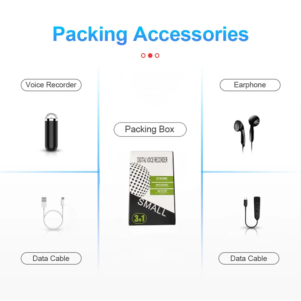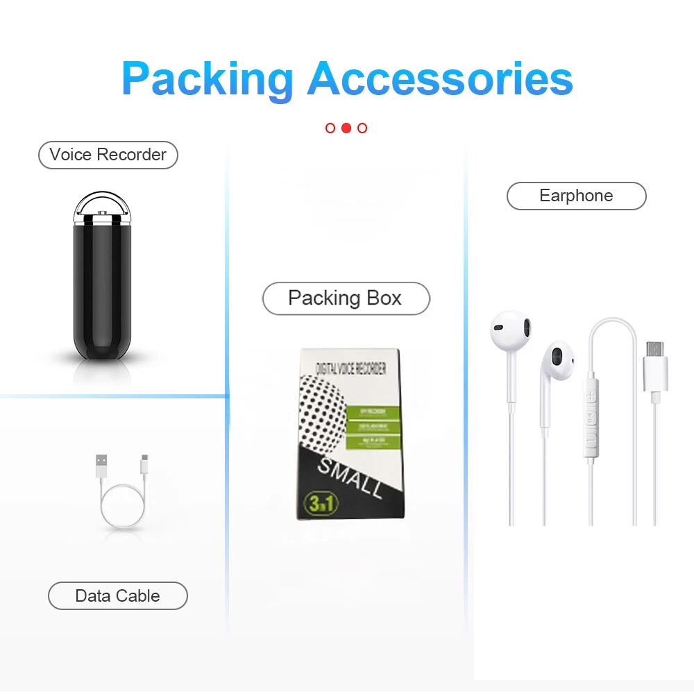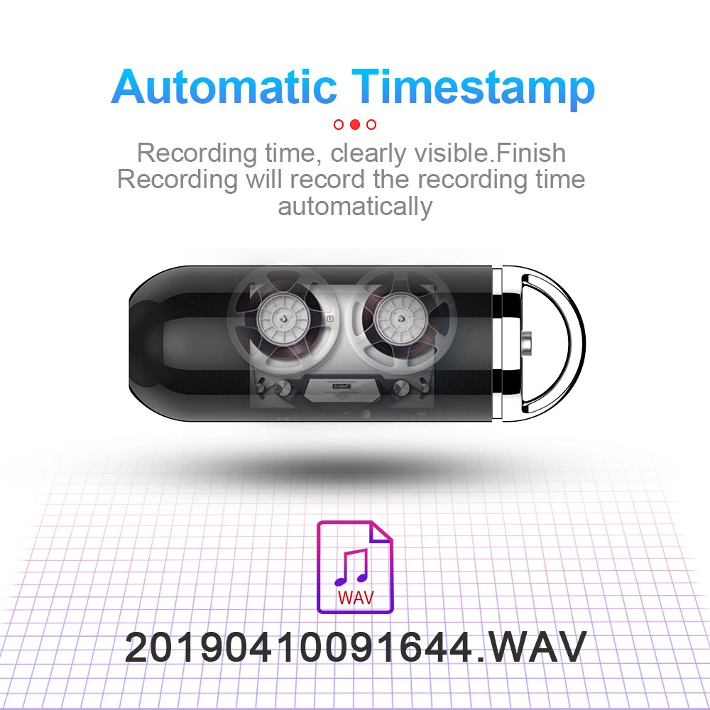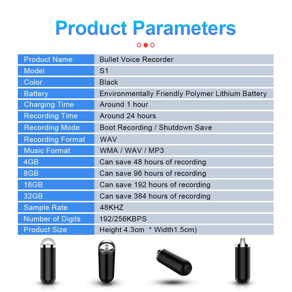 Categories 32G Voice Recorder Necklace Digital Audio Dictaphone Sound Activated Mini MP3 US Description Features: 1. Zinc alloy material+ABS, silver+black, USB direct insertion USB drive. 2. One click recording, no button design, multifunctional operation with wire control, with deletion function, playback LED light indication. 3. ADPCM recording 192Kbit, optional voice control recording 50DB, automatic split recording. 4. Supports MP3, WMA, WAV playback, and fast forward and backward playback. 5. The recording file is named with time, making it convenient for users to search. When the system detects that the battery is low, the recording pen will automatically save the line and then turn off the power to avoid losing important files. Specifications: Model: S1 Color: Black Battery: Environmentally friendly polymer lithium battery Charging time: approximately 1 hour Recording time: around 24 hours Recording mode: start recording/shutdown saving Recording format: WAV Music format: WMA/WAV/MP 3 8GB: can store 96 hours of recordings 16 GB: can store 192 hours of recording 32GB: can store 384 hours of recording Sampling rate: 48KHZ Number of digits: 192/256KBPS Product size: 4.3cm high * 1.5cm wide Memory: 8GB/16GB/32GB optional Hanging rope: not included Packaging list: 1 * Recording machine 1 * Data cable 1 * Earphones 1 * User manual 32G Voice Recorder Necklace Digital Audio Dictaphone Sound Activated Mini MP3 US Description Features: 1. Zinc alloy material+ABS, silver+black, USB direct insertion USB drive. 2. One click recording, no button design, multifunctional operation with wire control, with deletion function, playback LED light indication. 3. ADPCM recording 192Kbit, optional voice control recording 50DB, automatic split recording. 4. Supports MP3, WMA, WAV playback, and fast forward and backward playback. 5. The recording file is named with time, making it convenient for users to search. When the system detects that the battery is low, the recording pen will automatically save the line and then turn off the power to avoid losing important files. Specifications: Model: S1 Color: Black Battery: Environmentally friendly polymer lithium battery Charging time: approximately 1 hour Recording time: around 24 hours Recording mode: start recording/shutdown saving Recording format: WAV Music format: WMA/WAV/MP 3 8GB: can store 96 hours of recordings 16 GB: can store 192 hours of recording 32GB: can store 384 hours of recording Sampling rate: 48KHZ Number of digits: 192/256KBPS Product size: 4.3cm high * 1.5cm wide Memory: 8GB/16GB/32GB optional Hanging rope: not included Packaging list: 1 * Recording machine 1 * Data cable 1 * Earphones 1 * User manual On Jul 23, 2024 at 00:28:52 PDT, seller added the following information: