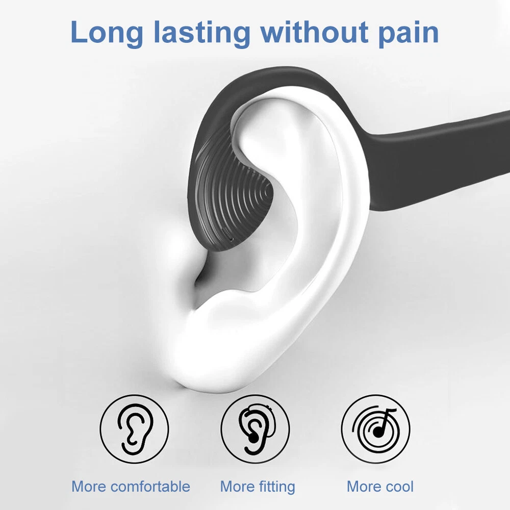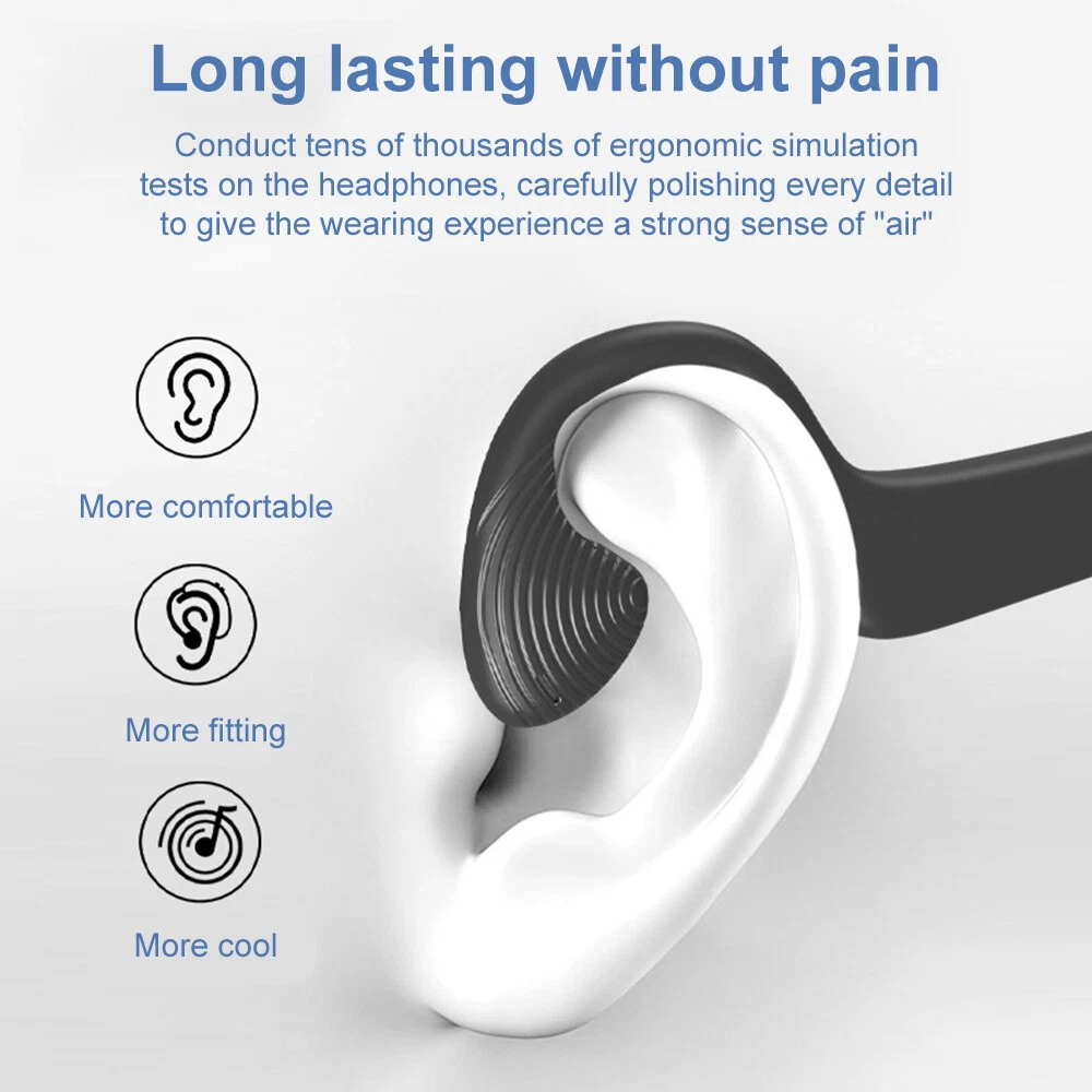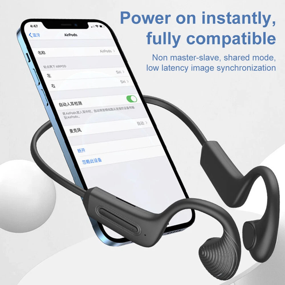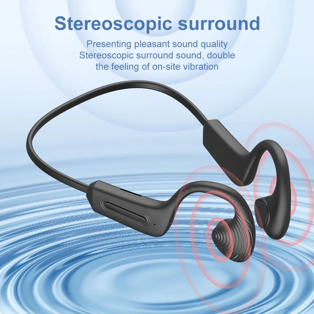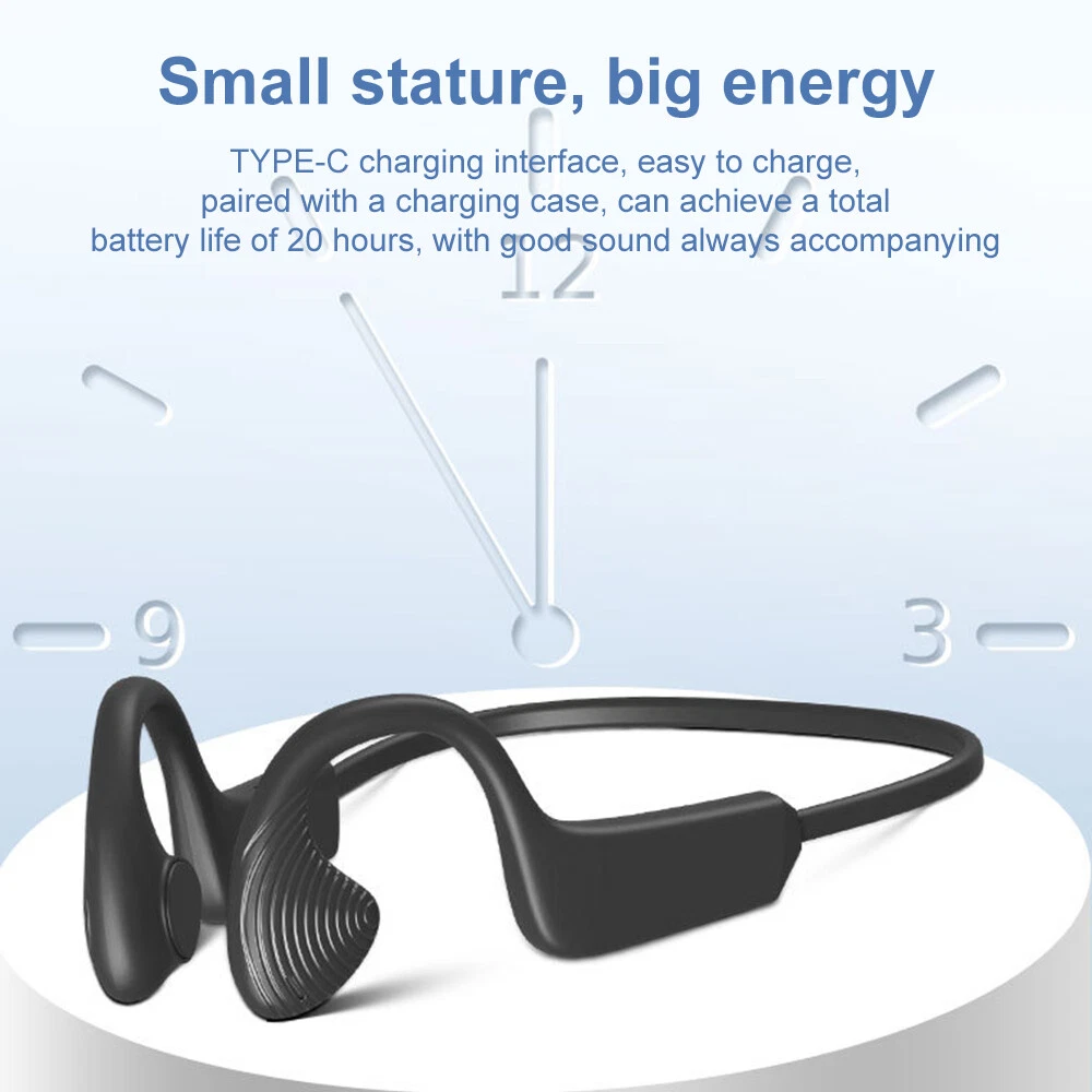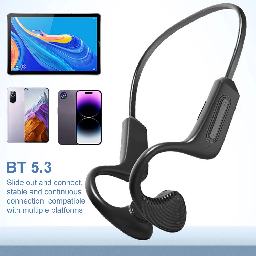 Features: 1. Comfortable and painless to wear for a long time: The earphones have undergone tens of thousands of ergonomic simulation tests, carefully polishing every detail to make the wearing experience full of "air feeling". 2. IPX5 waterproof and sweat proof: not afraid of wind and rain, IPX5 waterproof level, can swim lightly, waterproof and sweat proof, not afraid of rainwater washing and sweating profusely. 3. Comfortable and portable: The lightweight body design eliminates the inner ear type front cavity structure, and the earphones support TF cards, which can be used without connecting a phone or other device. 4. Material tightly adheres to the skin: even if twisted or bent, it will not deform and will continue to fold. 5. Zero latency transmission: Game audio and video synchronization, compatible with various mobile games, achieving high connection speed while also having accurate positioning that can make people feel better. The HIFI sound quality is clear and natural, and the sound quality is more penetrating. 6. Strong Bluetooth compatibility: Any phone, tablet, or computer with Bluetooth can connect and use it through Bluetooth. 7. Restoring HIFI sound effects: Stereoscopic surround sound, presenting pleasant sound quality, can double the vibration of the scene, allowing you to experience every detail in the music. Specifications: Color: Black Bluetooth version: V5.3 Maximum TF card support: 32GB Usage: Neck hanging type Audio channel: Bilateral stereo Speaker: F16 genuine copper ring Material: ABS Battery capacity: 200mA Music playback time: 18H Talk time: 18H Charging compartment input: 5V/500mA (OVP voltage protection) Charging time: 2 hours Charging port of charging compartment: Type-C Usage method: On/Off: Press and hold the pressure button for 3 seconds to turn on, press and hold the pressure button for 5 seconds to turn off Volume reduction: Click the reduce button Volume increase: Click the up button Next song: Long press the volume up button to switch to the next song Long press and hold the down key on the previous song to switch to the previous song Package List: Bone conduction headphones * 1 Type-C cable * 1 32GB card * 1 On Jan 8, 2025 at 01:52:16 PST, seller added the following information: