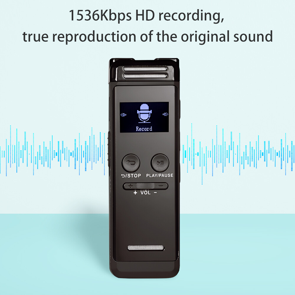 Features: 【High-Quality Recording】 Our N37 Digital Voice Recorder boasts a high recording quality of up to 1536kbps, ensuring clear and crisp audio capture. The built-in 32GB memory provides ample space for all your recording needs, the recorder stores up to 144 hours of recording time at 512kbps. 【User-Friendly Design】 This recorder features a LCD screen for clear display, supports headphone connectivity for private listening, and has an inbuilt speaker for hassle-free playback. It also enables voice-activated recording and segmental recording options (30min/60min/90min/120min) and A-B repeat function,make this voice recorder work best. 【Easy File Transfer & Multilingual Support】 Easily upload and download files or music via USB connection. Plus, with support for 24 system languages, this voice recorder is user-friendly and versatile, making it a great tool for international users. 【Secure & Private】 A unique feature of this digital voice recorder is its password conservation setting, enabling you to keep your recordings confidential. This adds an extra layer of security for your sensitive information. 【Long Battery Life】With its built-in lithium battery, this digital voice recorder offers up to 60 hours of recording time (at 512Kbps) and 40 hours of playback time (when using headphones). This ensures you won't miss a moment, even during long recording sessions. 【Versatile Usage & Comprehensive Package】 Ideal for students, teachers, business professionals and more, this device comes with an earphone cable included in the package. Plus, with its compact size and lightweight design, it's easy to carry around wherever you go. Specification: Model: N37 Shell material: zinc alloy Screen: LCD duplicate display screen Recording format and sampling rate: WMA format (32Kbps-1536Kbps) Recording quality: WAV 512Kbps (default) Supports music playback in multiple formats: MP3, WAV, WMA, OGG, etc Frequency: 24KHz Recording power: 5mA-12mA Support: recording, voice control, clock, scheduled recording, voice and music playback, repeat, password, LIEN-in, low-power save shutdown and other functions Actual maximum output: (L) 9mW + (R) 9mW (32Ohm) External input: Headphones 3.5pie stereo jack Microphone 3.5pie jack USB: PC Interface USB1.1/USB2.0 FULL Speed Built-in speaker output: 800mW Built-in speaker: Dynamic 8ohm, 1W 20mmx30mm Built-in MIC: Omni-directional capacitor MIC S/N (noise ratio): 90dB Power supply method: Rated voltage lithium battery (300MA): 3.4V-4.2V USB input rated voltage/power: 5V300MAH-5V1000MAH Storage: Embedded flash memory 32G Operating temperature: -10℃~50℃ Weight: About 83g (bare metal) Size: 82mmx26.5mmx11mm Battery life: Approximately 60 hours of recording (512Kbps) and 40 hours of playback (plug in headphones to listen) Package Size: 15.5x8x3.8cm/6.1x3.1x1.5in Package Weight: 100g/3.5oz Packing List: 1 x Voice Recorder 1 x Earphone 1 x USB Cable 1x User Manual