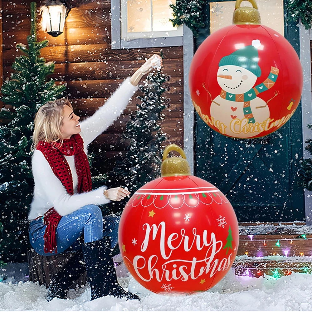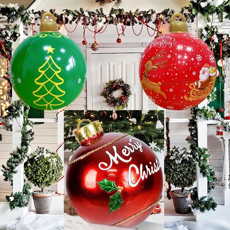 Large Size: you will receive 1 PVC inflatable ornaments in different styles, these outdoor PVC Christmas decoration balls measure about 80 cm/ 32 inches before they are inflated, about 60 cm/ 24 inches after inflated, large enough to attract people's attention from a long distance, making your places full of Christmas breath Holiday LED Lights Display: Adorned with vibrant LED lights, our inflatable santa claus outdoor shines brilliantly day and night. The carefully placed lights create a mesmerizing spectacle, enhancing the festive ambiance and ensuring that Santa remains visible even in winter evenings. Standing tall at 12ft, he's sure to impress and make a statement in your home, yard, garden, office, or hall plaza. Full Accessories for Outdoor Use: Comes with 6 ground stakes and 2 tethers to ensure firm stability in windy conditions. Built-in 2 plastic bags can be filled with water or sand and place at the bottom with a zipper of the christmas decorations for adding weight to make it more secure and stable. Finally, Don't forget to zip up and wait until it's inflated. No need to worry about the christmas blow up yard decorations flying away with the wind! Durable and Self-inflates In Minutes: Our christmas inflatable outdoor decoration are made of high-quality 210T durable thickened polyester PVC waterproof materials with excellent stitching that ensures durability and prevents tearing, whitch make it can withstand various weather conditions and ensure years of usage. In addition, we provide a powerful blower and UL certified adapter to continuously inflate christmas lawn Perfect Gift for Maximum Festivity: Our 12 ft santa inflatable christmas blow up is packed in a beautiful gift box, whitch is a very surprise christmas gift for Children. It's sure to be a hit with your family, friends, and neighbors, and is bound to become a staple in your xmas inflatables for years to come. Now, it's time to create a cheerful and welcoming environment for your family and friends!
