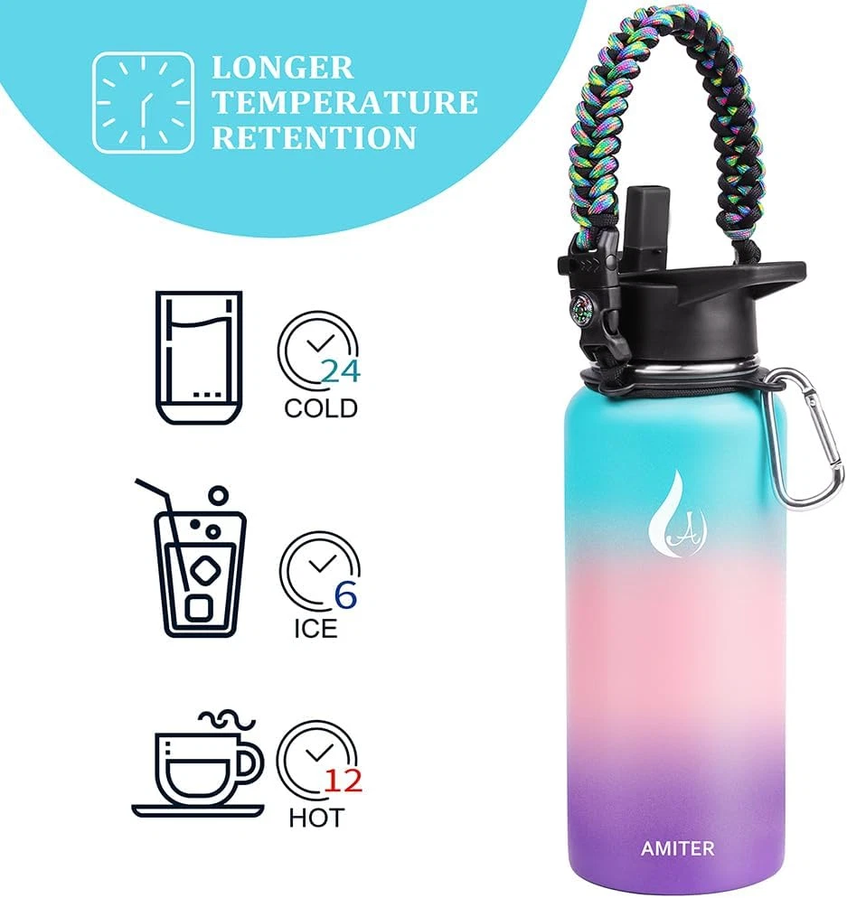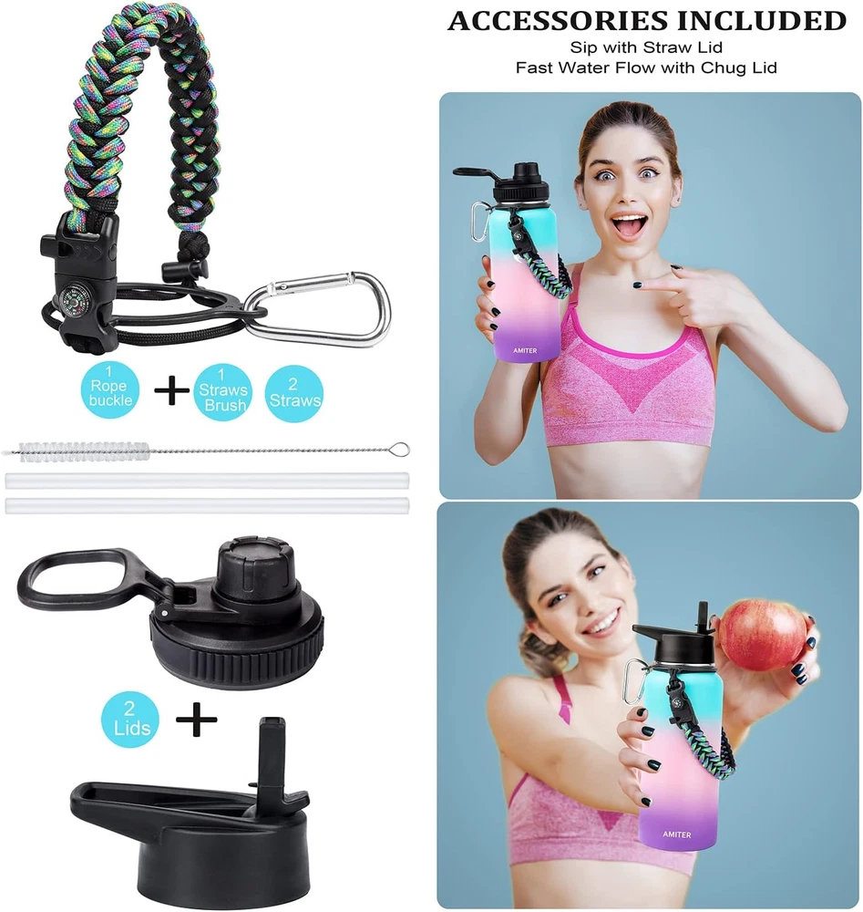 Store New Arrivals Add to Favorite View Feedback Contact 32Oz Insulated Bottle with Straw & Spout Lid, Wide Mouth Stainless Steel Water Bottles with Paracord Handle Description Capacity 2 Pounds Number of Items 1 Color Hydrangea Pattern Modern Material Stainless Steel Item Weight 2 pounds Cap Type Straw Cap Theme Sport With Lid Yes Age Range (Description) Adult Recommended Uses For Product Water Included Components Lid Special Feature Cold 24 Hours, Leakproof, Double Wall Product Dimensions 3.5"W x 9"H Product Care Instructions Hand Wash Only 【2 Lids Included】It comes with 2 compatible and leakproof lids to fit your every need. One spout lid with screw cap allows for fast water flow when you're feeling the burn. Another straw lid allows you to enjoy spill-proof sipping without efforts. They allow easy one-handed or hands-free drinking even when you're busy. Perfect for any indoor and outdoor activities. 【Valuable Paracord Handle】We have equipped this water bottle with 1 paracord handle combined with several gadgets includes compass, flint, whistle, carabiner and military grade paracord, which allowing you to enjoy the ultimate convenience and fashion while obtaining high-quality insulated water bottles! 【Double Vacuum Insulation】Perfectly designed with vacuum sealed and double wall insulation technology, AMITER water bottle will keep your beverages iced for 6 hours, cold for 24 hours, and hot for 12 hours with fresh taste. 【Premium Stainless Steel】Made of food grade 18/8 stainless steel that is 100% BPA free and non toxic, this insulated bottle is fully resistant to oxidation and rust , never leave a metal taste which is more durable and lasting. And the wide-mouth design is easy to clean and fill with ice cubes. 【Great Gift Choice】Vibrant colors designed makes it an ideal gift for your beloved ones. WHAT YOU GET: 1 x 32oz Water Bottle, 1 x Spout Lid, 1 x Straw Lid, 2 x Straw, 1 x Straw Brush, 1 x Gift Box. Product Description AMITER Water Bottle with Straw & Handle (22oz, 32oz, 40oz, 64oz, 128oz), Vacuum 18/8 Insulated Stainless Steel Sport Water Bottles Leakproof AMITER is committed to designing more convenient and humanized vacuum insulated water bottle to provide more available designs, sizes, colors for you to choose from. Package Includes: 1 x AMITER Water Bottle 1 x Spout Lid 1 x Straw Lid 2 x Straw 1 x Straw Brush 1 x Gift Box ABOUT US We offer the best prices around on high quality products. Our E-store includes media such as books, movies, music and games while offering electronics, toys, sporting apparel, clothing, tools, general home, garden items and more. SHIPPING We are always working hard to ensure your package arrives as soon as possible. Please understand that some factors like weather, high postal traffic, and the performance of shipping companies are outside of our control. We offer free shipping to the lower 48 states and ship within 2 business days of payment, usually sooner. We do not accept P.O. Boxes. Please provide a physical address. For shipping outside of the continental USA, we only use eBay's Global Shipping Program.The item is shipped to KY and then sent to the rest of the world. International customers are responsible for all duties and taxes. Continue to check out in order to calculate costs for shipping the item to your country. Messages regarding eBay's Global Shipping Program MUST be directed at eBay EXCLUSIVELY. RETURNS We offer a 30-Day Return Policy on items which you are not completely satisfied with. You have the option for a full-refund or an exchange of the item. No returns are available on items shipped outside of the USA. PAYMENT We accept PayPal. CONTACT US This page content is yet to come Please ad us to your favorite seller and visit again later Thank You CUSTOMER SATISFACTION We try our very best to make sure every customer is completely satisfied. If there's a problem, message us! We're happy to help. WE ACCEPT Copyright © 2021 AutoDS. | All Rights Reserved