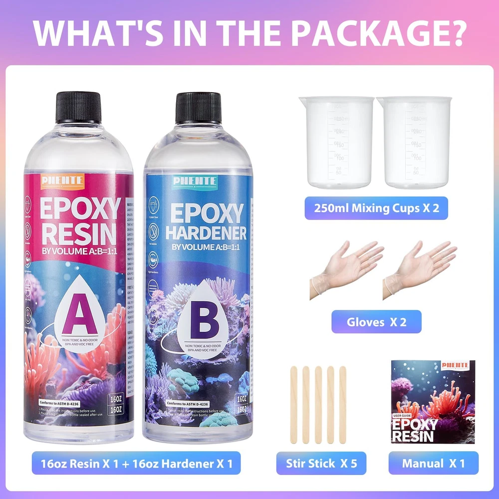 32oz Epoxy Resin Kit – Self-Leveling, Zero Bubbles & 5-Year UV Guard for River Tables, Jewelry, Resin Art – Beginner-Friendly 1:1 Mix, Non-Toxic & Non-Yellowing (2X 16oz) Crystal Clear High Gloss Epoxy Resin – Professional-Grade Finish with Exceptional Strength, Durability, and UV Resistance. Perfect for Artistic Creations, Providing a Stunning Bubble-Free, Long-Lasting, and Non-Yellowing Finish Self-Levelling & Bubble-Free Epoxy Resin – Premium, Professional-Grade Formula for a Glass-Like Finish epoxy resins are expertly formulated to be self-levelling and self-degassing, ensuring a smooth, high-gloss, crystal-clear surface every time. No more worrying about air bubbles – our premium formula significantly reduces bubbles, leaving you with a flawless, glass-like finish that is both clear and durable. For the best results, apply each layer no thicker than 1/4 inch to achieve optimal smoothness and clarity Fast Curing & Safe to Use Epoxy Resin – UV-Resistant, Non-Toxic, Low-Odor Formula for Artists & Crafters Epoxy Resin offers a fast curing time of 30-40 minutes at room temperature (75℉-85℉), allowing you to complete your stunning artwork in just 8 hours. Whether you're a first-time creator or a professional artist, this UV-resistant, non-toxic, and low-odor epoxy ensures that your projects stay vibrant, yellowing-free, and durable for years. Perfect for a wide range of applications, including coating, molds, jewelry, crafts, woodwork, countertops, and much more Epoxy Resin for DIY Crafts & Gifts – Easy to Use, Beginner-Friendly for Stunning Projects Epoxy Resin is perfect for DIY crafters and beginners. Create beautiful, customized projects including furniture decorations, jewelry, earrings, pendants, key rings, and more. Whether you're making thoughtful gifts for birthdays, Christmas, or New Year, this versatile resin allows you to bring your creative ideas to life. Safe, simple, and ideal for crafting memorable gifts for friends and family Why Choose Us? With years of experience in developing and selling high-quality epoxy resins, we are committed to delivering reliable products for your crafting needs. To ensure the best results and avoid common issues like curing problems, we recommend carefully reading the instructions and performing a small test before starting your project. If you encounter any issues such as leaks, missing items, or usage concerns, don’t hesitate to reach out. Our dedicated support team is here to assist you and ensure your complete satisfaction Eposy resin kit Shipping We offer FREE shipping on all orders! We ship within Three business days of payment, usually sooner. We use a selection of shipping services such as UPS, FedEx, USPS etc. We only ship to the lower 48 states, no APO/FPO addresses or PO Boxes allowed. Local pickups and combined shipping options are not provided at this time. Return You can return a product for up to 30 days from the date you purchased it. Any product you return must be in the same condition you received it and in the original packaging. Please keep the receipt. Payment We accept payment by any of the following methods: PayPal Please pay as soon as possible after winning an auction, as that will allow us to post your item to you sooner! Feedback Customer satisfaction is very important to us. If you have any problem with your order, please contact us and we will do our best to make you satisfied. Contact Us If you have any queries, please contact us via ebay. We usually respond within 24 hours on weekdays. Please visit our eBay store to check out other items for sale! Thank you for shopping at our store.
