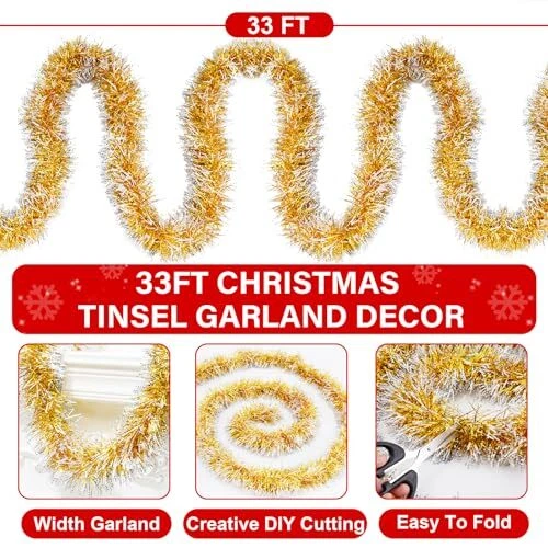 Return Policy Fast Delivery Trusted seller 33Ft Christmas Garland,Gold Christmas Tinsel Garland Christmas Metallic Twist Garland Ceiling Hanging Christmas Garland for Indoor Outdoor Xmas Tree Stair Fireplace Party Christmas Decor Product Description ?【Value Christmas Garland】 Gold Christmas Tinsel Garland package includes 1 piece of long, festive tinsel garland. The metallic tinsel twist measures 33 feet in length, providing ample length for your holiday home decoration needs or or adding sparkle to any indoor or outdoor Christmas space. ?【Shimmery Sparkling Tinsel 】Christmas Tinsel Garland serves as a bright metallic tinsel with a reflective coating on the end for a luxurious shine, giving it a shiny and sparkling appearance. It's perfect for infusing a romantic festive atmosp and joy into your party! ?【Easy to Decor】Gold Christmas Tree Garland is thick and long enough to drape your large Christmas tree from top to bottom.Christmas Tinsel garland design is suitable for all occasions, with the width helping to fill spaces between the branches.Pairing it with lights is always a great choice, adding a more festive and joyful atmosp to your event! ❄【Creative DIY Cutting】Christmas Tinsel Garland include a soft, bendable wire inside, making them resistant to breakage and allowing you to shape them as you desire for your DIY Christmas tree decorations and more. IP44 waterproof, lightweight and easy to fold for storage and reuse. ? 【Ideal for Christmas Decor & Gifts】Perfect for hanging on the Christmas tree, door, window, table, stairs, wall, and suitable for any indoor and outdoor Christmas holiday decorations. Silver Christmas tinsel garland is ideal for Christmas parties, weddings, birthdays, celebrations, and other events. It can also be used as a Christmas gift or as ribbons to wrap presents. Shipping Returns Payment Shipping Shipping is FREE to all addresses other than APO/PO boxes in the lower 48 states. All our stock ships from US-based warehouses. Shipped via USPS or UPS (depending on location and package weight) Unless stated otherwise, all orders will ship within 24-72 hours of your payment being processed. Check our feedback to see the great reviews of FAST shipping we offer. Returns Seller does not accept returns Payment We currently accept payment via eBay managed payments only. Once payment is cleared, we will dispatch your shipment within 1-3 business days. Please refer to the "Shipping" tab for more information regarding shipping speed to your destination.