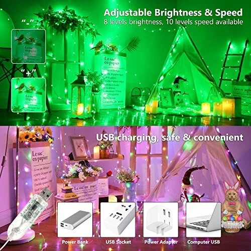 Return Policy Fast Delivery Trusted seller Christmas Fairy String Lights, 33ft 100 LED Color Changing Christmas Fairy Lights with Remote Timer, USB Rainbow Christmas Lights RGB Twinkle Xmas Tree Light for Xmas Halloween Party Wedding Product Description Unique Designed to Make RGB Colors Steady on or Dynamic: All the static colors ( including single color, dual colors, triple colors, and multicolors like red, purple&orange, red green&white, and multicolor ), can be set to dynamic effect with the built-in 8 lighting modes. Others' built-in modes are preset colors. Just select the color and the lighting mode to make the color function as you want. Unique Holiday Button Colors Meet Various Festivals' Needs: This fairy lamp has multiple unique holiday buttons. Kinds of mixed colors for various festivals including multicolor for Christmas, purple& orange for Halloween, red& green for Christmas, red& white for Christmas, red, white& blue for July 4th, pastel for Easter, red& green& Light purple mixed colors. Meeting your year-round needs and creating a unique festive atmosp. Stylish Rainbow Christmas Fairy Lights: Experience the unique rainbow mode that adds a captivating burst of color to any space, smoothly shifting hues to enhance your environment's aesthetic. These rainbow fairy lights offer a stylish touch for parties, special events, or cozy nights, making them perfect for festive celebrations or creating a relaxing atmosp. Embrace the magic of rainbow modes and transform your space into a dazzling display of light and color! Music Christmas Lights: T are 2 music modes available. Select the music mode you want and play your favorite music, then the lights will sync with the rhythms and dance with the beat. Elevate your gatherings or parties with music synchronization, as the lights pulse and dance in harmony with your favorite tunes, creating an immersive audio-visual experience. Different Timer Options & Memory Function: Color changing string lights have a memory function, no need to repeat settings. Set "4H" "6H"& “8H” by remote, the Christmas fairy lights will be automatically on for 4/6/8 hours and off for 20/18/16 hours per day. Press the "Time OFF", and the timer will be canceled.【Note】While the timer is activated, the blue indicator light inside the USB will be on; while the timer is canceled, the blue indicator light is off. Multiple Modes, Pause/Play & Auto Button: The Xmas tree fairy light has 350+ modes to select. Press the forward/backward buttons, Auto button & 8 mode shortcut keys, you can choose the modes conveniently. Press the pause/play button. Any dynamic of the lights will be in the present color and mode. Press again, and the fairy lights will continue to play. You can choose any moment you like and run it. Speed & Brightness Adjustable: Hundreds of modes. 8 levels brightness and 10 levels speed. Color is steady on adjusting brightness, dynamic modes adjust speed【Note】The "W" key is cool white. Among the 16 single colors, in addition to the three primary colors- red, green & blue, other colors will change to varying degrees with the adjustment of brightness. Shipping Returns Payment Shipping Shipping is FREE to all addresses other than APO/PO boxes in the lower 48 states. All our stock ships from US-based warehouses. Shipped via USPS or UPS (depending on location and package weight) Unless stated otherwise, all orders will ship within 24-72 hours of your payment being processed. Check our feedback to see the great reviews of FAST shipping we offer. Returns Seller does not accept returns Payment We currently accept payment via eBay managed payments only. Once payment is cleared, we will dispatch your shipment within 1-3 business days. Please refer to the "Shipping" tab for more information regarding shipping speed to your destination.