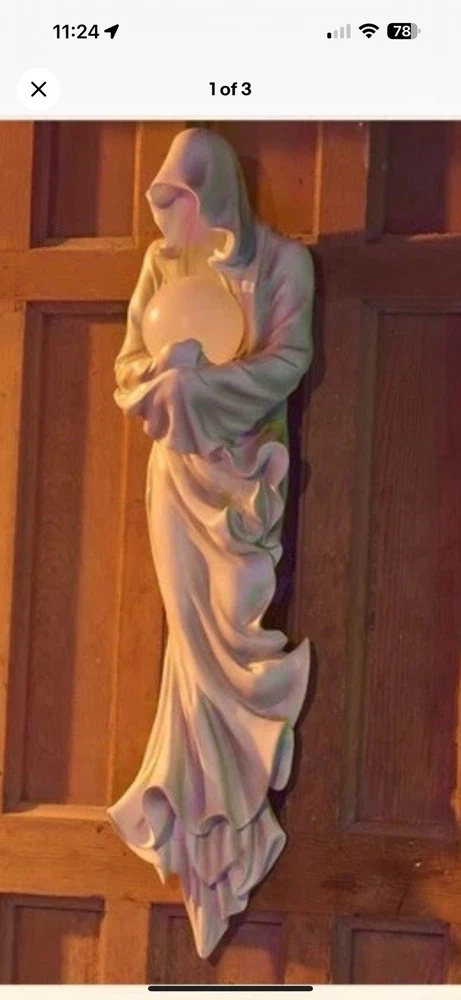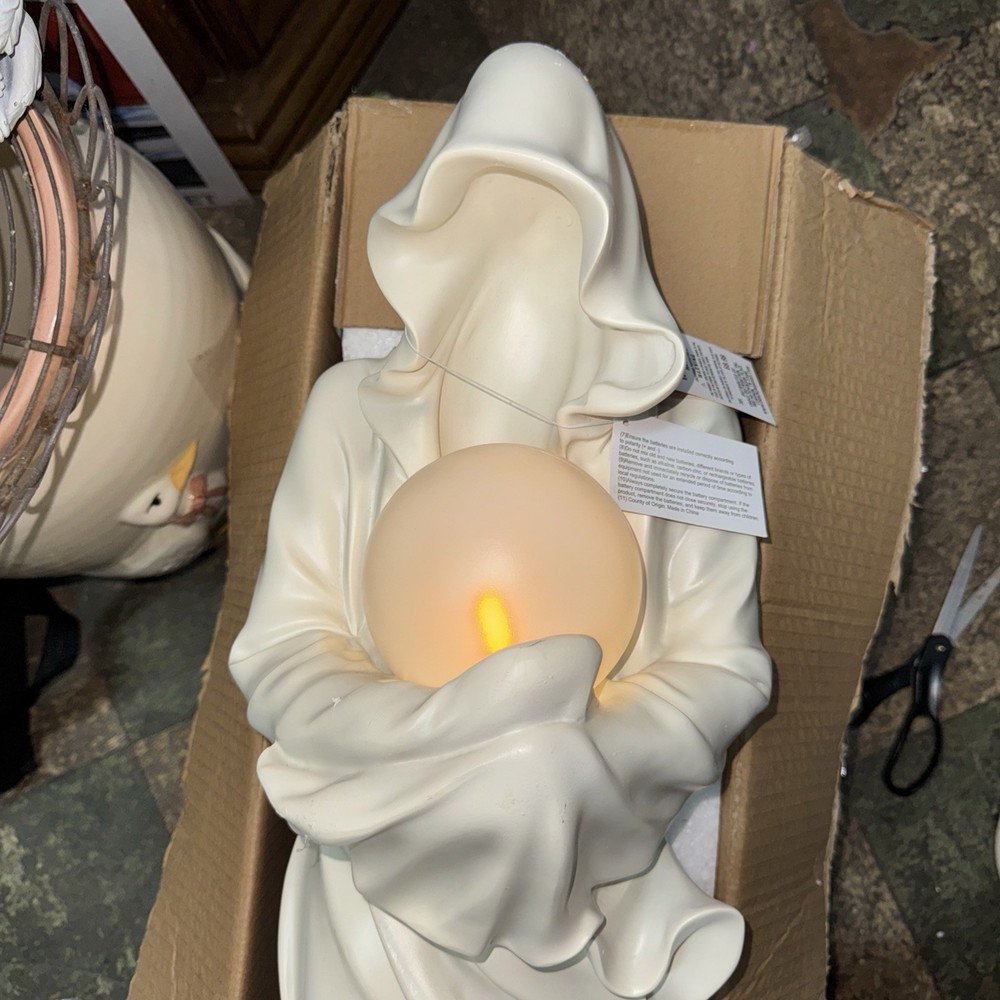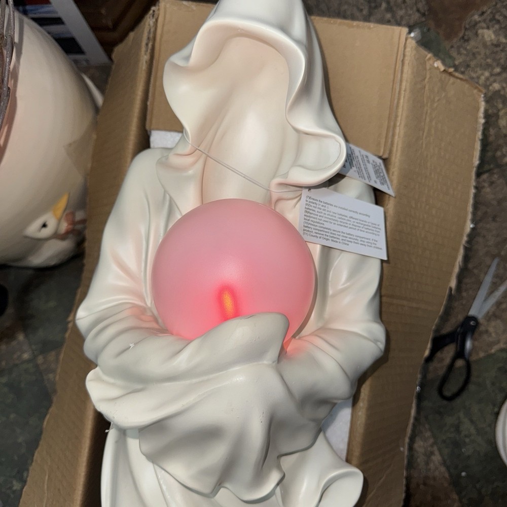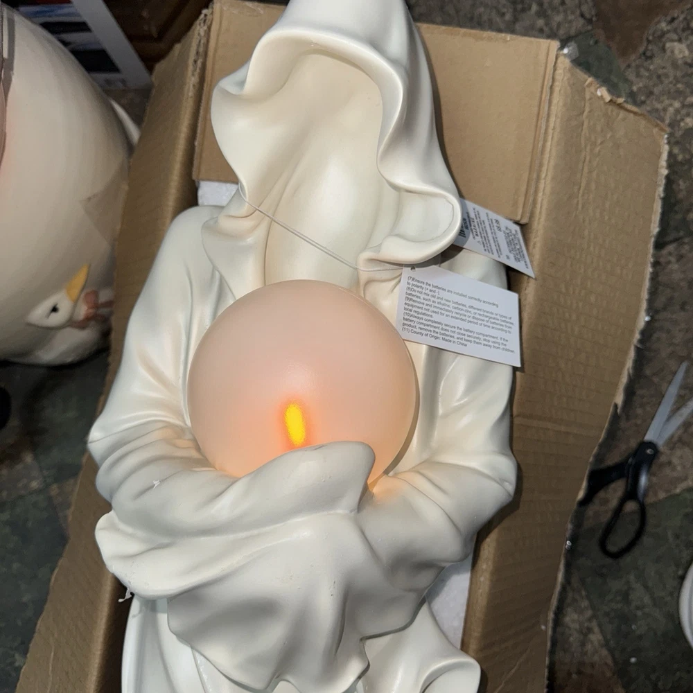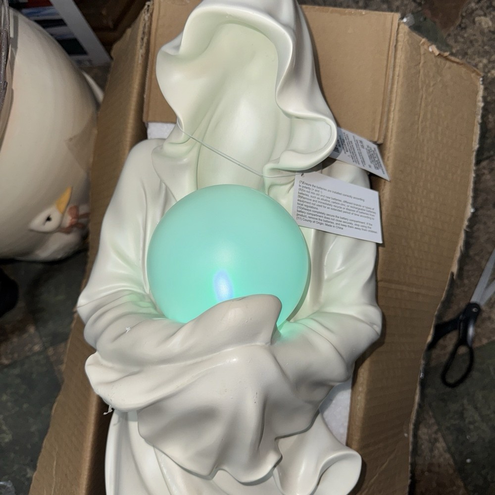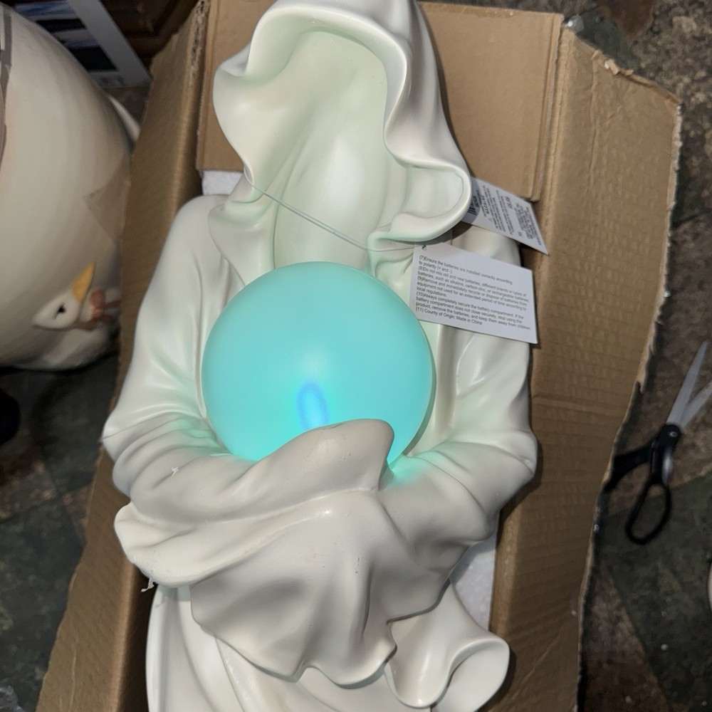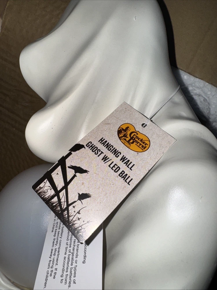 NEW!!!! FOR SALE NEW This Large Hanging Wall Ghost with LED Ball is a great addition to your Halloween home decorations. Genuine Cracker Barrel exclusive. Sold Out Online. Featuring ghost holding light up glowing orb , color changing orb. Uses x3 AA batteries (not included) DIMENSIONS 8.5" x 6.1" x 32.25" New **made from plastic resin which has some imperfections. This is normal on all resin items**