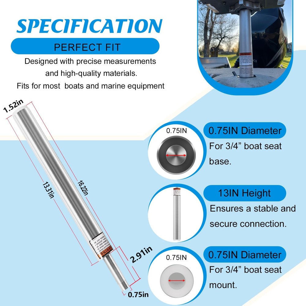 3/4" Boat Seat Pedestal Post Heavy-Duty Marine-Grade Locking Pin #SP-2134(13IN) Features: Extremely Versatile: This SP-2134 Lock-in Boat Seat Pin Post features with 13" height, 1.5" exterior diameter, fits all 3/4 inch pin-type bases and most standard 7" x 7" marine boat seats base pedestal mount, such as Pontoon Boats, Bass Boats, Fishing Boats, Cruising Boats, Travelling Boats, Jon Boats, Round Boats, Deck, Dock, etc. It can be also combined with other boat seats and bases to meet you boating requirements. Jaga-tools In Search of Excellence! 3/4" Boat Seat Pedestal Post Heavy-Duty Marine-Grade Locking Pin #SP-2134(13IN) 3/4" Boat Seat Pedestal Post Heavy-Duty Marine-Grade Locking Pin #SP-2134(13IN) Features: Extremely Versatile: This SP-2134 Lock-in Boat Seat Pin Post features with 13" height, 1.5" exterior diameter, fits all 3/4 inch pin-type bases and most standard 7" x 7" marine boat seats base pedestal mount, such as Pontoon Boats, Bass Boats, Fishing Boats, Cruising Boats, Travelling Boats, Jon Boats, Round Boats, Deck, Dock, etc. It can be also combined with other boat seats and bases to meet you boating requirements. High Performance: This 3/4" boat seat mount pole perfectly fits in mounting holes and boat seat extension post pole, specially designed to add new seats and replace the existing seat system, helps you easily install additional boat seating, also perfectly replace the old boat seat pedestal pole in boat seats, providing you with an optimal boating seating solution for the best use of your boat. Optimal Design: Features Slotted Design and Smooth 360 Degree Swivel with good load bearing capacity and perfect fit holes, prevents accidental detachment and separation for boat seat pedestal mount, 3/4" boat seat extension post and base. The non-threaded steel pin use 3/4" pin-type mounting and tight fit nylon bushing for secure installation. Comfort and Convenient: This Lock-in Boat Seat Extension Post Pin Pole offers ideal seat height for comfortable sitting position to reduce fatigue, effectively improves your overall boat travelling or fishing experience, also makes operate the foot pedal trolling motor more safe and easy. Built-to-Last: The Marine Boat Seat Pedestal Base Post Pole is made from top quality aluminum alloy with non-threaded steel pin for solid construction, high strength, prevent corrosion and rust, wear and impact resistance, can withstand all harsh marine conditions. High precision and hardness ensure long-term reliable service. 100% Satisfaction Guarantee: If you're not satisfied with this SP-2134 Marine Boat Seat Pedestal Base Post for Mounting Boat Seat, simply return it for getting refund in 30 days. While you have any questions about our products, please feel free to contact us and we will provide the best service. Always buy confidently in our store! This Boat Seat Post is matched with all 3/4 inch pin-type bases and most standard 7" x 7" boat seats base pedestal mount, ideal to mount seat for Pontoon Boats, Bass Boats, Fishing Boats, Cruising Boats, Travelling Boats, Jon Boats, Round Boats and other watercrafts. The boat seat mount pole perfectly fits in mounting holes and boat seat extension post pole, designed to easily install additional boat seating or replace the old boat seat pedestal pole in boat seats, providing you with an optimal boating seat solution. The safe boat seat post perfect fit for adding seats on travelling or fishing, pontoon or cruising boats. Its slotted design, smooth swivel design with good load bearing capacity and perfect fit holes to prevent accidental separation of seat mounting seat, post and base. This Lock-in Boat Seat Extension Post Pin Pole offers ideal and convenient seat height for comfortable sitting position to reduce fatigue, effectively improves your overall boat travelling or fishing experience on the water, also makes operate the foot pedal trolling motor more safe and easy. Item Specifics Brand JT-Motor Type Boat Seat Pin Post Fitment for Pontoon, Fishing & Bass Boats Manufacturer Part Number SP-2134 Material Alloy Steel Manufacturer Warranty 1 Year Features 13IN, 3/4" Lock'N-Pin Color Silver Number of pieces 1 Payment Returns Jaga-tools In Search of Excellence! DESCRIPTION PAYMENT SHIPPING RETURN POLICY 3/4" Boat Seat Pedestal Post Heavy-Duty Marine-Grade Locking Pin #SP-2134(13IN) 3/4" Boat Seat Pedestal Post Heavy-Duty Marine-Grade Locking Pin #SP-2134(13IN) Features: Extremely Versatile: This SP-2134 Lock-in Boat Seat Pin Post features with 13" height, 1.5" exterior diameter, fits all 3/4 inch pin-type bases and most standard 7" x 7" marine boat seats base pedestal mount, such as Pontoon Boats, Bass Boats, Fishing Boats, Cruising Boats, Travelling Boats, Jon Boats, Round Boats, Deck, Dock, etc. It can be also combined with other boat seats and bases to meet you boating requirements. High Performance: This 3/4" boat seat mount pole perfectly fits in mounting holes and boat seat extension post pole, specially designed to add new seats and replace the existing seat system, helps you easily install additional boat seating, also perfectly replace the old boat seat pedestal pole in boat seats, providing you with an optimal boating seating solution for the best use of your boat. Optimal Design: Features Slotted Design and Smooth 360 Degree Swivel with good load bearing capacity and perfect fit holes, prevents accidental detachment and separation for boat seat pedestal mount, 3/4" boat seat extension post and base. The non-threaded steel pin use 3/4" pin-type mounting and tight fit nylon bushing for secure installation. Comfort and Convenient: This Lock-in Boat Seat Extension Post Pin Pole offers ideal seat height for comfortable sitting position to reduce fatigue, effectively improves your overall boat travelling or fishing experience, also makes operate the foot pedal trolling motor more safe and easy. Built-to-Last: The Marine Boat Seat Pedestal Base Post Pole is made from top quality aluminum alloy with 