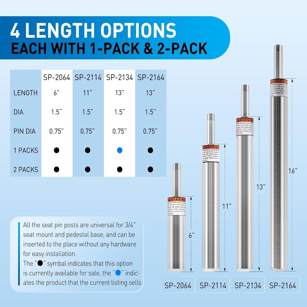 2Pcs SP-2134 3/4" Boat Seat Pin Post For Most Marine Boat Seat Pedestal Base
