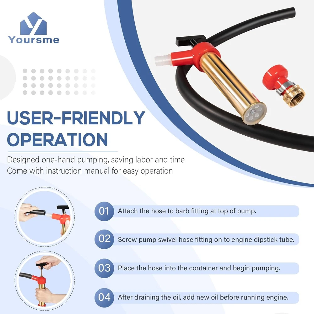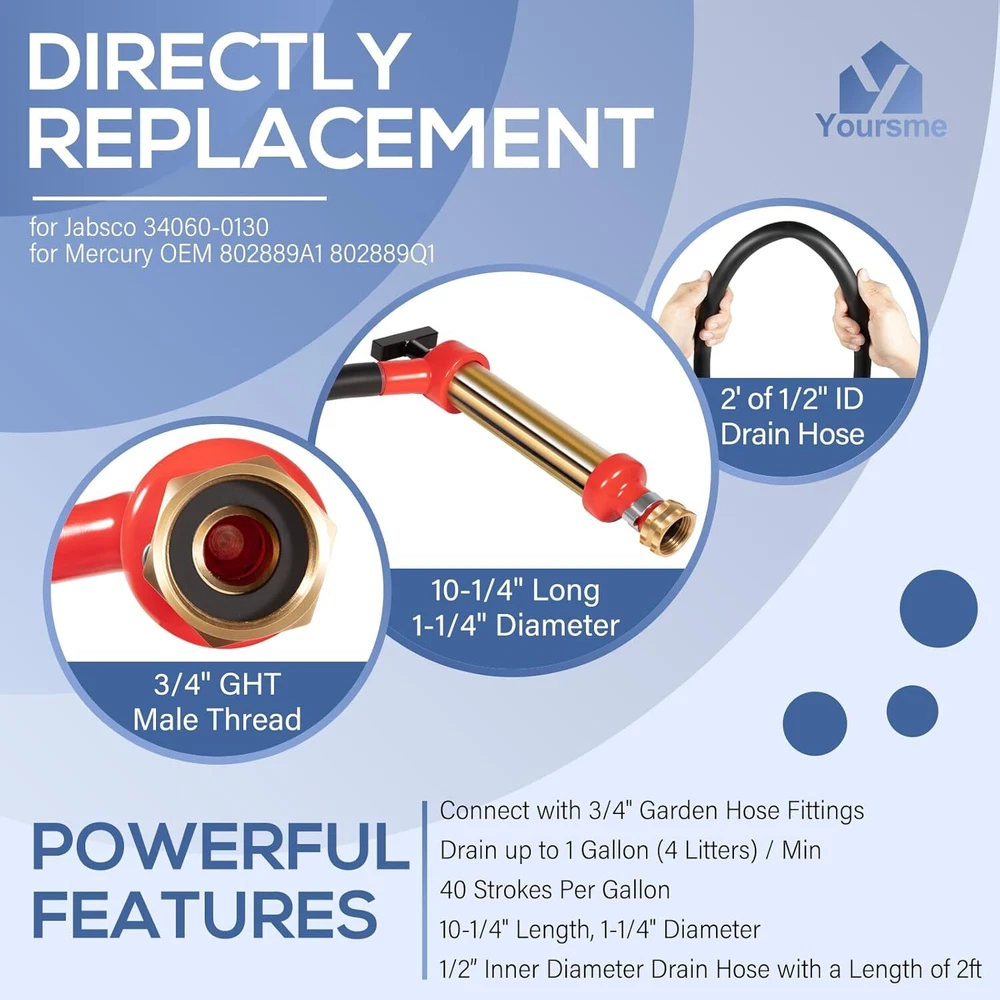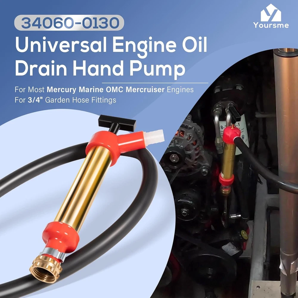34060-0130 Universal Engine Oil Drain Hand Pump for 3/4" Garden Hose Fittings, 10.25” Length, 1.25" Diameter, Fit for Most Mercury Marine OMC Mercruiser Engines, Replace 802889A1 802889Q1 【Universal Fitment】 Universal fit for most Mercury Mariner engines such as for OMC Mercruiser sterndrive and inboard marine engines with threaded dipstick tubes. Perfectly use with threaded male 3/4" garden hose fitting on top of engine dipstick tube to drain the oil out. 【Direct Replacement】 Directly replace for Jabsco 34060-0130, for Mercury OEM 802889A1 802889Q1, manufactured to exceed the OEM specification and quality. 【Powerful Features】 Connect with 3/4" Garden Hose Fittings, draining up to 1 gallon (4 litters) / min, 40 strokes per gallon, 10-1/4" length, 1-1/4" diameter, 1/2” inner diameter drain hose with a length of 2ft. 【Easy Operation】 Designed one-hand pumping, saving labor and time, come with instruction manual for easy operation. 【High Quality】 Made of selected brass cylinder which can stand thousands of pumping, inserted seals on both cylinder and fitting, ensuring no leakage happens. 【Notes】 Oil temperature must not exceed 140°F. Do not push dip-stick tube too far into the engine or it may get caught and cause a problem when removing. For Mercury/Mariner 8/9.9 4‑stroke outboards require additional adapter 828369(does not include). CONTACT US: If you meet any problem after receiving our product, please feel free to contact us. We will try our best to solve your problem. SHIPPING POLICY: Orders will be ship out within 1-2 business days after payment has cleared. Orders from Saturdays, Sundays or holidays will process on next business day and will be ship within 24 hours. Please allow 10-30 days for international deliveries. Some shipments could take longer subject to your local customs authorities. RETURE & WARRANTY: 1 We accept 30 days return guarantee for all Items If you are unsatisfied with something you bought from us, you may send it back within 30 days of receipt, and we shall be happy to exchange or refund. 2 Leave a message note in returned box quoting your item(s) ID and buyer ID. 3 All returned products must be in their original condition and packaging. Unfortunately, if products have been assembled or modified, we cannot take them as returns. 4 It is important that we know when your return is expected. Please save your return tracking number or post receipt, and email it to us. We need this in case there are any issues during transit. 5 Refund will only be issued upon our receipt of the returned parcel. Please allow 2 working days for us to process with your return. ABOUT REPLY: If you have any questions, please feel free to email our service specialists 24 Hours a Day, 7 Days a Week, and we will reply you ASAP. If no response within 24 Hours, please check the spam of mail box or kindly re-send it to us. ABOUT FEEDBACK: Please contact us before leaving Netural or Negative feedback if you are not satisfied our service or products. Good communication is helpful for both of us to resolve any problems and issues. We work hard to make sure EVERY CUSTOMER 100% SATISFIED and resolve any problem for you and always leave positive feedback to all our customers. If you are satisfied with our service, please leave FOUR 5-Detailed Selling Rating (DSR). Thanks!