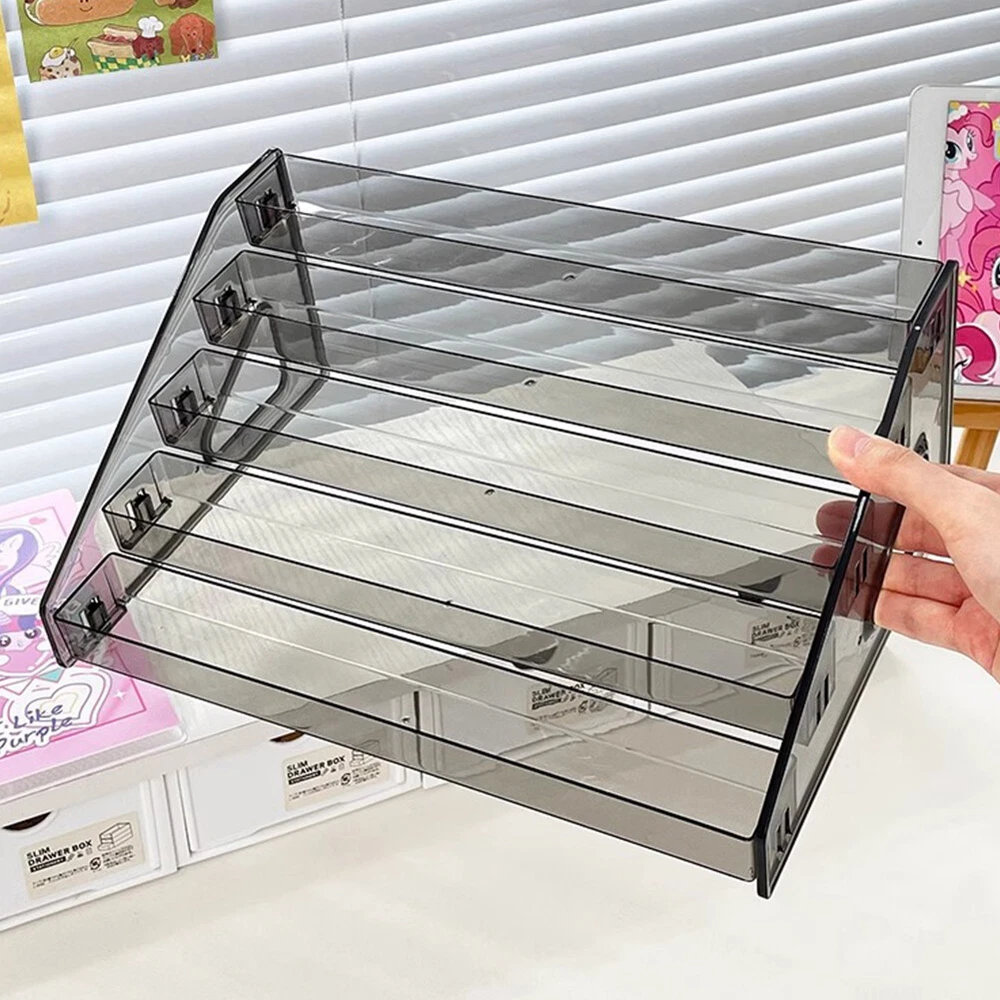Product Description 3/4/5/6/7 Layers Sport Cards Display Shelf Holder Storage Acrylic Display Stand Features: -Stepped Design: It can easily organize your items, whether they are trading cards or cosmetics, allowing you to clearly see the layers in which they are stored. -Premium Material: made of premium and durable acrylic, this durable stylish crystal clear organizer embodies the beautifully understated elements of minimalist design with modern feature, complementing almost any decor; rounded edges without burrs. -Easy Assembly: snap-on design for easy installation; simply align the holes and installation can be completed without additional screws; will not change shape or color after being washed. Specification : Material : Acrylic Color : Gray Tier: 3/4/5/6/7 layers Package included: 1 x Acrylic Shelves