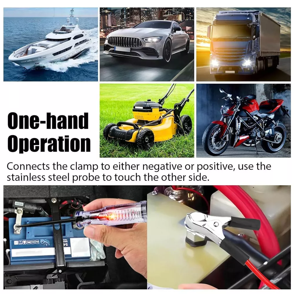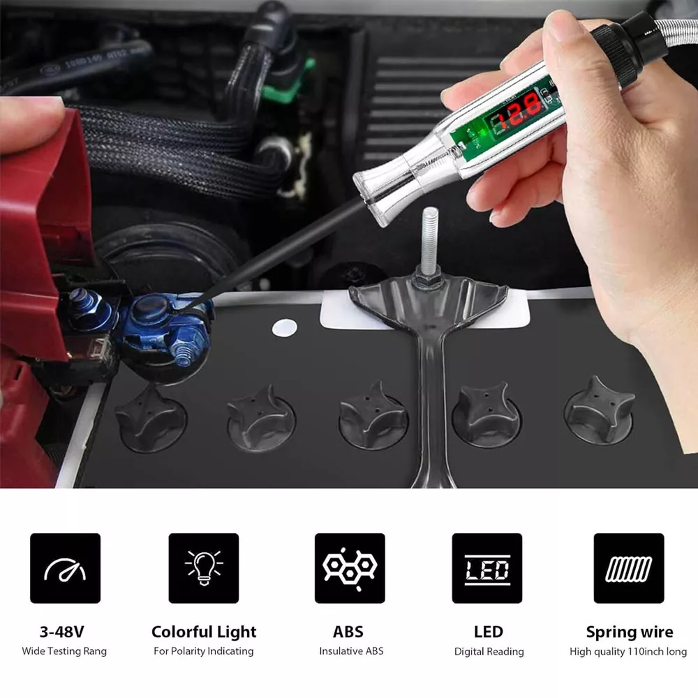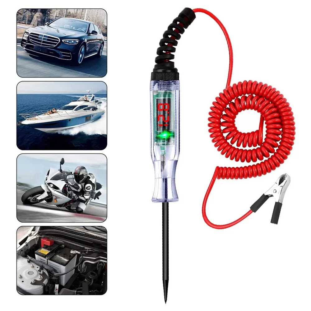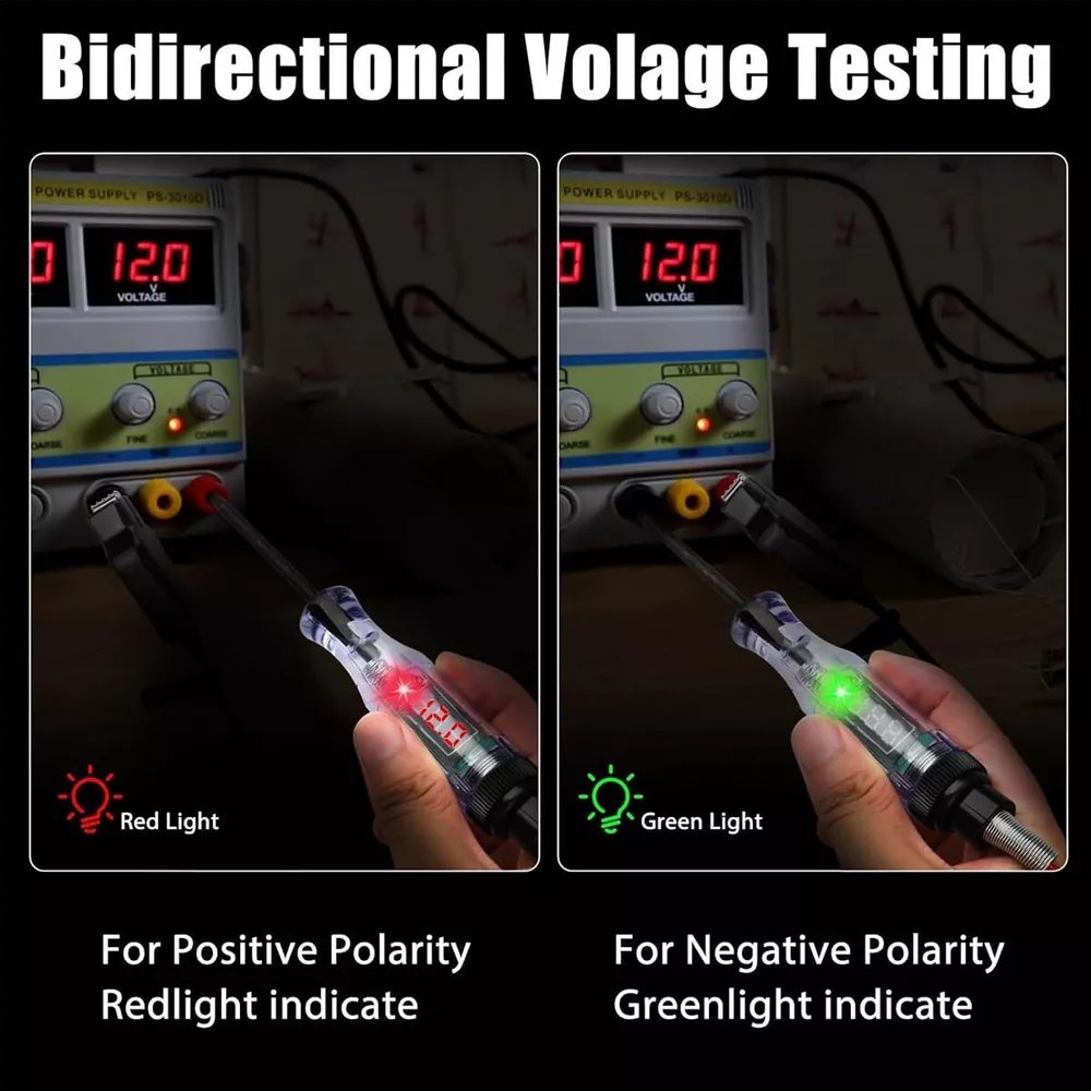 Features: 1.LED Digital Display: Accurate Reading Power Circuit Probe Kit is designed with LED digital voltage display, which can read the voltage accurately. Bidirectional current and voltage test mode, the alligator clip can be connected to the negative pole or the positive pole to ground, the red light means the positive pole, and the green light means the negative pole. Compared to LCDs, LED lights are not affected by the brightness of the light and can be read accurately in day or dark areas. 2. Negative clip protection: Equipped with pure copper clips and insulating protective cover, which can better clamp the body and screws, insulating protection against electric shock. The circuit board has line protection function, which is safer and more resistant to burning. 3. Widely used: This professional automotive heavy duty circuit test light is designed to test 3-48V DC voltage. Can be used to detect power, ground, and find shorts and breaks in wires. Quickly check car headlights, taillights, turn signal circuits, faulty sockets, connections, fuses, broken wires, and more. 4. High quality product: The handle of the DC circuit tester is made of AS plastic, hardened and tempered carbon steel probe is chrome plated. Sharp steel probe easily pierces wire insulation to inspect circuits Specification: Measuring voltage: DC 3-48V Product length: 190mm/7.4 inches Digital display: with LED voltage display Product List: 1 or 2*Voltage test pen On Oct 13, 2024 at 18:24:33 PDT, seller added the following information: