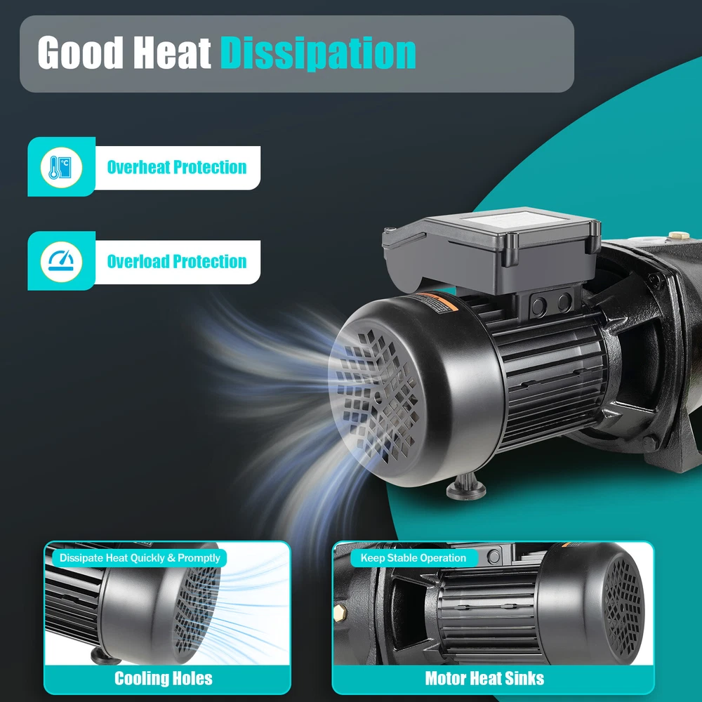 Specifications Color: Black Material: Cast Iron, Iron, Aluminium, Copper, Plastic, Stainless Steel Process: Spray Paint Voltage: 110V Power: 550W Horsepower: 3/4HP Speed: 3420r/min Intake and Outlet Diameter: 25mm/3inch Pump Lift: 56m/183.73ft Pump Output: 5.4m³/h/1426.53ft³/h Rated Self-suction Height: 8m/26.25ft Water Outlet Pressure: 5.6 Mpa Noise: About 30-40dB Product Size: 43*18*21.5cm/16.93*7.09*8.46inch Package Size: 51*32.5*25cm/20.08*12.8*9.84inch Gross Weight: 13kg/28.66lbs Net Weight: 11.85kg/26.12lbs Package Included 1 x Well Jet Pump 1 x Switch 1 x Multi-language Manual Other Accessories for Installation 3/4HP Well Jet Pump Self-Priming Shallow Water Pump with Pressure Switch 550W Description It is made of high-quality materials and treated with fine craftsmanship for greater durability. The high-quality copper wire motor gives it strong power, and the automatic pressure boosting system achieves whole-house pressure boosting so that you will no longer be troubled by unstable water pressure, too small water flow, and other problems. And you can free your hands and irrigate your garden and lawn with ease with this well jet pump. Key Features Last and Durable: It is mainly made of high-quality cast iron, aluminum, and iron, with a surface treated by spray painting technology, which has good anti-corrosion and rust prevention ability, and a long service life. Powerful and Efficient: The pump with a powerful 550W copper wire motor and iron impeller has a high speed of 3420r/min, a 1426.53ft³ hourly flow rate and 183.73ft lift, which can efficiently complete various irrigation tasks in a shorter amount of time. With a water outlet pressure of 5.6 Mpa and a self-suction height of 26.25ft, it is possible to pump water to high-rise buildings. Good Heat Dissipation: The evenly distributed cooling holes and motor heat sinks dissipate heat quickly and promptly to maintain stable engine operation. High Safety: It has over temperature and overload protection device. The machine will automatically cut off the power when it exceeds the rated temperature, which can prevent the motor from overheating and burning, and ensure your safety of use. Convenient to Use: It is equipped with an automatic pressure boosting system, and an automatic pressure adjustment switch to regulate the running and stopping of the pump, and it is available for both hot and cold water. Low Noise: It adopts low-noise operation with a noise level of about 30-40dB, which can provide a comfortable environment for you to use. Protective Package: To prevent the product from being damaged and bumped during transportation, we packed it with air column bag and foam to protect your products to the maximum extent possible. Customer Service: Communication is the best way to solve problems. If you have any problems, please feel free to contact us. We will reply and solve the problem for you as soon as possible. Details Support Foot & Thickened Base: The bottom support feet and thickened base provide strong support for the pump body and improve its stability when in use. Junction Box: It has a good seal that can effectively isolate water and electricity, making it safer for you to use. Application It is suitable for garden irrigation, farmland irrigation, underground water intake, high-rise building pressurization, as well as pressurization of household solar energy, water heaters, showerheads, toilets, faucets, washing machines, etc. Specifications Color: Black Material: Cast Iron, Iron, Aluminium, Copper, Plastic, Stainless Steel Process: Spray Paint Voltage: 110V Power: 550W Horsepower: 3/4HP Speed: 3420r/min Intake and Outlet Diameter: 25mm/3inch Pump Lift: 56m/183.73ft Pump Output: 5.4m³/h/1426.53ft³/h Rated Self-suction Height: 8m/26.25ft Water Outlet Pressure: 5.6 Mpa Noise: About 30-40dB Product Size: 43*18*21.5cm/16.93*7.09*8.46inch Package Size: 51*32.5*25cm/20.08*12.8*9.84inch Gross Weight: 13kg/28.66lbs Net Weight: 11.85kg/26.12lbs Package Included 1 x Well Jet Pump 1 x Switch 1 x Multi-language Manual Other Accessories for Installation Notes Please allow the slight color difference caused by the shooting light and 1-3 cm error due to manual measurement, and make sure you do not mind before ordering. Payment Delivery details Terms of sales About us Contact us Payment We accept ebay payment 。 Fees such as import duties, taxes are not included in the item price or shipping costs. These charges are the buyer's responsibility. Delivery details Shipping: 2-9 working days to: USA Terms of sales We maintain high standards of excellence and strive for hundred percent customer satisfaction. Feedback is very important to us. We hope that you contact us immediately before you give neutral or negative feedback, so that we can address your concerns. It is impossible to address issues if we do not know about them! About us Your satis faction is our ultimate goal. We work hard to earn your trust and future business. Our certified technicians have tested each item before shipping. The unit comes with 1 year limited warranty on all manufacturing defects. a) If you receive a defective item, you may return it or ask for a discount. Please contact us within 14 days after you receive the package. b) What you returned must be intact and in its original packaging as re? u. Customer is responsible for shipping costs of the returned item. c) We will cover the cost of shipping back t with the shipping rate indicated in the registration page. We will send you a new unit or refund the full payment you paid. Thank you. Contact us Business Hour Business Hour: Monday To Friday: 8:30 AM to 5:00 PM (Beijing China time) Due to time zones, our reply to your questions may not be immediately. But within above working time, we will reply your email within 24 hours. If it's non-workdays, please kindly be patient and wait till Monday. Please contact us with ebay message. Please feel free to contact us if you have any questions. Monday To Friday: 8:30 