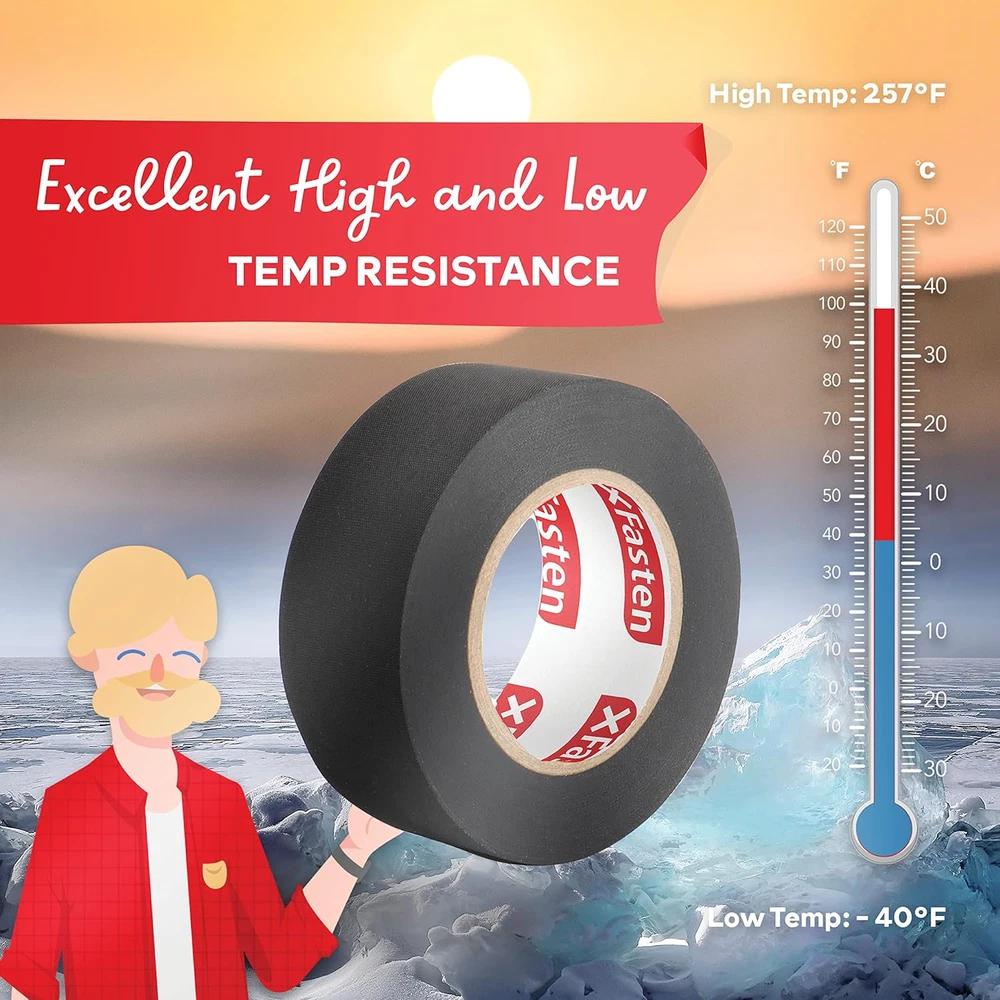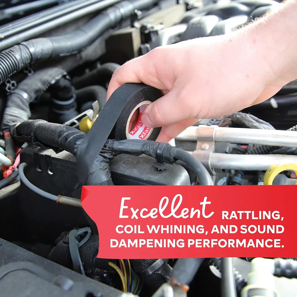 High temp Wire Harness Automotive Cloth Tape with excellent sound and rattle dampening performance. Lessens coil whining and lasts well against elevated temperatures (-40℉ - 257℉). Sports a race-spec heavy-duty bundling performance but cleanly tears with just bare hands, EMPOWERING average car owners with LITTLE TO NO EXPERIENCE in automotive maintenance to achieve PROFESSIONAL-GRADE results in function and form. This Wire Loom Tape features an extremely strong adhesive but does not turn into a messy goo. Rated to last up to 6 years and can easily get you through 150k miles of mileage. Its bi-directional weave makes it puncture-resistant and abrasion and corrosion-resistant. This automotive felt tape preserves cables in their pristine condition. This engine tape wrap is similar, if not better, in thickness, tensile strength and looks with OEM wire harness tapes. Extra-sticky adhesive enables users to bundle hard-to-reach cables quickly. Product Description About The XFasten Wire Harness Tape Key Features High Tensile Strength Precisely engineered to have a similar thickness, tensile strength, and look and feel to OEM brands. Prevents Coil Whining Prevents coil rattling - making it an essential high temp fiber electrical tape for a silent automotive wire loom. Excellent Thermals Fire-retardant and can be used as a high temp heat shield. The XFasten Wire Harness Tape can withstand temperatures up to 257℉. Reliable Lasts for years without residue-leak - thanks to it being high heat-resistant, corrosion-resistant, and puncture-resistant. 1 Step 1 2 Step 2 3 Step 3 Heavy-Duty Bundling Performance XFasten Wire Harness Tape Reliable and extremely Strong. These are the words to describe the XFasten Wire Harness Tape. Unlike other wire harness tapes that ooze out a messy goo after exposure to heat, this engine wire loom tape can last for years without residue and leaks. It's resistant to high heat, corrosion, and puncture. The XFasten Wire Harness Tape is also precisely engineered to have a similar thickness, strength, and feel to OEM brands to keep your wires and cables always in pristine condition. The video showcases the product in use. The video guides you through product setup. The video compares multiple products. The video shows the product being unpacked. video Merchant Video The XFasten Wire Harness Tape Collection Add to Cart Add to Cart Add to Cart Add to Cart Add to Cart Add to Cart Add to Cart Customer Reviews 4.7 out of 5 stars 2,253 4.7 out of 5 stars 2,253 4.7 out of 5 stars 2,998 4.7 out of 5 stars 2,253 4.7 out of 5 stars 2,253 4.7 out of 5 stars 2,253 4.7 out of 5 stars 2,253 Price $5.39 $ 5 . 39 $9.89 $ 9 . 89 $13.98 $ 13 . 98 $12.59 $ 12 . 59 $17.99 $ 17 . 99 $9.99 $ 9 . 99 $13.49 $ 13 . 49 Width 3/4" 3/4" 3/4" 3/4" 3/4" 1.3" .35", .60", .75", .99", 1.26" Length 50 Feet 50 Feet 50 Feet 90 Feet 90 Feet 50 Feet 50 Feet Quantity Single Roll 3 Rolls 5 Rolls 3 Rolls 5 Rolls Single Roll 5 Rolls Adhesive Color Black Black Black Black Black Black Black Double Sided ✘ ✘ ✘ ✘ ✘ ✘ ✘ Residue-Free ✔ ✔ ✔ ✔ ✔ ✔ ✔