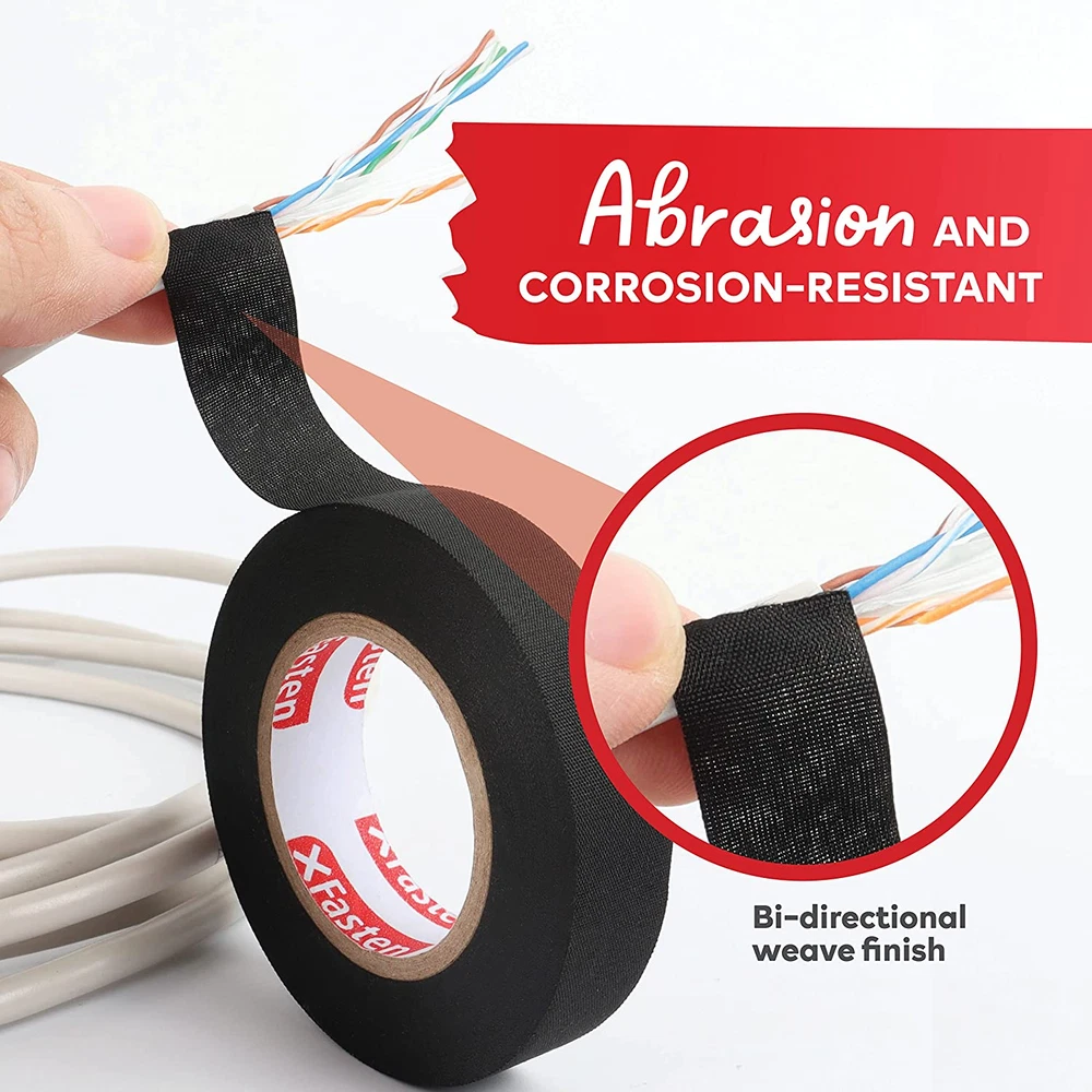 High temp Wire Harness Automotive Cloth Tape with excellent sound and rattle dampening performance. Lessens coil whining and lasts well against elevated temperatures (-40℉ - 257℉). Sports a race-spec heavy-duty bundling performance but cleanly tears with just bare hands, EMPOWERING average car owners with LITTLE TO NO EXPERIENCE in automotive maintenance to achieve PROFESSIONAL-GRADE results in function and form. This Wire Loom Tape features an extremely strong adhesive but does not turn into a messy goo. Rated to last up to 6 years and can easily get you through 150k miles of mileage. Its bi-directional weave makes it puncture-resistant and abrasion and corrosion-resistant. This automotive felt tape preserves cables in their pristine condition. This engine tape wrap is similar, if not better, in thickness, tensile strength and looks with OEM wire harness tapes. Extra-sticky adhesive enables users to bundle hard-to-reach cables quickly. Product Description About The XFasten Wire Harness Tape Key Features High Tensile Strength Precisely engineered to have a similar thickness, tensile strength, and look and feel to OEM brands. Prevents Coil Whining Prevents coil rattling - making it an essential high temp fiber electrical tape for a silent automotive wire loom. Excellent Thermals Fire-retardant and can be used as a high temp heat shield. The XFasten Wire Harness Tape can withstand temperatures up to 257℉. Reliable Lasts for years without residue-leak - thanks to it being high heat-resistant, corrosion-resistant, and puncture-resistant. 1 Step 1 2 Step 2 3 Step 3 Heavy-Duty Bundling Performance XFasten Wire Harness Tape Reliable and extremely Strong. These are the words to describe the XFasten Wire Harness Tape. Unlike other wire harness tapes that ooze out a messy goo after exposure to heat, this engine wire loom tape can last for years without residue and leaks. It's resistant to high heat, corrosion, and puncture. The XFasten Wire Harness Tape is also precisely engineered to have a similar thickness, strength, and feel to OEM brands to keep your wires and cables always in pristine condition. The video showcases the product in use. The video guides you through product setup. The video compares multiple products. The video shows the product being unpacked. video Merchant Video The XFasten Wire Harness Tape Collection Add to Cart Add to Cart Add to Cart Add to Cart Add to Cart Add to Cart Add to Cart Customer Reviews 4.7 out of 5 stars 2,131 4.7 out of 5 stars 2,131 4.7 out of 5 stars 2,852 4.7 out of 5 stars 2,131 4.7 out of 5 stars 2,131 4.7 out of 5 stars 2,131 4.7 out of 5 stars 2,131 Price $5.99 $ 5 . 99 $9.99 $ 9 . 99 $13.99 $ 13 . 99 $13.99 $ 13 . 99 $19.99 $ 19 . 99 $9.99 $ 9 . 99 $14.99 $ 14 . 99 Width 3/4" 3/4" 3/4" 3/4" 3/4" 1.3" .35", .60", .75", .99", 1.26" Length 50 Feet 50 Feet 50 Feet 90 Feet 90 Feet 50 Feet 50 Feet Quantity Single Roll 3 Rolls 5 Rolls 3 Rolls 5 Rolls Single Roll 5 Rolls Adhesive Color Black Black Black Black Black Black Black Double Sided ✘ ✘ ✘ ✘ ✘ ✘ ✘ Residue-Free ✔ ✔ ✔ ✔ ✔ ✔ ✔