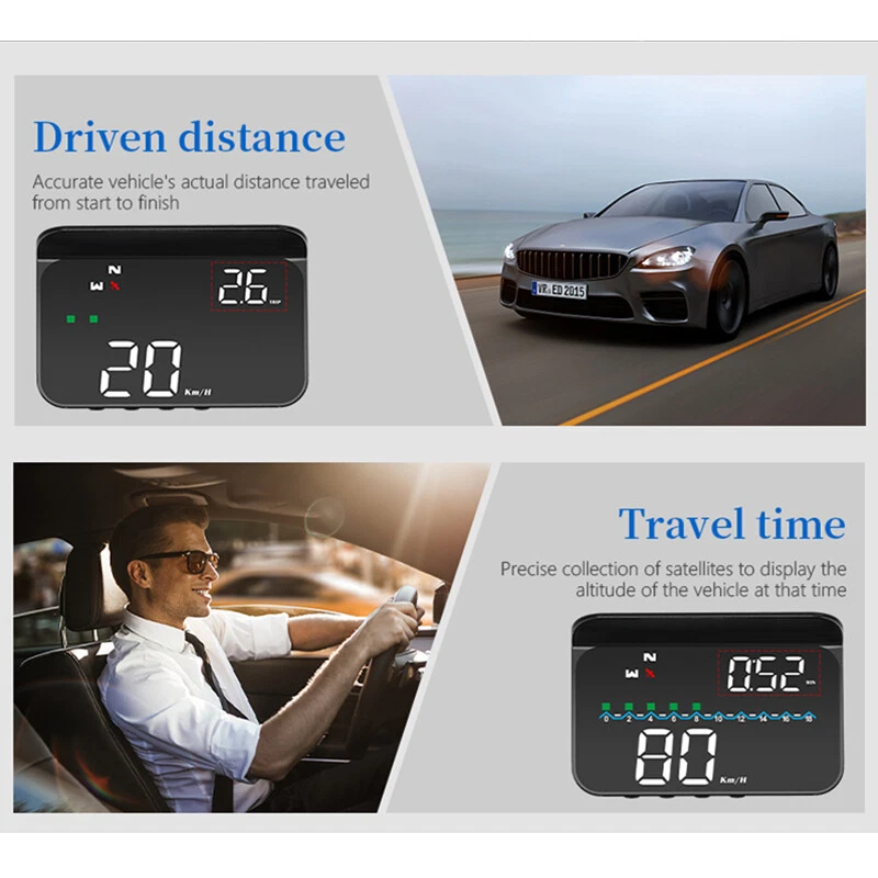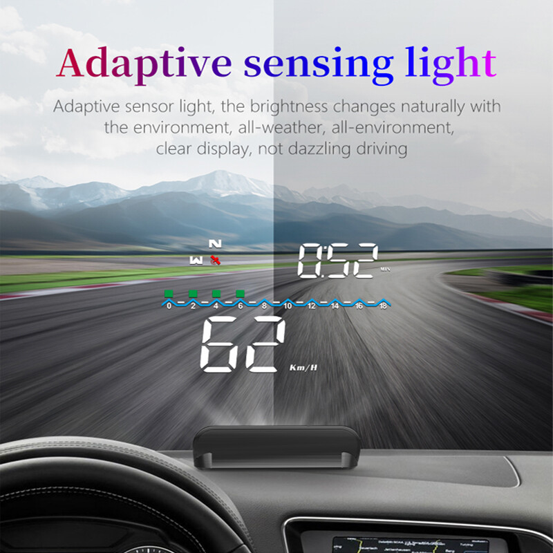 Description HUD Specifications: working voltage DC5V Working current 40mA sleeping current 15mA Speed range 0-400KM Real time precision The same as satellite Satellite positioning time Cold start: 30s, hot start: 1s HUD size 90*55*30mm 12V car charger 1000mA HUD weight 160g HUD Main Functions&Features: Available for any car, easy to install, plug and play Screen 3.5 inch HD display Multi-color design makes the screen more abundant and easier to read Nano-technology to eliminate double reflections,more clear. Rich Contents: speed,compass, speed alarm,free switch between km and miles Auto power on/off: HUD start and off with vehicle started and shutdown, effective protection of the car battery;retaining the manual switch mode,more easy to control HUD. Automatic and manual brightness adjustment mode,driving without glare. Methods of pasting the film: Spray some water on the place that the film will be pasted on,and then use a dry cloth to clean it; Take off the back side(marked 1) of reflection film,then paste it to the window glass. After you have adjusted the location, you can use a scratch board or something else flat to slick the film and squeeze the water inside out until there is no bubble or water in it. Take off the protection film (marked 2) of the reflection film. If the film cannot display the whole information, please adjust the non-slip mat to move the position. Solution for Common Problems Feature: HUD screen without any display,and no power Check the car charger cable if it is tight, pull down repeatedly inserted multiple times, check the HUD switch if it powers on. If there still no display please try another car to test and analyze whether the car cigarette lighter interface is bad, if it is a bad cigarette lighter, please try to connect the cable line to the car battery. No speed ,auto powers off after 5 minutes. The default auto powers off time is 5 minutes, if there is no speed, HUD will power off after 5 minutes,it built-in vibration switch, as long as there is a slight vibration it will powers on. Inaccurate Speed When HUD is power on,vertical press the wave button 5 seconds to enter into the menu options, here menu options shows 0,parameter shows 107,up or down the wave button to increase or decrease the value according to the difference until it shows correct one.After adjustment, vertical press in 5 seconds to save it. HUD see not clearly under the sunlight. Check whether the HUD host protective film is torn,and please stick the reflection film on the windscreen. wrong operation lead to crashes. Or inaccurate datas Do a reset setting. Package Included: 1 x HUD host 1 x charger 1 x non-slip pad 1 x reflective film 1 x manual