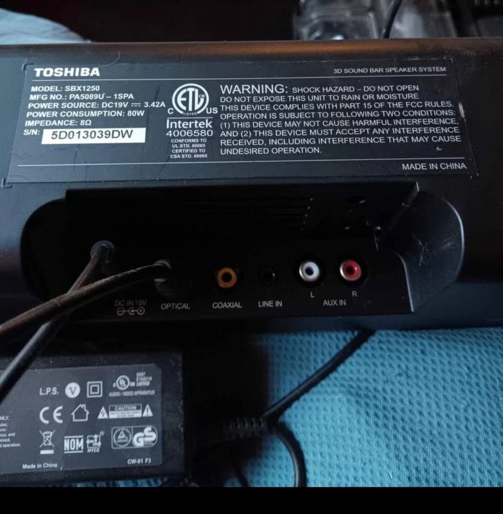 Brand: Toshiba Model: sbx1250 Shape: Rectangular Type: Soundbar Connectivity: Wired Color: Black