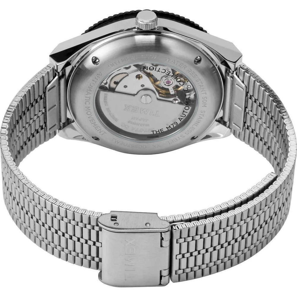 $350 MSRP | Timex Men’s Retro Automatic Stainless Steel Watch - TW2U29500ZV M79 The Timex Men's Retro Automatic Stainless Steel Watch - TW2U29500ZV M79 is a harmonious blend of vintage aesthetics and modern functionality, making it a standout piece for watch enthusiasts. This timepiece pays homage to classic watch design while incorporating contemporary features, ensuring both style and reliability. The Timex M79 Automatic embodies a retro charm with its polished stainless steel case and black dial. The full markers on the dial provide clear and easy readability, while the acrylic crystal adds to the watch's vintage appeal. The stainless steel bracelet enhances the watch's overall durability and style, making it a versatile accessory for both casual and formal occasions. The watch's 40mm case diameter strikes a balance between modern and classic sizes, making it suitable for a variety of wrist sizes. The polished finish of the case adds a sophisticated touch, while the exhibition window at the back allows you to admire the automatic movement in action. Overall, the Timex M79 Automatic is a timeless piece that combines the best of both worlds—vintage design and modern functionality. It's an excellent choice for those who appreciate the artistry of automatic movements and the elegance of classic watch design. Features Brand: Timex Model: M79 Automatic Reference: TW2U29500ZV Movement: Automatic (self-winding) Case Material: Stainless Steel Case Diameter: 40mm Case Thickness: 14.5mm Case Shape: Round Case Finish: Polished Back: Exhibition Window Crystal: Acrylic Dial Color: Black Band Material: Stainless Steel Bracelet Band Color: Stainless Steel Strap and Lug Width: 18mm Water Resistance: 50 meters Fast and Free Shipping You're already purchasing the item. Why pay additional for shipping, especially slow shipping? We get your order shipped out within 1-business day and delivered to your doorstep as quickly as possible. Competitive Pricing With our dynamic pricing model, our prices are always competitive. Our prices are some of the lowest that you will find on the internet. Rest assured that you're getting a good deal when purchasing with us. 30-day Money Back Guarantee We are committed to making sure that you leave this transaction satisfied. If you're unhappy with the product for any reason, you may return it back for your money-back or a replacement within 30 days. No questions asked!