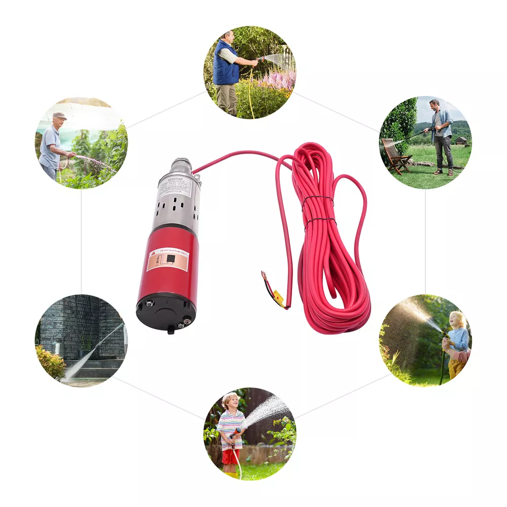 12V Solar Submersible Pump Deep Well Water DC Pump Stainless Steel 1500L/H US Description If you're looking for an efficient and simple irrigation solution, take a look at our submersible pump, a jewel in the world of irrigation technology for its performance and ease of operation. The efficient performance and low-noise operation of this submersible pump will provide your farmland with a constant flow of living water, making every inch of soil come alive, which is undoubtedly the ideal choice for scientific irrigation and improved agricultural efficiency. Key Features Build to Last : Made of 304 stainless steel, this product is corrosion-resistant, wear-resistant, and durable, ensuring your long-term use. High Efficiency: The 250W all-copper motor provides powerful power, with a speed of 3500r/min and a maximum flow rate of 396.26gal/h, making your pumping and watering work faster and easier. Large Delivery Lift: Adopting stainless steel large centrifugal impeller, its maximum lift can reach up to 98.43ft, which allows you to irrigate farmland, fish ponds, and orchards for a long distance, saving the time and cost of manual transportation. Effortless Cleaning: Thanks to its smooth surface and simple structure, and it is used to work in water, so it is very easy to clean. High Stability: Three feet provide stable support for this product, making it less prone to shaking. Simple Installation: The simple structure makes it easy to assemble and quickly start and run. Easy to Carry: Its lightweight allows you to easily move it to the place you need it to use, which is convenient. Customer Service: We aim to provide quality products and services. If you have any problems, please feel free to contact us. We will reply and solve the problem for you as soon as possible. Details Rope Hole: You can use nylon rope or steel wire(not included) to pass through the rope hole and pull this product, making it easy to use. Standard Water Outlet: The pump adopts a 0.98inch large diameter water outlet, which can be matched with different types of water pipes and is very practical. Fine Water Inlet: It helps to provide all-round water intake. High-quality Screw: It makes this product less prone to thermal expansion and contraction, reduces noise, and improves work efficiency. Application This product is suitable for extracting groundwater from deep wells, and can also be used in water-lifting projects of rivers, reservoirs, canals, and so on. It can be used for farmland irrigation, and water for humans in mountainous areas, villages, homes, farms, campervans, cities, factories, and railways. Specifications Material: 304 Stainless Steel, All-copper Color: Silver and Red Assembly Required: Yes Voltage: DC12V Current: 8.0A Power: 250W Speed: 3500r/min Maximum Delivery Lift: 30m/98.43ft Cable Length: 7m/22.97ft Maximum Flow Rate: 1.5m³/396.26gal/h Outlet Diameter: 25mm/0.98in Gross Weight: 3.3kg/7.28lbs Product Height: 38cm/14.96in Package Size: 40*9*13cm/15.75*3.54*5.12in Package Included 1* Submersible Pump Notes Please check that the voltage corresponds to local standards before ordering. Please do not use it without water. It requires vertical installation, and it is designed to be used in clear pure water only, even an small amount of sand diluted in the water will damage it, please make sure your water is clear before you install it. This pump model features a built in check valve, however this check valve is only used to prevent water from going back in the pump and causing backspin of the impellers, but if you are going to use the pump in a pressure system, you need to use at least one external check valve in the pipe, the valve in the pump won't fulfill that function. Please note that when this product is in operation, the pump body should be completely immersed in water to avoid burning the machine. Please pay attention to the precautions on the label of this product. Please allow the slight color difference caused by the shooting light and 1-3cm error due to manual measurement, and make sure you do not mind before ordering. Payment Delivery details Terms of sales About us Contact us Payment We accept ebay payment 。 Fees such as import duties, taxes are not included in the item price or shipping costs. These charges are the buyer's responsibility. Delivery details Shipping: 2-9 working days to: USA Terms of sales We maintain high standards of excellence and strive for hundred percent customer satisfaction. Feedback is very important to us. We hope that you contact us immediately before you give neutral or negative feedback, so that we can address your concerns. It is impossible to address issues if we do not know about them! About us Your satis faction is our ultimate goal. We work hard to earn your trust and future business. Our certified technicians have tested each item before shipping. The unit comes with 1 year limited warranty on all manufacturing defects. a) If you receive a defective item, you may return it or ask for a discount. Please contact us within 14 days after you receive the package. b) What you returned must be intact and in its original packaging as re? u. Customer is responsible for shipping costs of the returned item. c) We will cover the cost of shipping back t with the shipping rate indicated in the registration page. We will send you a new unit or refund the full payment you paid. Thank you. Contact us Business Hour Business Hour: Monday To Friday: 8:30 AM to 5:00 PM (Beijing China time) Due to time zones, our reply to your questions may not be immediately. But within above working time, we will reply your email within 24 hours. If it's non-workdays, please kindly be patient and wait till Monday. Please contact us with ebay message. Please feel free to contact us if you have any questions. Monday To Friday: 8:30 AM to 5:00 PM (Beijing China time) Due to time zones, our reply to your questions may not be immediately. But within above working time, we will reply your email with