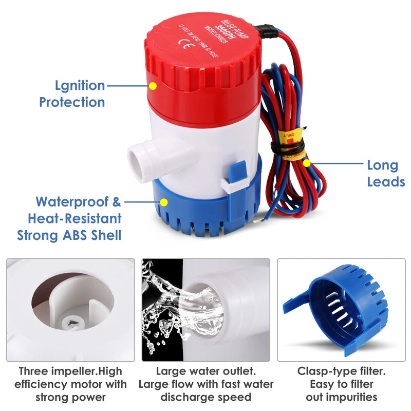 350GPH 12V Mini Marine Bilge Water Pump Submersible Electric Rustproof For Yacht 350GPH 12V Mini Marine Bilge Water Pump Submersible Electric Rustproof For Yacht 100% Brand New & Excellent quality Free & fast shipping, with tracking number provided Feature: * Large flow,can drain quickly * Low current mode,not only compact and practical * Large water outlet * The shell is made of ABS material, which is sturdy and durable * Apply to yacht, medical, swimming pool, scientific research Specification: Color: blue white red Voltage: 12V DC Type: Drain Pump Flow: 350 gallons per hour Model: CH8028 Dimensions: 4.21H x 2.17Winch Packing include: 1 x Bilge pump 1 x User manual Payment Shipment Return Feedback Contact us Payment * We Accept Payment via PAYPAL ONLY . * Payment Must be Made within 4 Days of Auction Closing. * Non-Payment may Result in a UPI (Unpaid Item) being Put on Your Account. eBay will Automatically Close Your Account if You Accumulate 4 UPI's total. * Please List Your Special Requests ( Color, Size, Packages, etc. ) in the PAYPAL NOTES SECTION when you make payment. Shipment * Shipping will be handled in 24 business hours after payment got. Ship to PayPal Address only , please confirm it before paying. * Please leave your phone number in the address in case there is an address problem. Return * Returns and Exchange accepted within 60 Days. * Refund will be given as Money Back. * Free Return shipping. * Before you return the defective item,please email us for the RMA, and we will reply you in 24 hours in working days. If you do not get reply please check if your mail box has refused our reply or not, then send to us again, thanks! Feedback If you are satisfied with the transaction please remember to leave us a positive feedback (5-Star) will be much appreciated. Please DO remember to contact us before leaving the neutral (3 stars) , negative feedback (1-2 stars) or opening a case/dispute if any problem caused by the item . Normally your email would get replied within 24 hours on working day and your issue would be followed up carefully until we've reached a consensus! We will try our best to solve the problem and leave you a happy shopping mood here. Thank you! We are not only selling good items, but also selling with excellent after-sale service and a strong sense of responsibility. We will always try our best to find you a satisfactory solution if any problem takes place! Contact us Email muchbuy-outlet at Paypal registered email or ebay message.