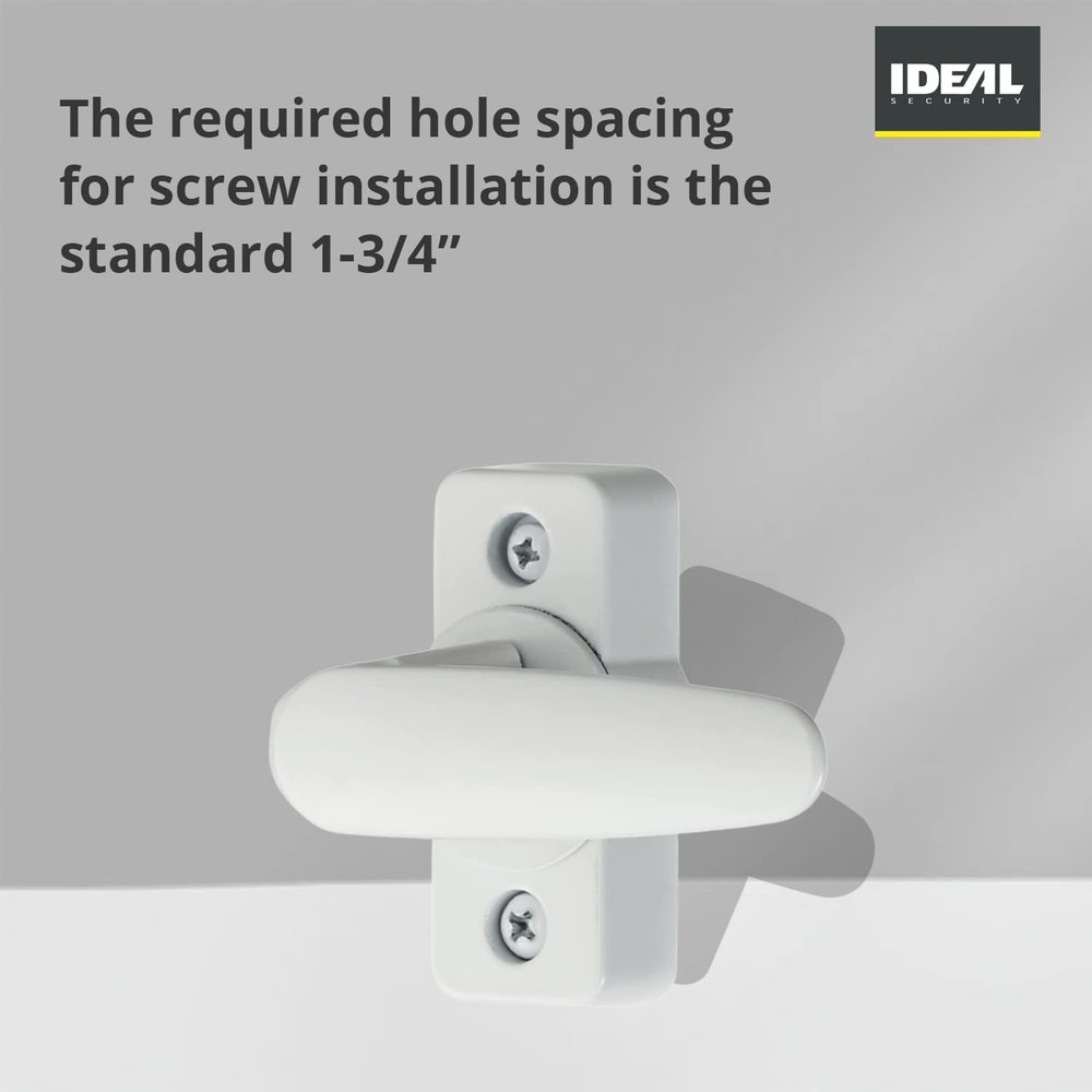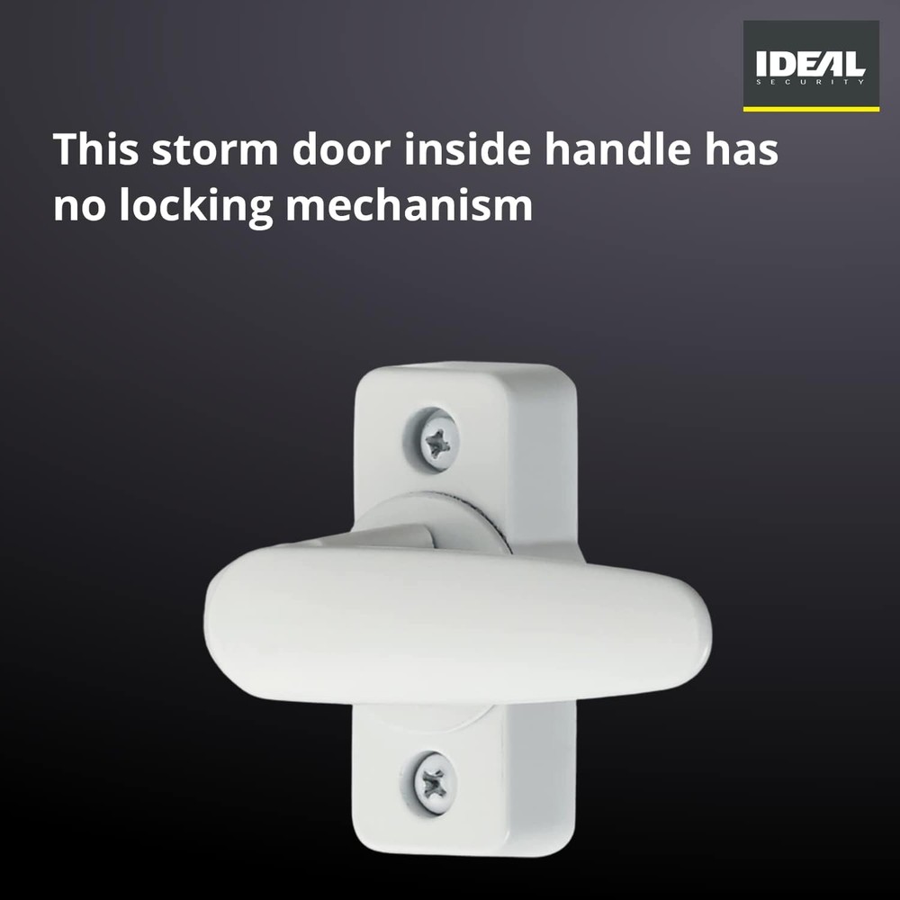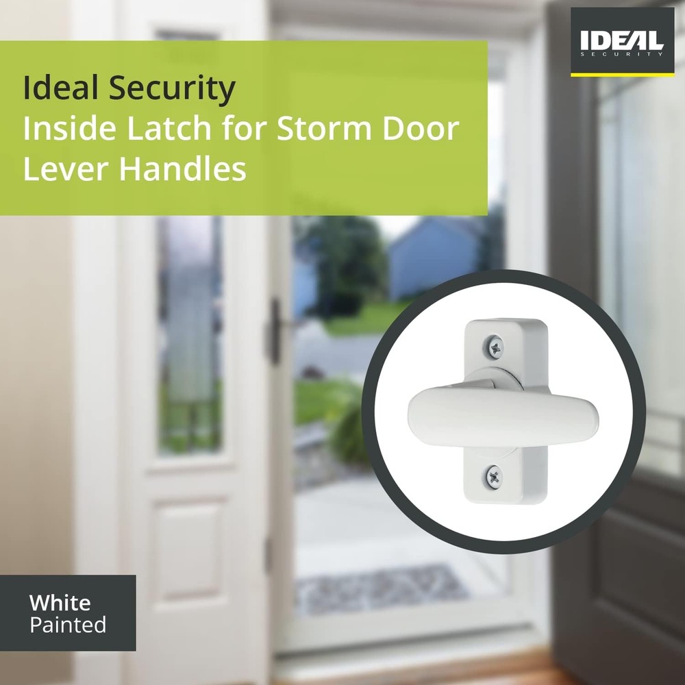 358 Inside Latch White Product Details Brand: Ideal Security Special Feature: Auto-Lock Lock Type: Deadbolt Item dimensions L x W x H: 5 x 7.01 x 4.02 inches Material: Zinc Recommended Uses For Product: Securing storm doors in residential or commercial settings Style: Modern Color: White Number of Pieces: 3 Finish Type: Painted or Powder Coated Included Components: Latch, spindle, zinc cap Controller Type: Hand Control Shape: Round Item Weight: 0.41 Pounds Model Name: 358 Inside Latch Manufacturer: Ideal Security Inc. Part Number: SK358 Item Weight: 6.6 ounces Product Dimensions: 5 x 7.01 x 4.02 inches Country of Origin: China Item model number: SK358 Finish: Painted or Powder Coated Item Package Quantity: 1 Special Features: Auto-Lock Batteries Required?: No Brand: Ideal Security Special Feature: Auto-Lock Lock Type: Deadbolt Item dimensions L x W x H: 5 x 7.01 x 4.02 inches Material: Zinc Storm Door Inside Latch: This stylish inside latch replaces any standard storm door latch; for lever-style storm and screen door handles Door Compatibility: This storm door inside handle replaces standard inside latches for storm doors; it has no locking mechanism Easy to Install: The required hole spacing for screw installation is the standard 1-3/4”; includes 1/4" spindle Set Includes: The storm door inside latch replacement includes a 1/4" spindle with a 3/8" zinc cap which is compatible with most exterior lever handles Product Description Ideal Security's inside latch replaces standard lever-style storm and screen door handles. It comes with a 1/4" spindle with a 3/8" zinc cap, compatible with most exterior lever handles. The inside latch has no locking mechanism, and the required hole spacing for screw installation is the standard 1-3/4". Ideal Security has been supplying quality hardware to door manufacturers for 65 years. Please explore our other door and window hardware products for your home. From the Manufacturer Inside latch replacement for lever handles, white.