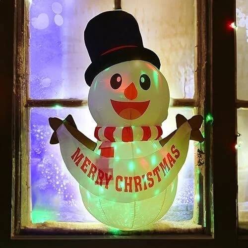 30 Days Return Policy Fast Delivery Trusted seller 3.5Ft Christmas Outdoor Decoration, Christmas Inflatables Blow Up Snowman Broke Out from Window with Built-in LED Lights, for Indoor Outside Holiday Garden Lawn Home Xmas Decor Product Description 3.5 FT CUTE INFLATABLE SNOWMAN BROKE OUT FROM WINDOW: Distinctive Christmas Snowman design featuring a cute hat and a red scarf, holding a flag :” MERRY CHRISTMAS ”. Included Christmas inflatable, screw sucker, fastened tether, a plug and built-in fan. BUILT-IN LED LIGHTS: The Christmas inflatable adornments feature built-in, ultra-bright LED lights, providing a stunning night-time display that draws the attention of neighbors and visitors.Use it on your front yard, it lights up pretty brightly at night for your Christmas party. EXCELLENT QUALITY: The Christmas inflatable Santa Snowman is composed of top-grade, waterproof polyester, with superior stitching adding to its longevity. The 3.5 FT Christmas Santa Snowman inflatable is a suitable and convenient size for your yard. EASY TO SET UP:The Christmas inflatable Santa Snowman will self inflates within minutes after plugging in. The bottom zipper helps deflate, and convenient to fold for storage. EXCELLENT CHRISTMAS ORNAMENTS: Good for decorating windows, haunted houses, Christmas parties, and outdoor yards. These decorations further enhance the eerie and chilling aura of your home. Shipping Returns Payment Shipping Shipping is FREE to all addresses other than APO/PO boxes in the lower 48 states. All our stock ships from US-based warehouses. Shipped via USPS or UPS (depending on location and package weight) Unless stated otherwise, all orders will ship within 24-72 hours of your payment being processed. Check our feedback to see the great reviews of FAST shipping we offer. Returns As our valued customer, we will do our best to make sure the product you receive arrives to you on time and as expected. If you are not satisfied with your purchase, please contact us within 30 days of receiving your order to process a return. Payment We currently accept payment via eBay managed payments only. Once payment is cleared, we will dispatch your shipment within 1-3 business days. Please refer to the "Shipping" tab for more information regarding shipping speed to your destination.